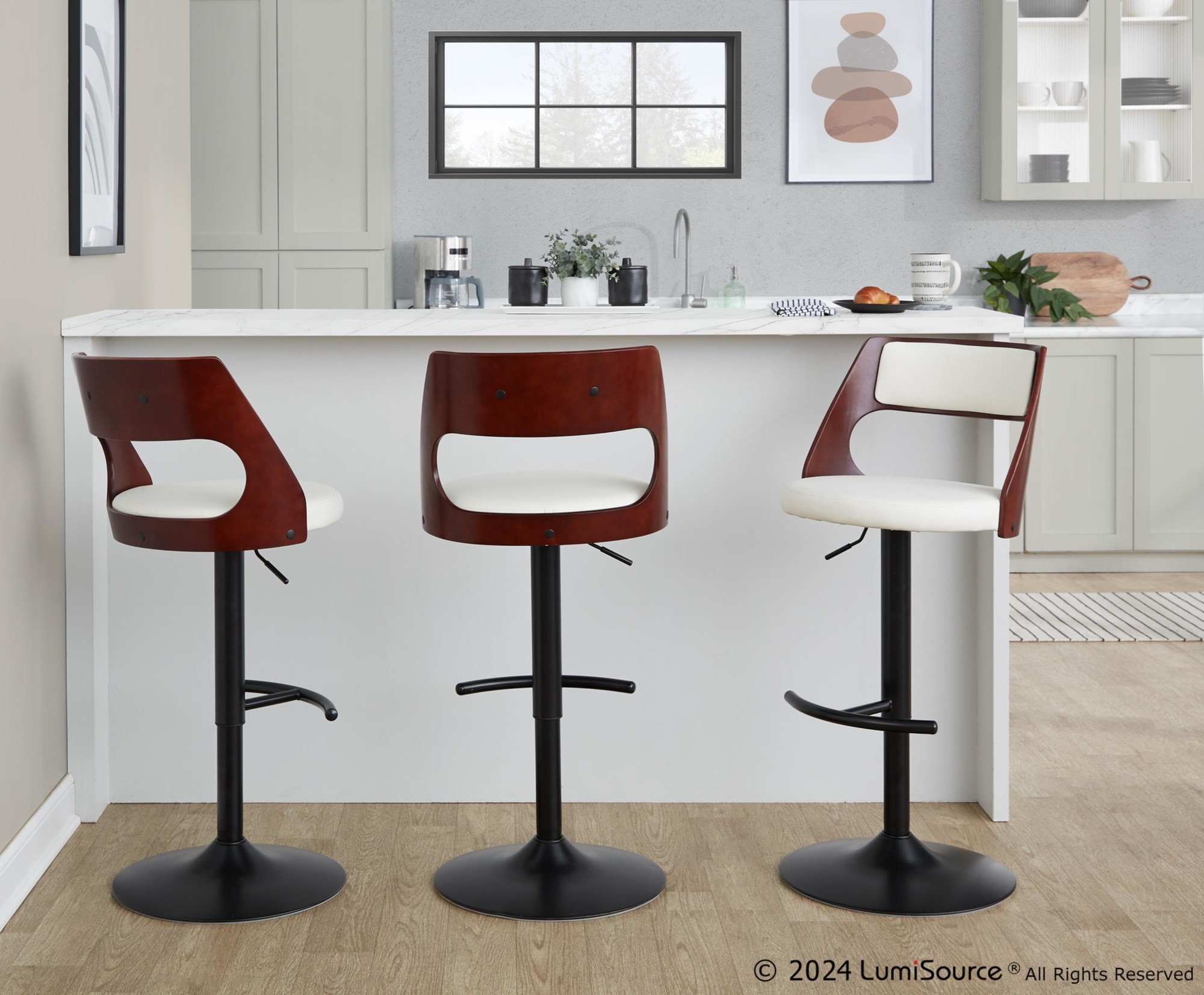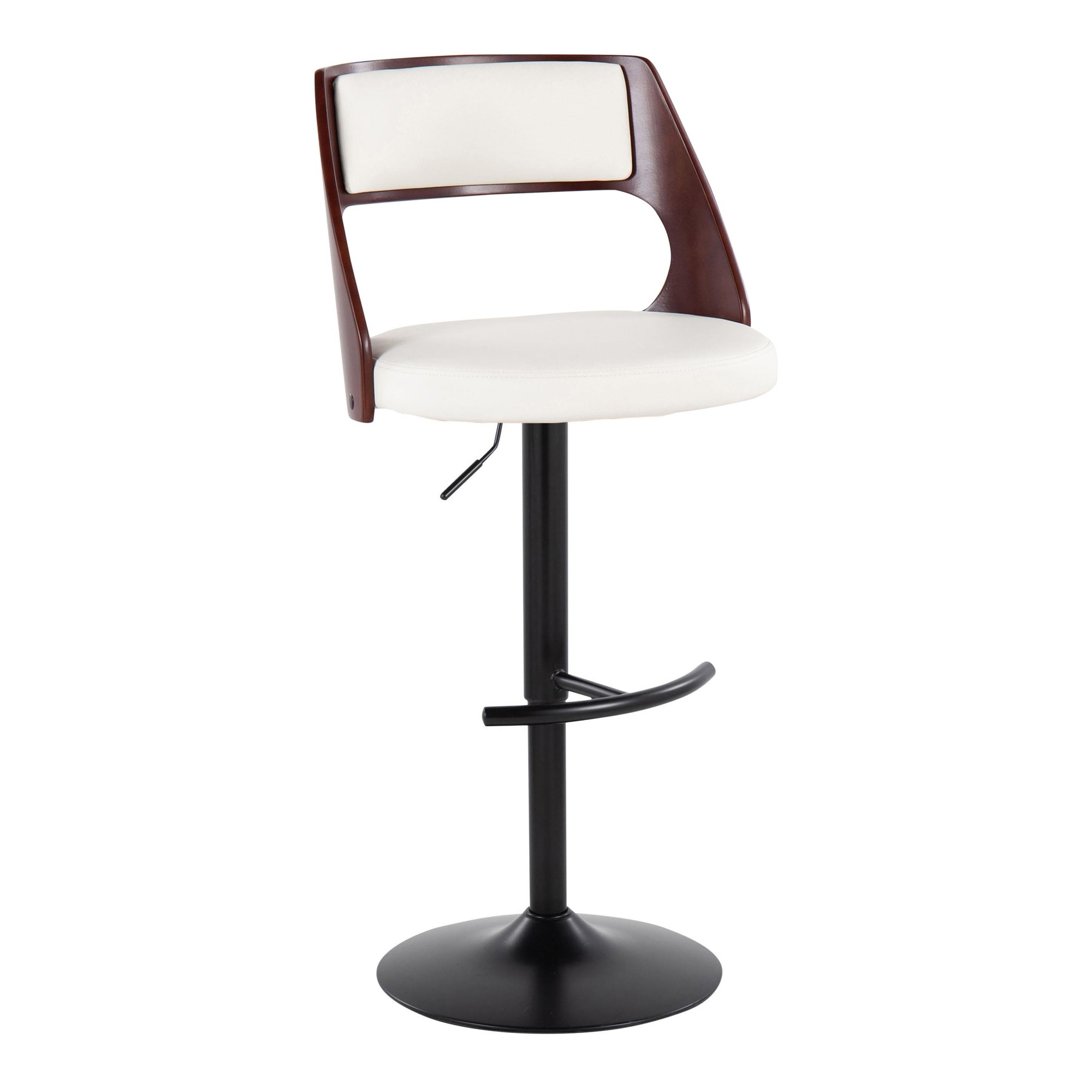 The Cecina Adjustable Barstool brings a modern vibe to your kitchen or bar area! This barstool features an upholstered seat, a supportive high back, and an adjustable pedestal base with a built-in footrest. The 360-degree swivel and adjustable height make it a versatile addition to any space. Offered in various colors, find the perfect match for your home!