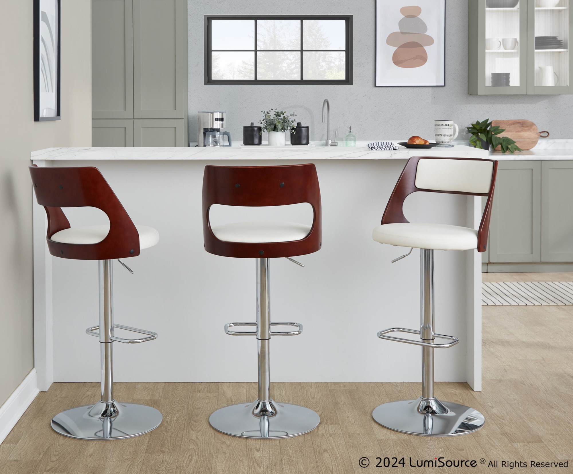 - Color: Chrome Metal, Mahogany Wood, White PU