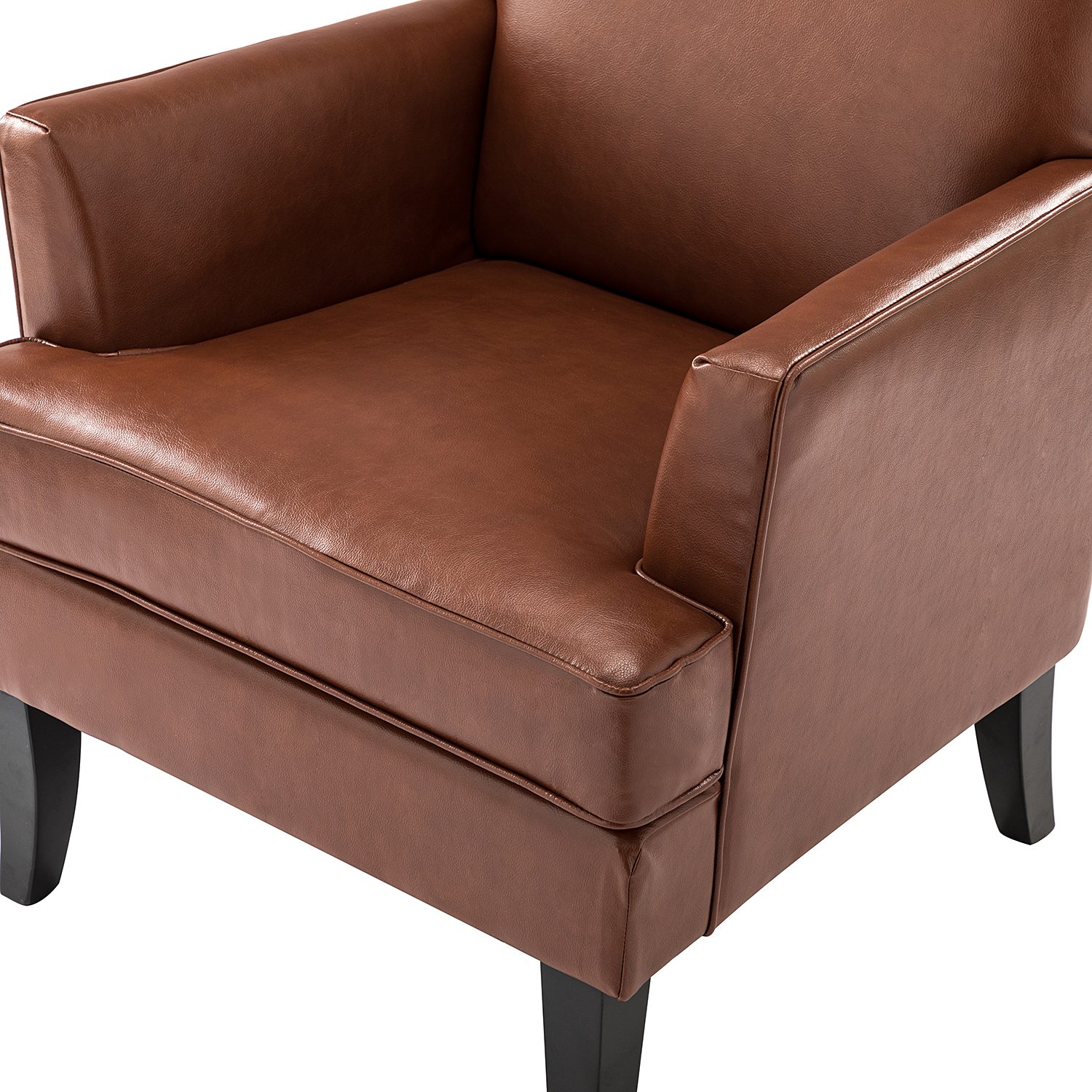 The Celadon Brown Vegan Leather Nailhead Trim Armchair is a classic and contemporary accent piece designed to enhance your living space. This armchair seamlessly blends style and comfort, making it a perfect addition to your living room, office, or bedroom. The glam nailhead trim on the backrest adds an eye-catching touch, while the vegan leather upholstery offers a hint of textural appeal. High-quality foam filling and a sturdy wood frame provide exceptional comfort and support, ensuring a relaxing experience whether you’re enjoying a good book or watching your favorite show. The elegant wooden legs complete the classic design, adding to the timeless fashion of this piece.