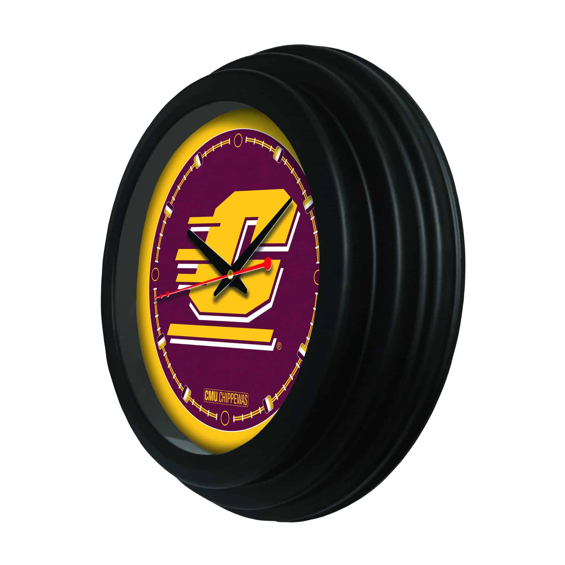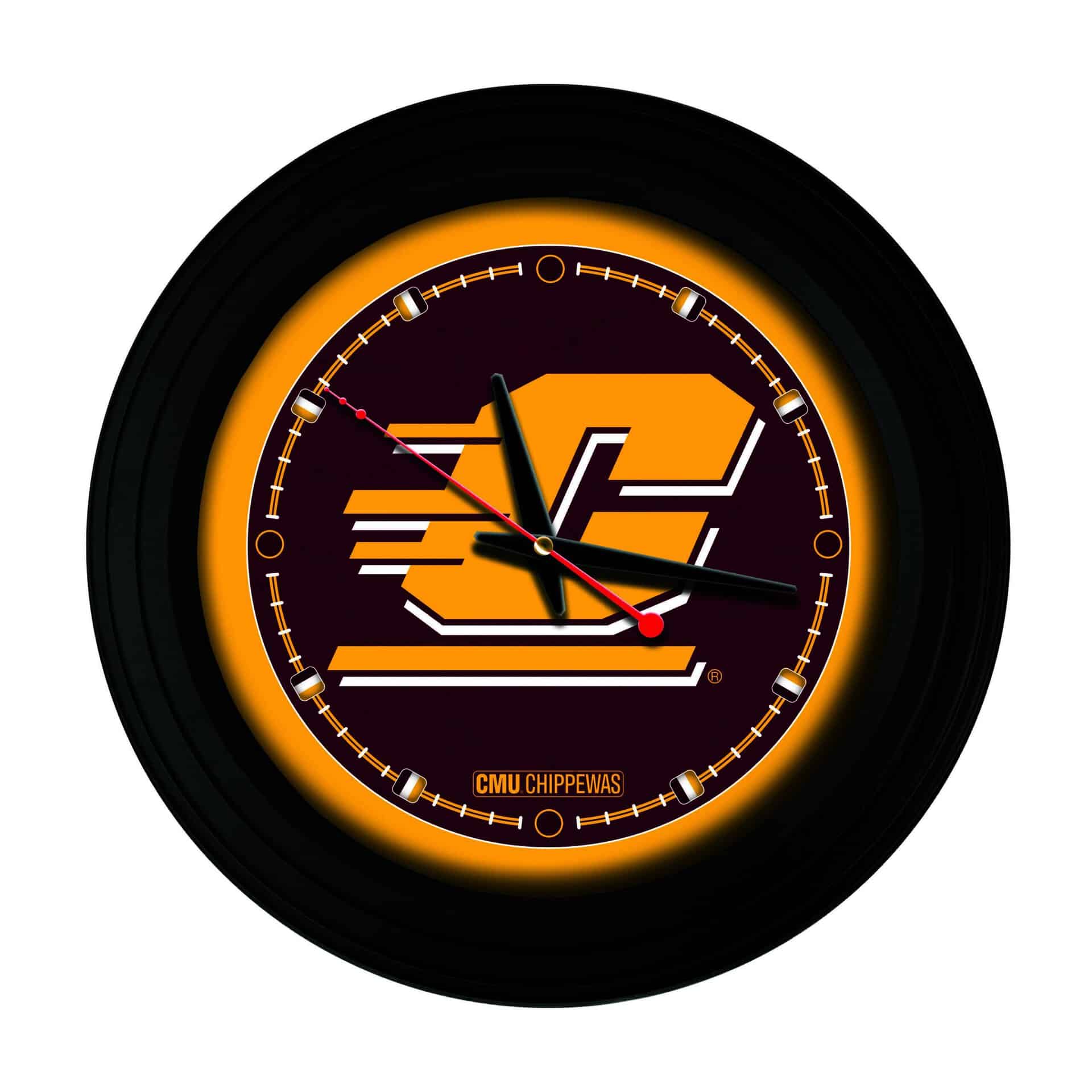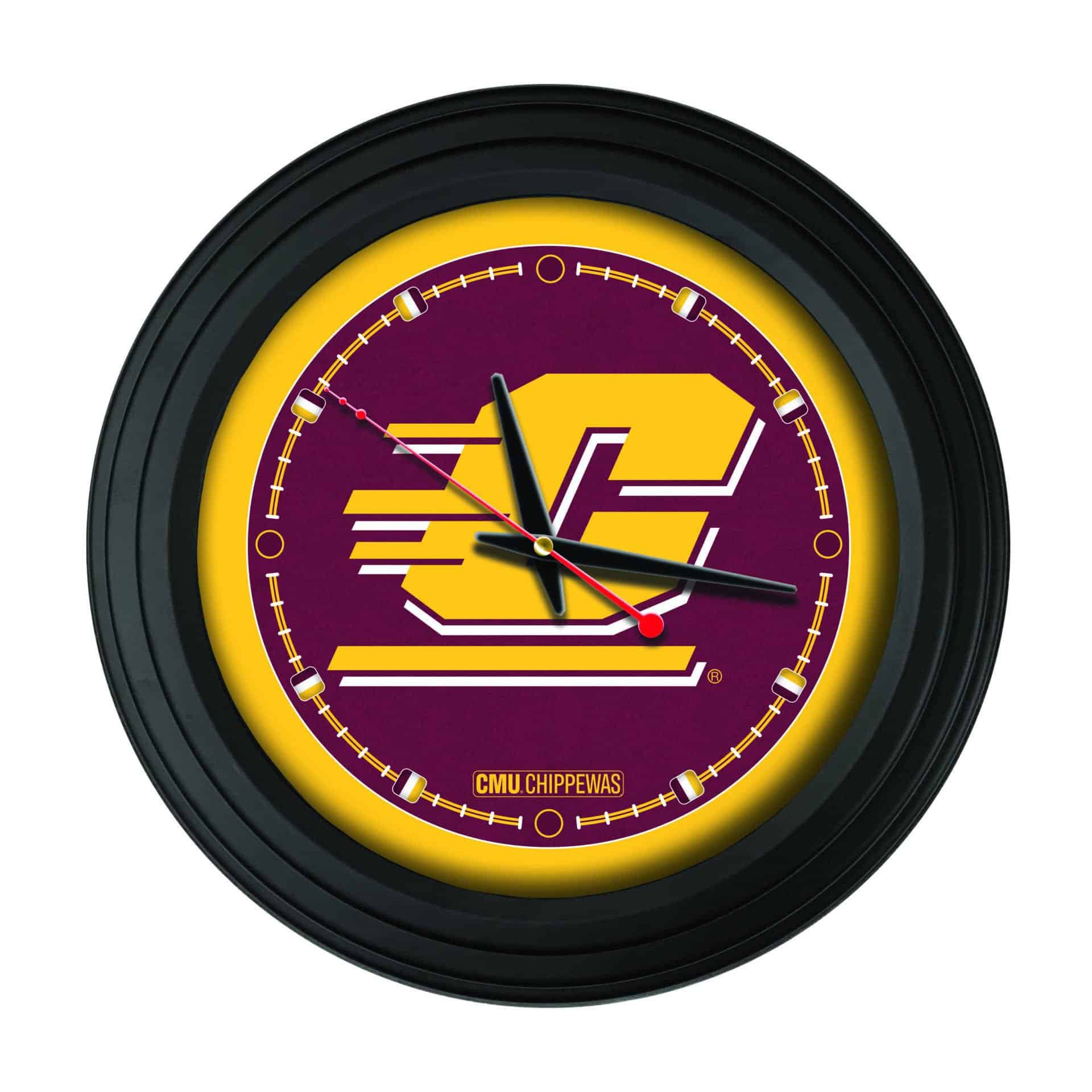 This 15-Inch Wall Clock in Black is the ideal addition to any man cave, showcasing school pride with vibrant, officially licensed graphics. The clock features a strong and simple UV-resistant casing, ensuring durability while the glass lens protects the stunning artwork. With accurate quartz movement powered by an AA battery, this clock is as functional as it is stylish. The recessed hanger allows for a flush mount against the wall, giving your space a clean and polished look. Perfect as a gift for recent graduates or sports fans, this clock is a must-have for any Central Michigan University supporter.