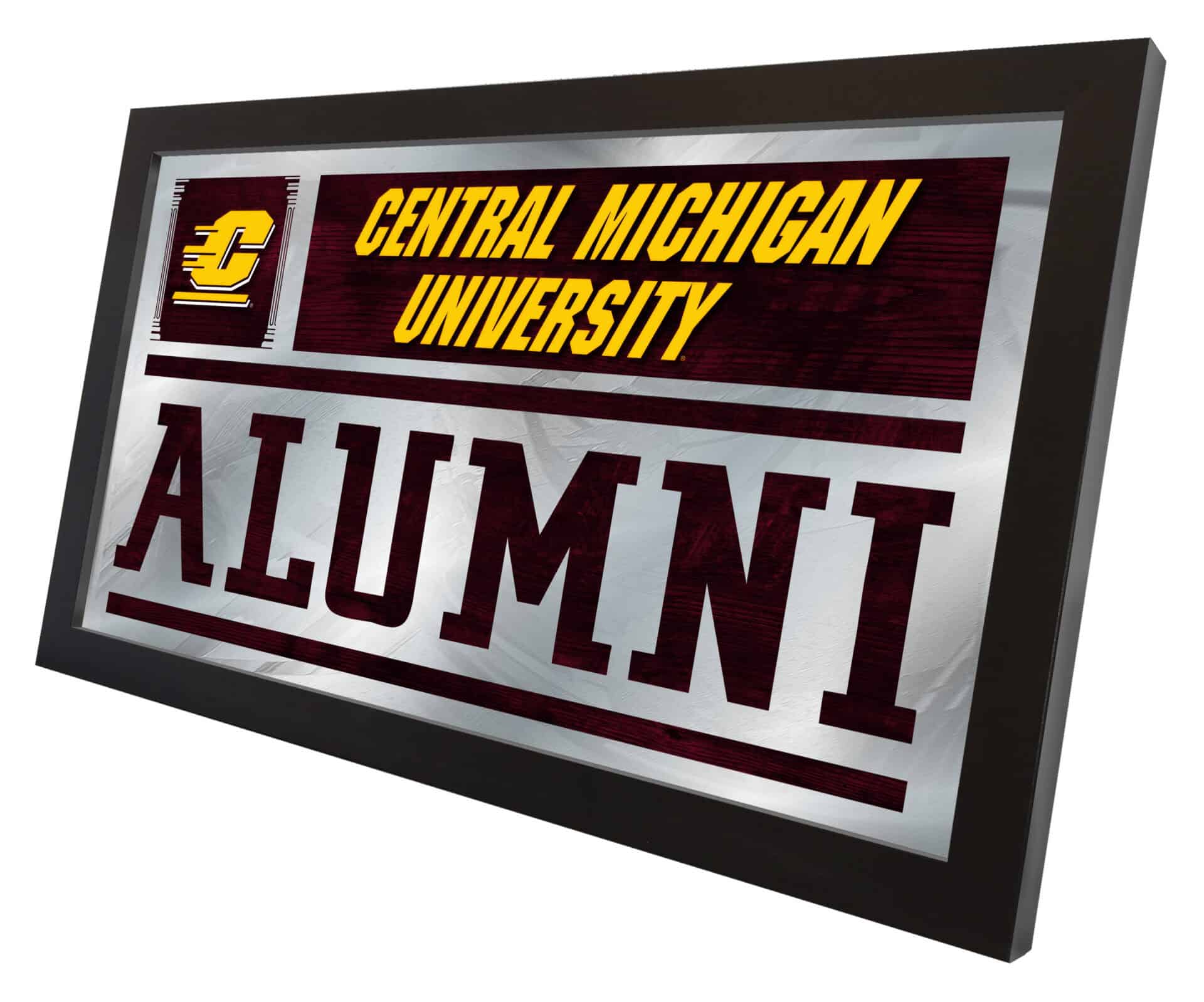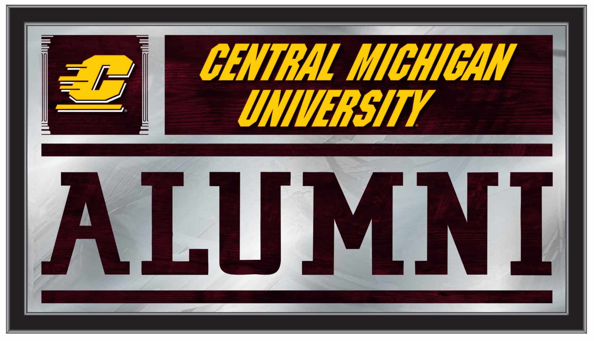 Show your school pride with the Central Michigan University 26×15 Alumni Wall Mirror. With its simple yet elegant design, your school colors burst through the 1/8″ thick glass and are highlighted by the mirrored accents. This mirror is framed with a black, 1 1/4″ wrapped wood frame and features saw tooth hangers for easy installation. Measuring 26″(H) x 15″(W), it is perfect for your office, garage, or any room in the house. Whether you’re purchasing it as a gift for a recent graduate or for yourself, you can take satisfaction knowing you’re buying a mirror that is proudly made in the USA.