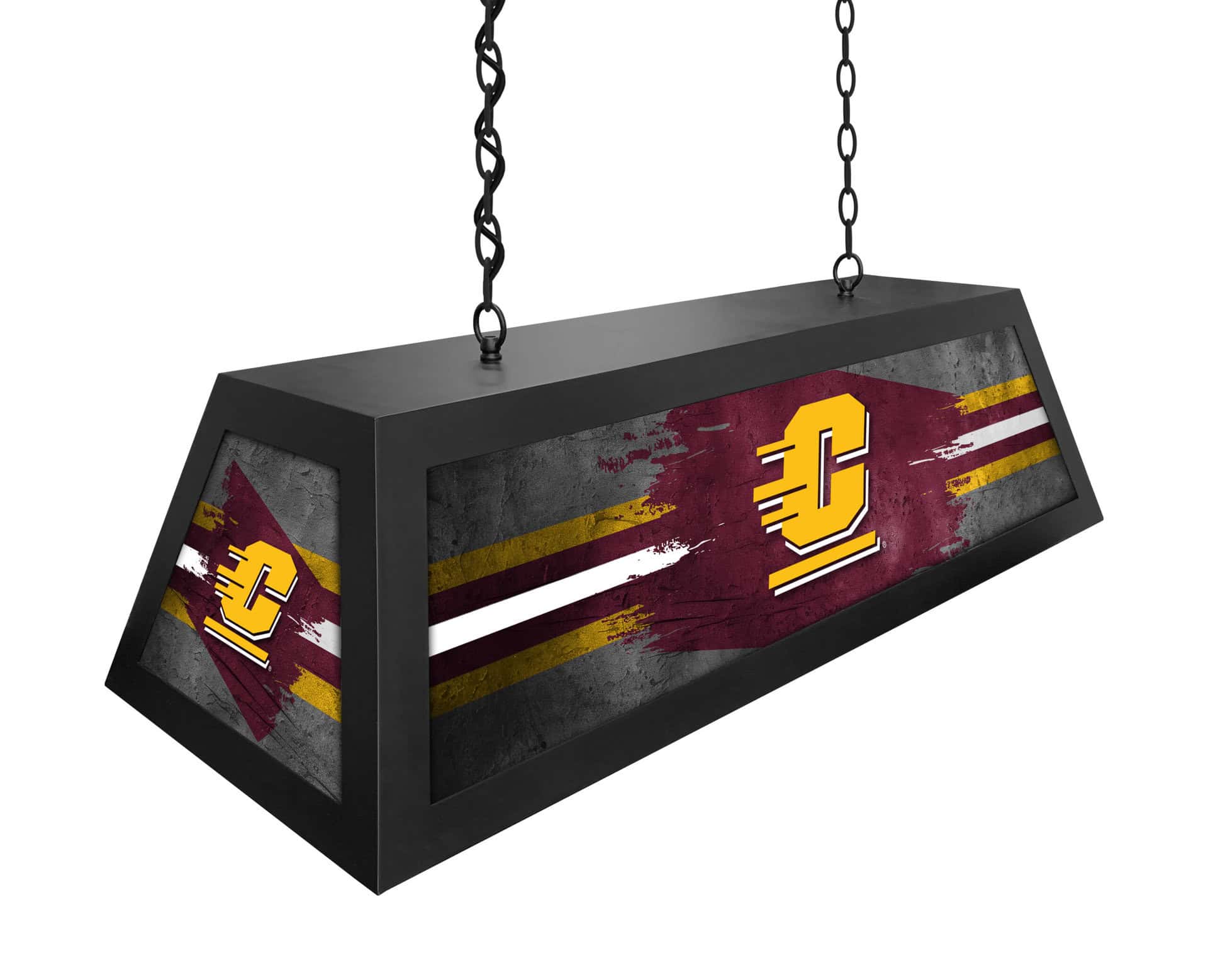 Add some team spirit to your game room with the Central Michigan University Long Box Billiard Light. This suspended light fixture features a sleek metal frame and a bright, backlit design, making it perfect for illuminating your billiard table, game table, or bar area. The durable construction and vibrant graphics ensure it will be a focal point for years to come.