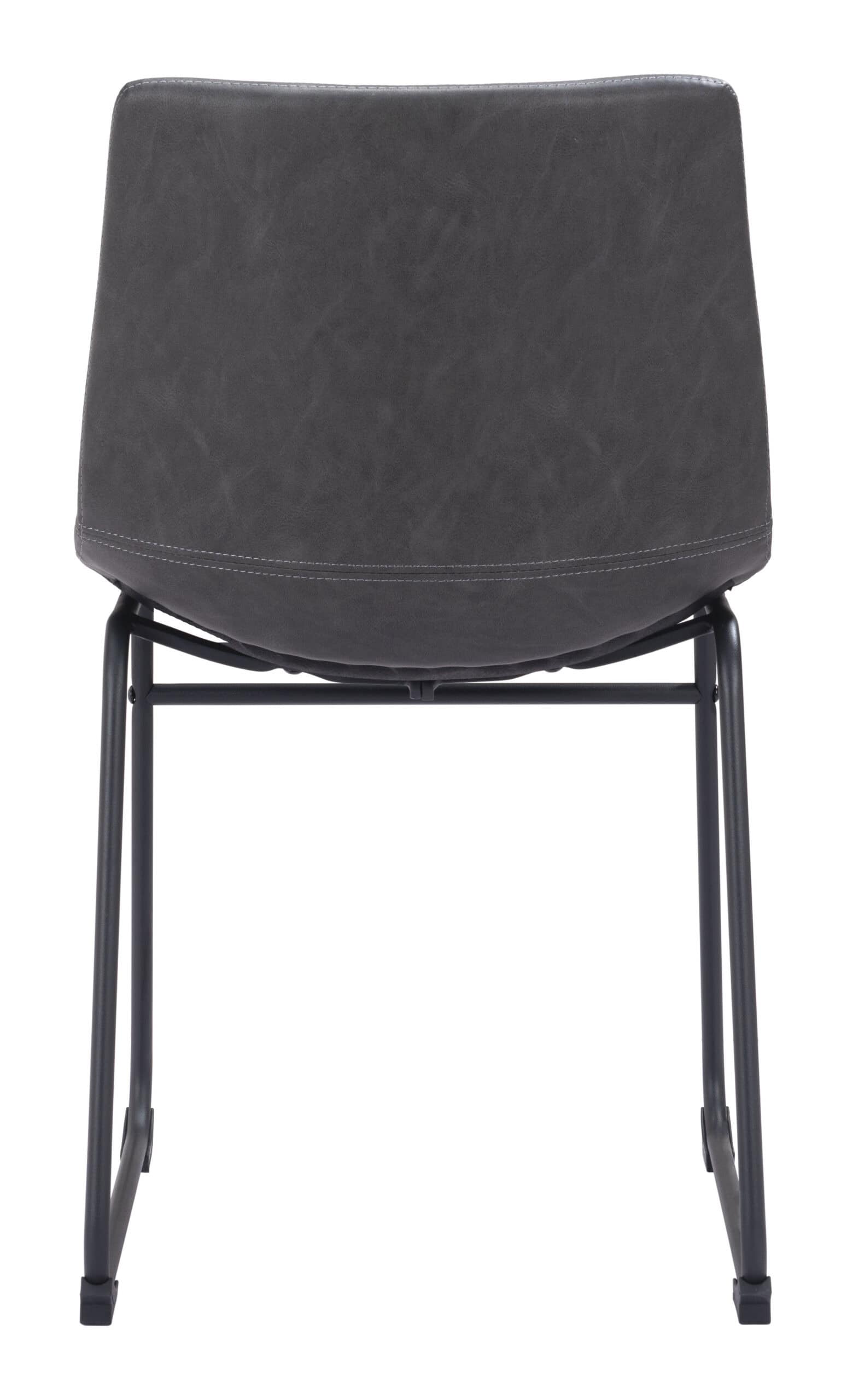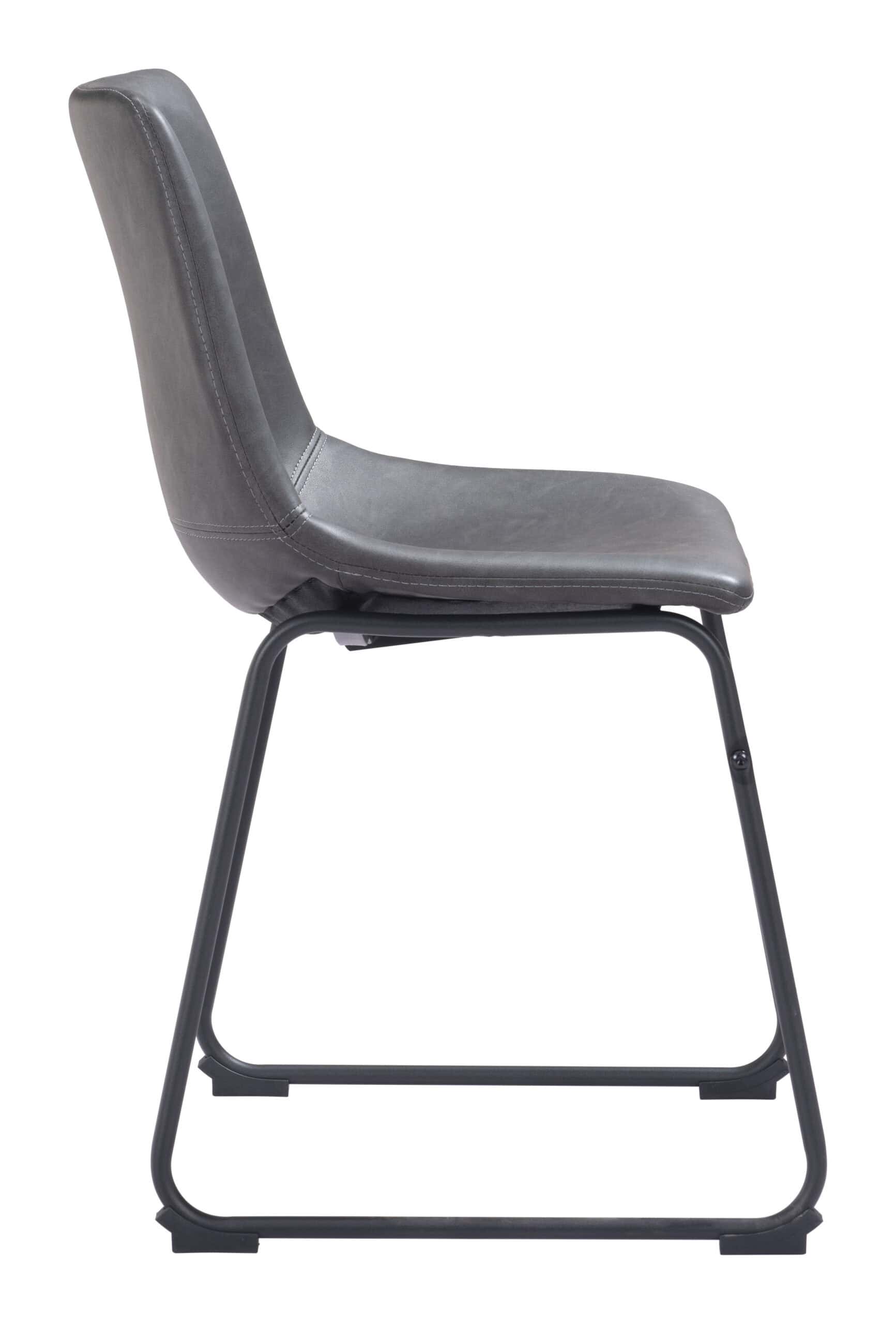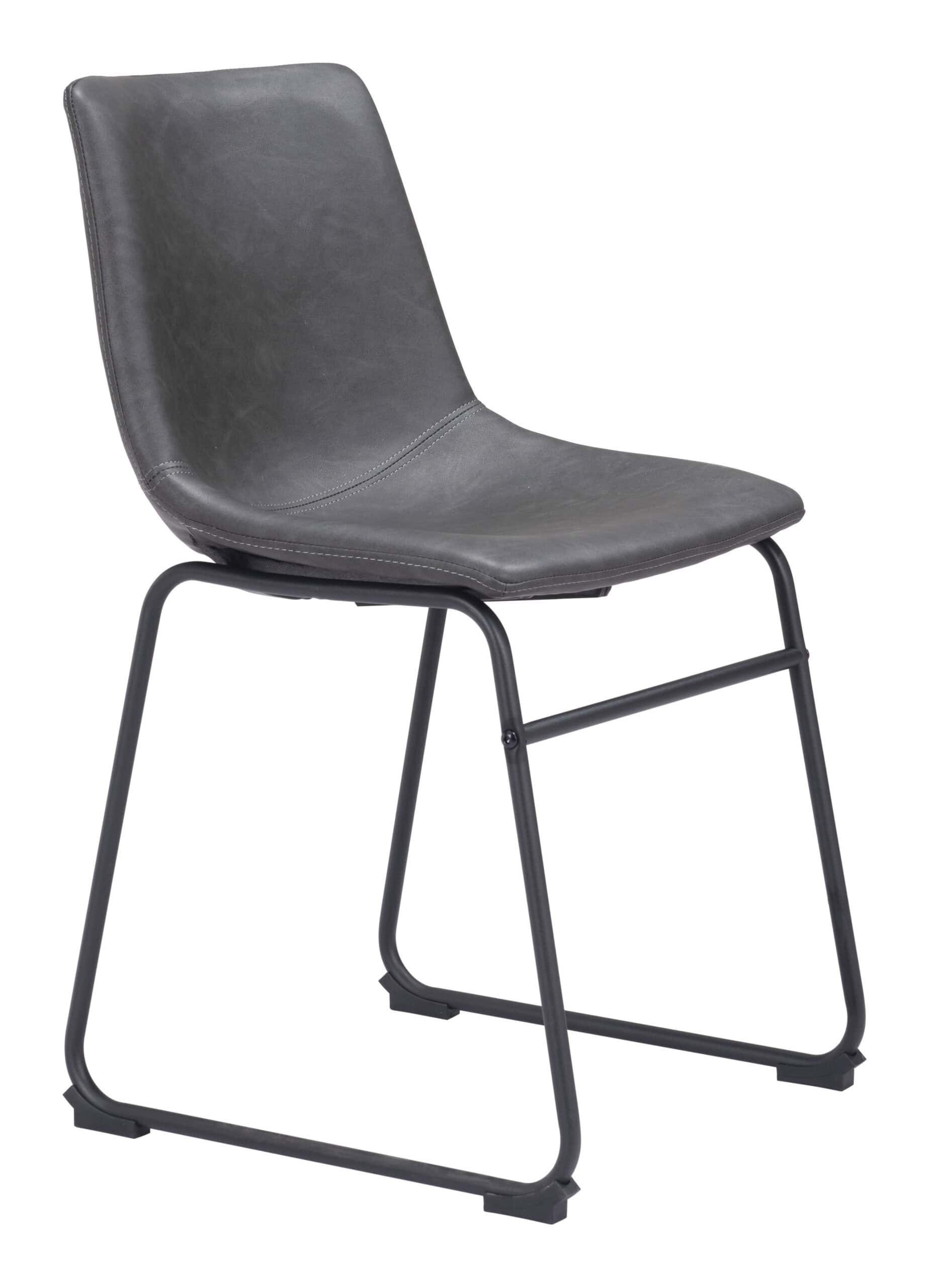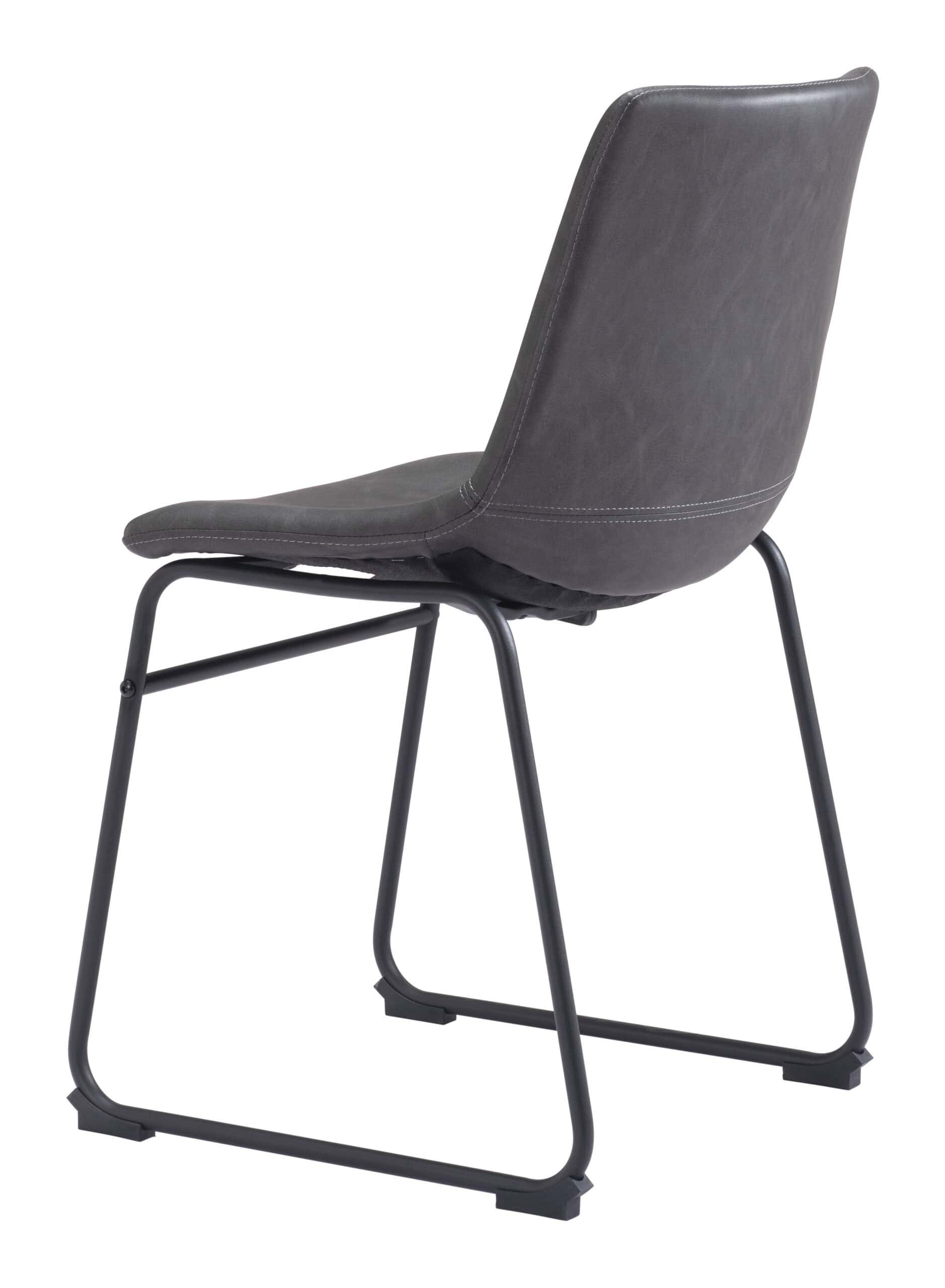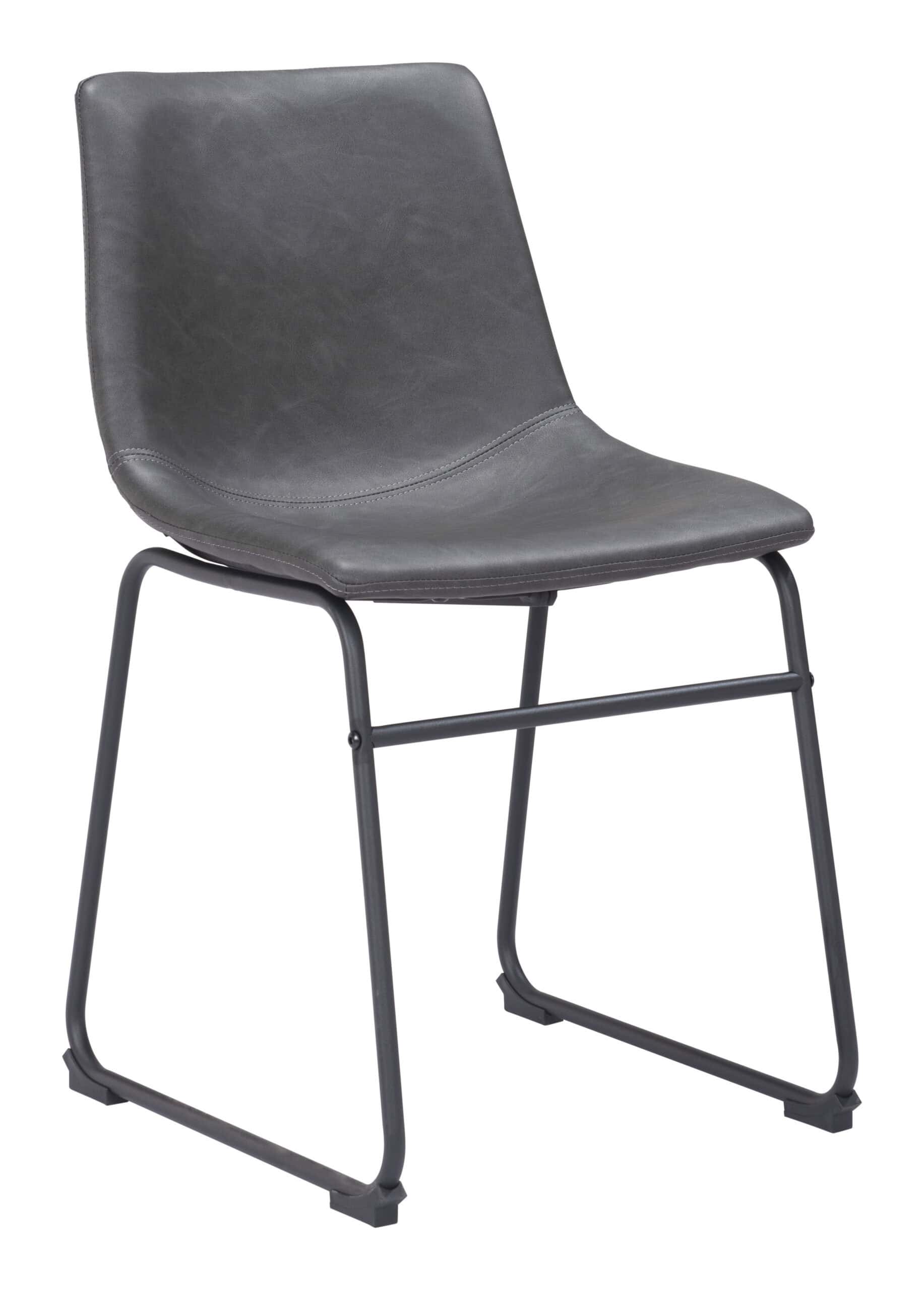 The Charcoal Faux Leather Dining Chair with Matte Black Frame (Set of 2) offers a stylish and comfortable seating option for your dining area or man cave. Crafted with a sculpted design, these chairs ensure both comfort and durability. Upholstered in soft, high-quality 100% polyurethane faux leather, the chairs feature a slim-profile matte black metal frame for a sleek, modern look. A crossbar adds extra stability, while rubber feet prevent scratches on your floors. Built to support up to 330 lbs, these chairs are not only fashionable but functional, making them a versatile addition to your space.