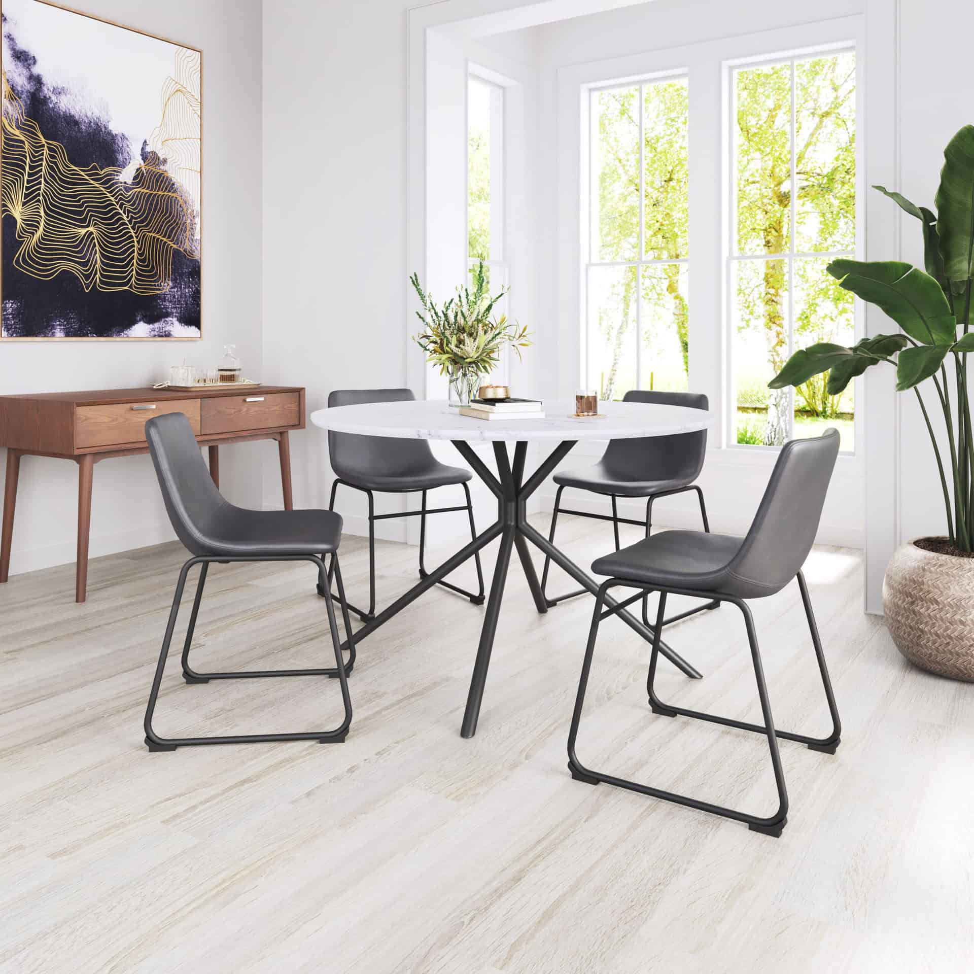 - Powder-coated steel leg: Provides a sleek, matte black finish and lasting durability