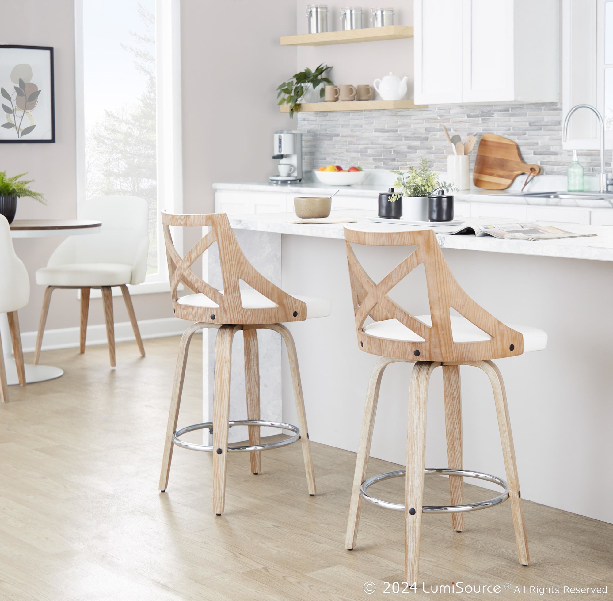 - Color: Whitewashed Wood, White PU, Chrome Metal