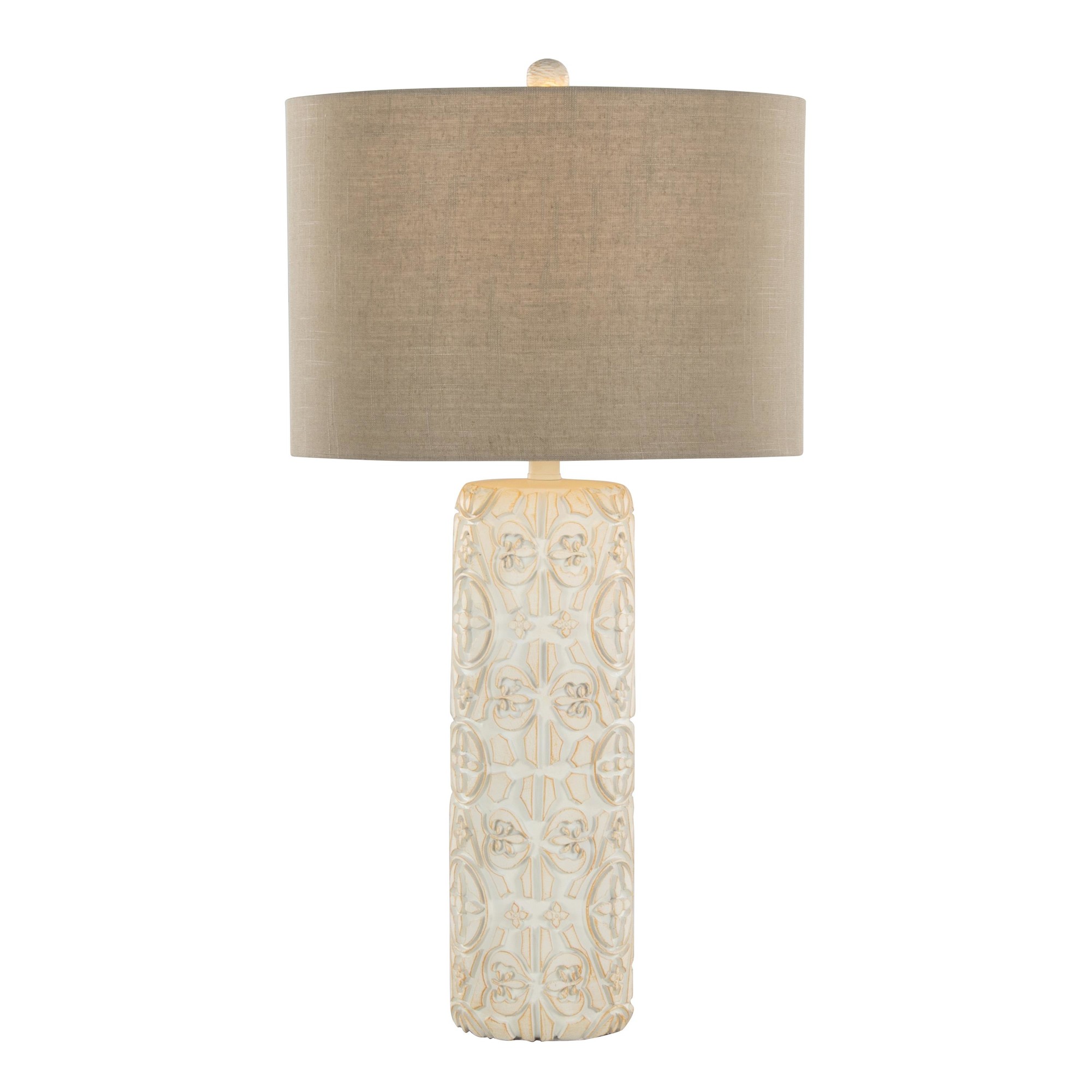 Bring eye-catching style to your space with the Charlotte Table Lamps. These lamps feature an intricately carved cylindrical base and a beige linen drum shade. This beautiful set will illuminate any space in your home!