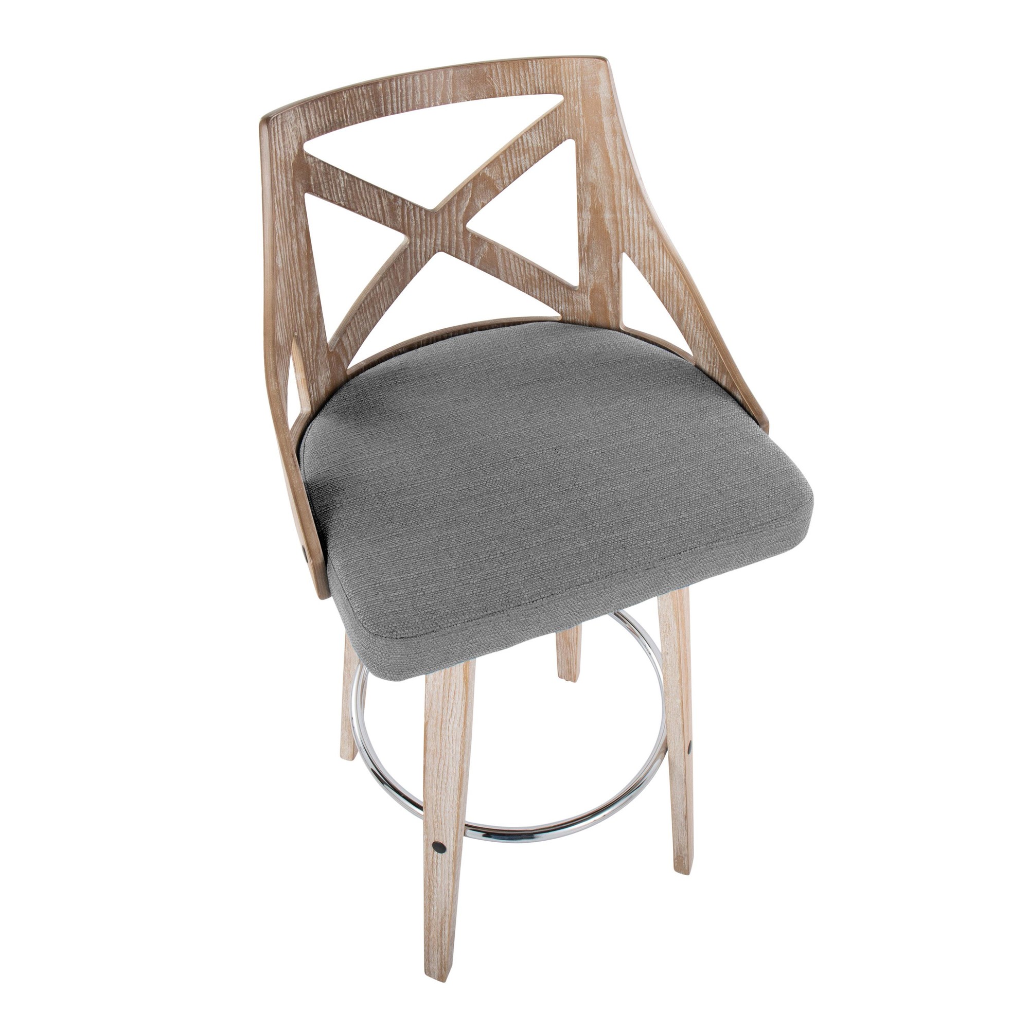 The Charlotte 30 Farmhouse Swivel Barstool brings farmhouse elegance to your dining or bar area. With its elegant styling, the backrest shows off an X-shaped accent. The combination of white-washed wood, fabric upholstery, and a swivel seat blends traditional and farmhouse styles. Enjoy the comfort and style of this barstool.
