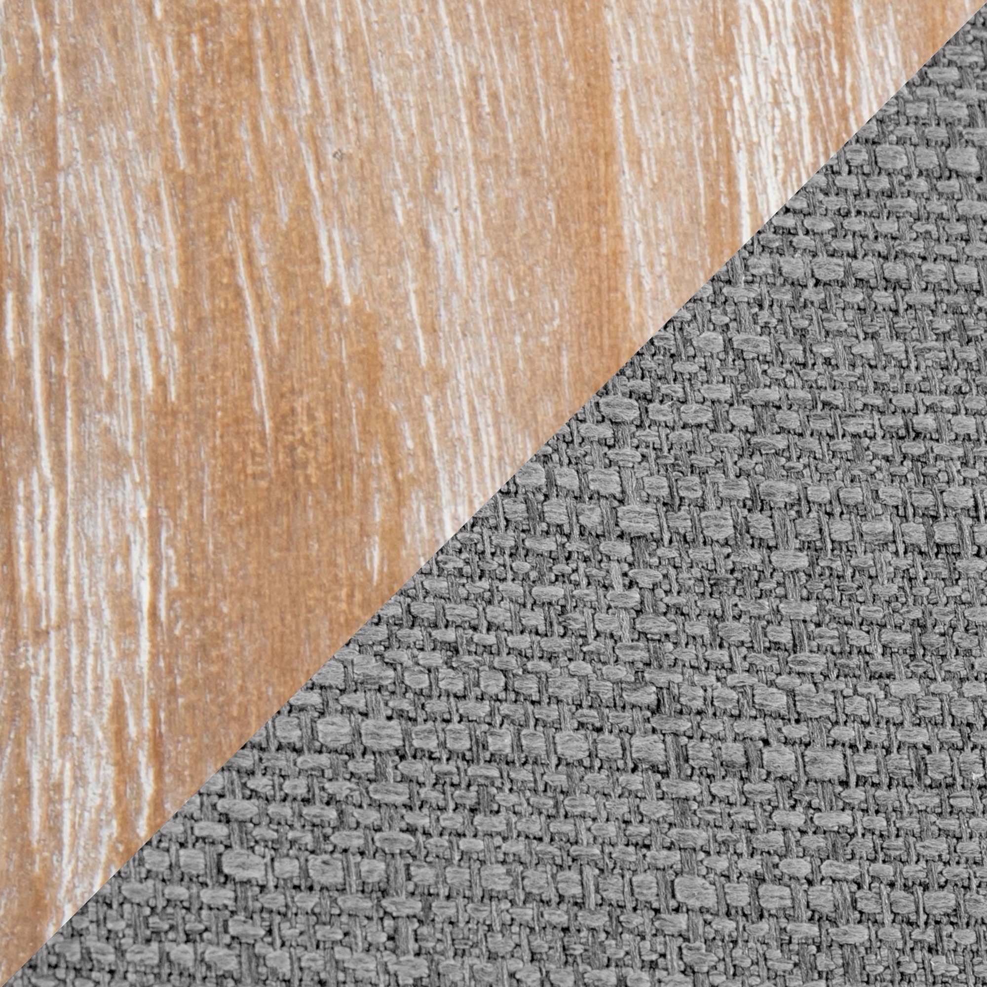 - Color: White Washed Wood, Chrome Metal, Light Grey Fabric