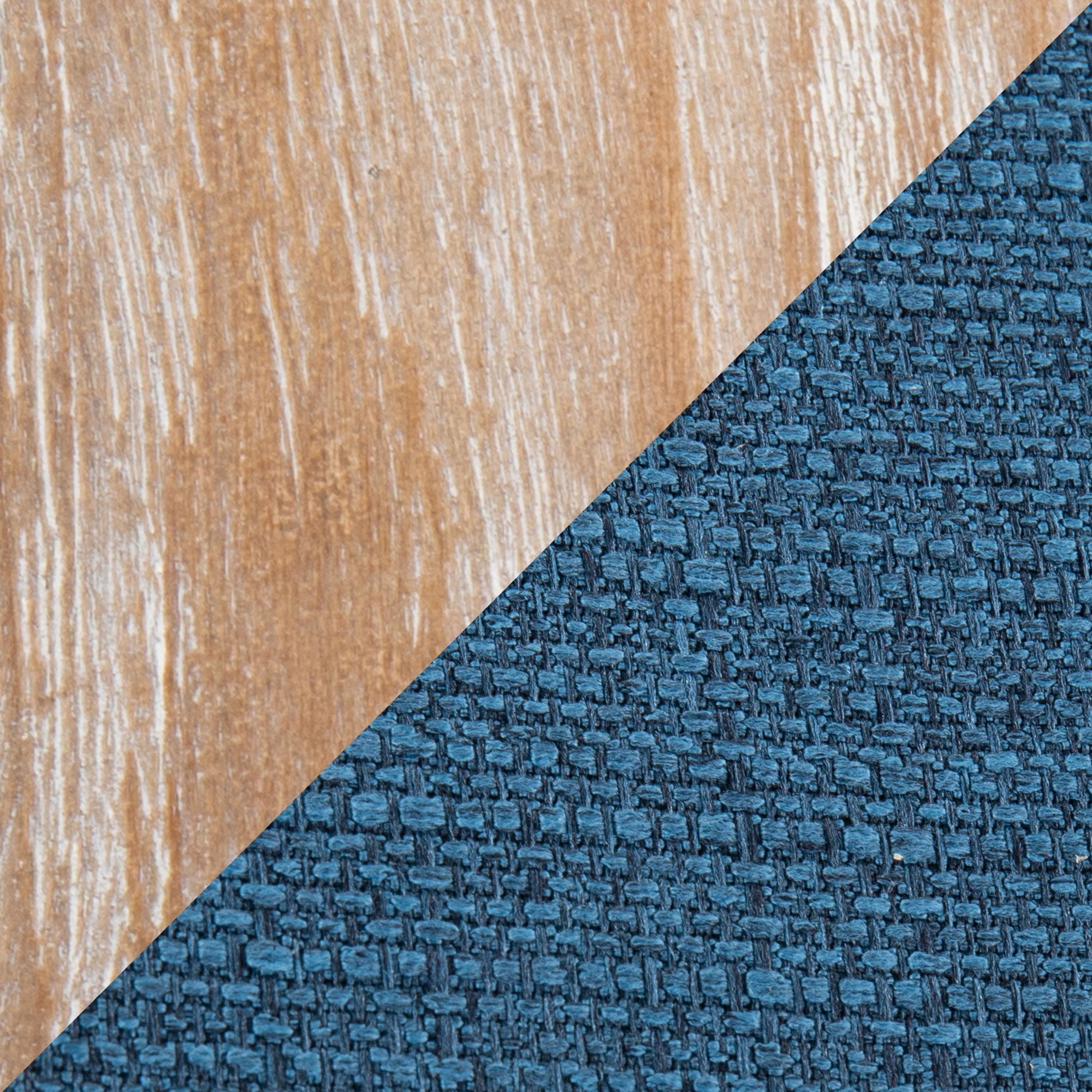 - Color: White Washed Wood, Chrome Metal, Blue Fabric