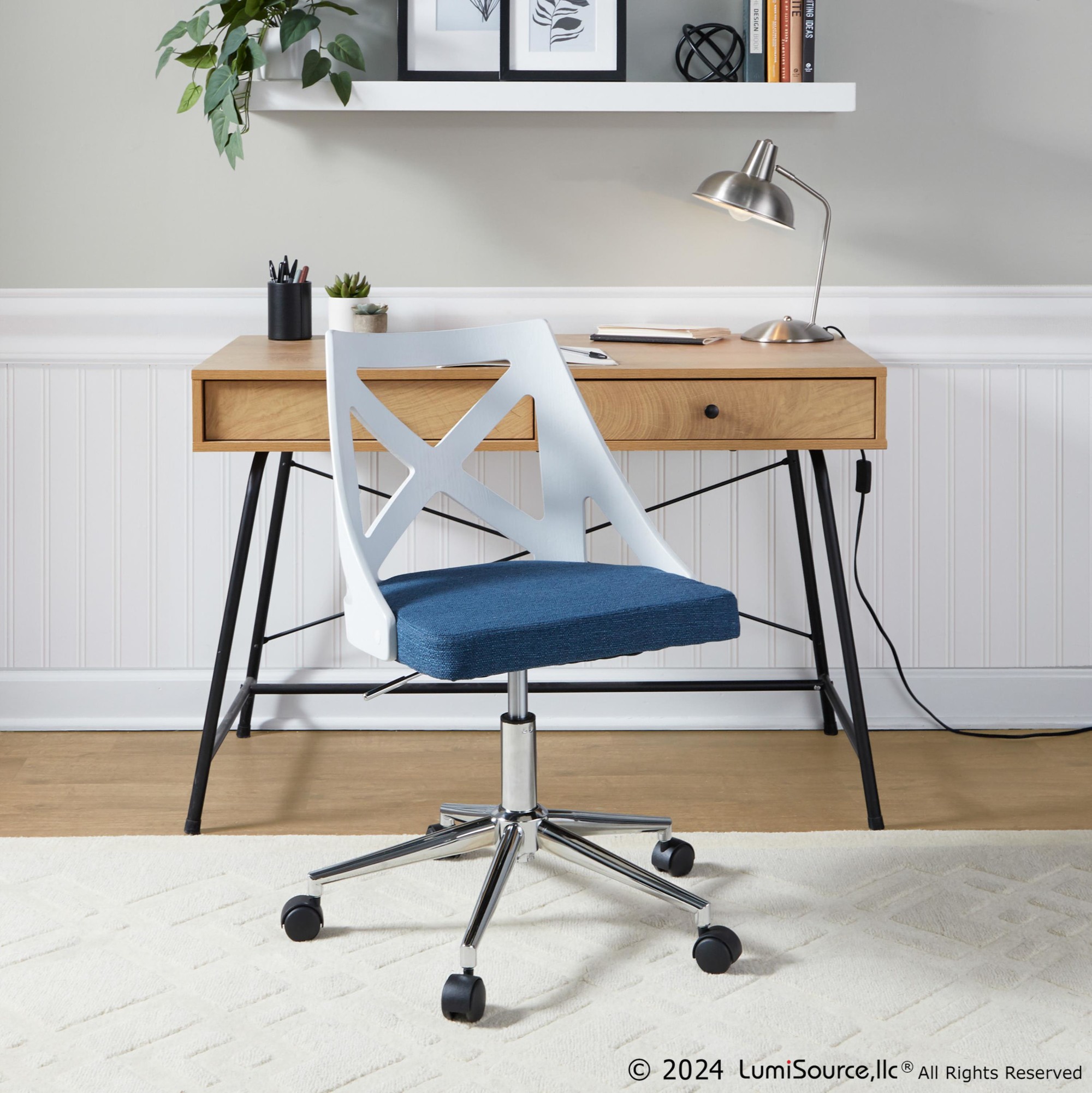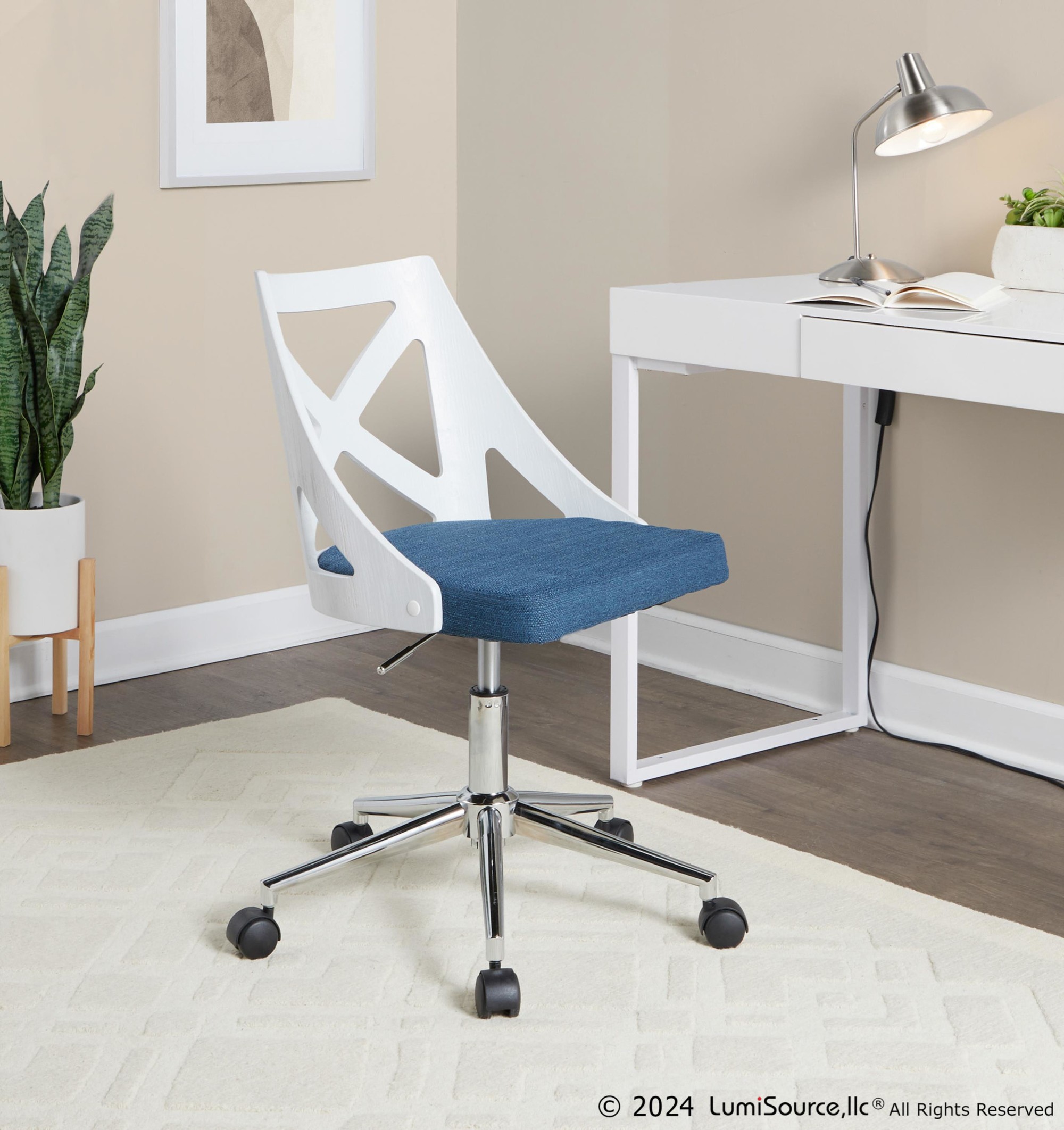 Bring a touch of farmhouse charm to your office with the Charlotte Office Chair. This stylish chair features elegant fabric upholstery and a unique X-shaped accent on the backrest. Enjoy comfortable seating with its padded seat and convenient features like adjustable height and 360-degree swivel.