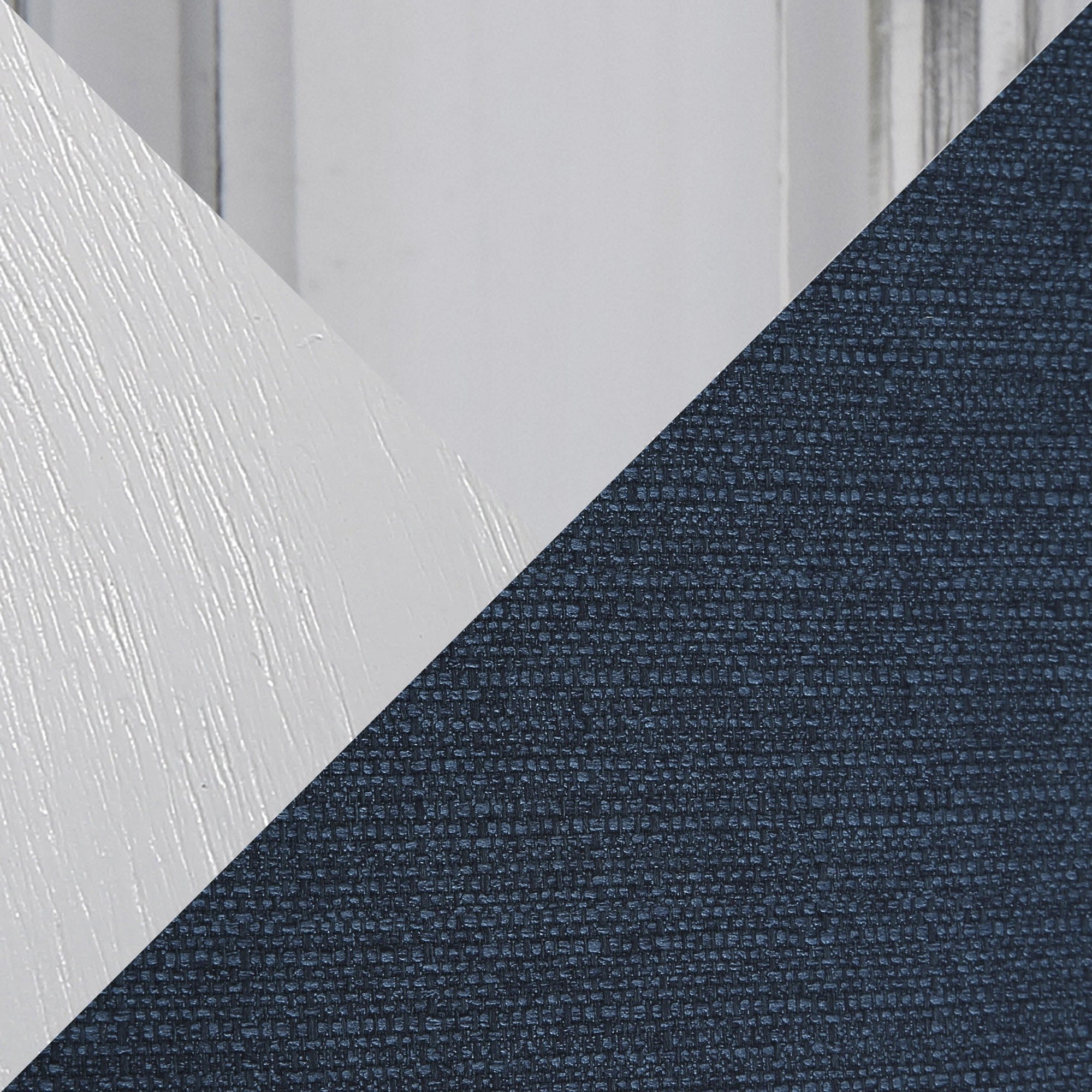 - Color: Chrome Metal, White Textured Wood, Blue Fabric