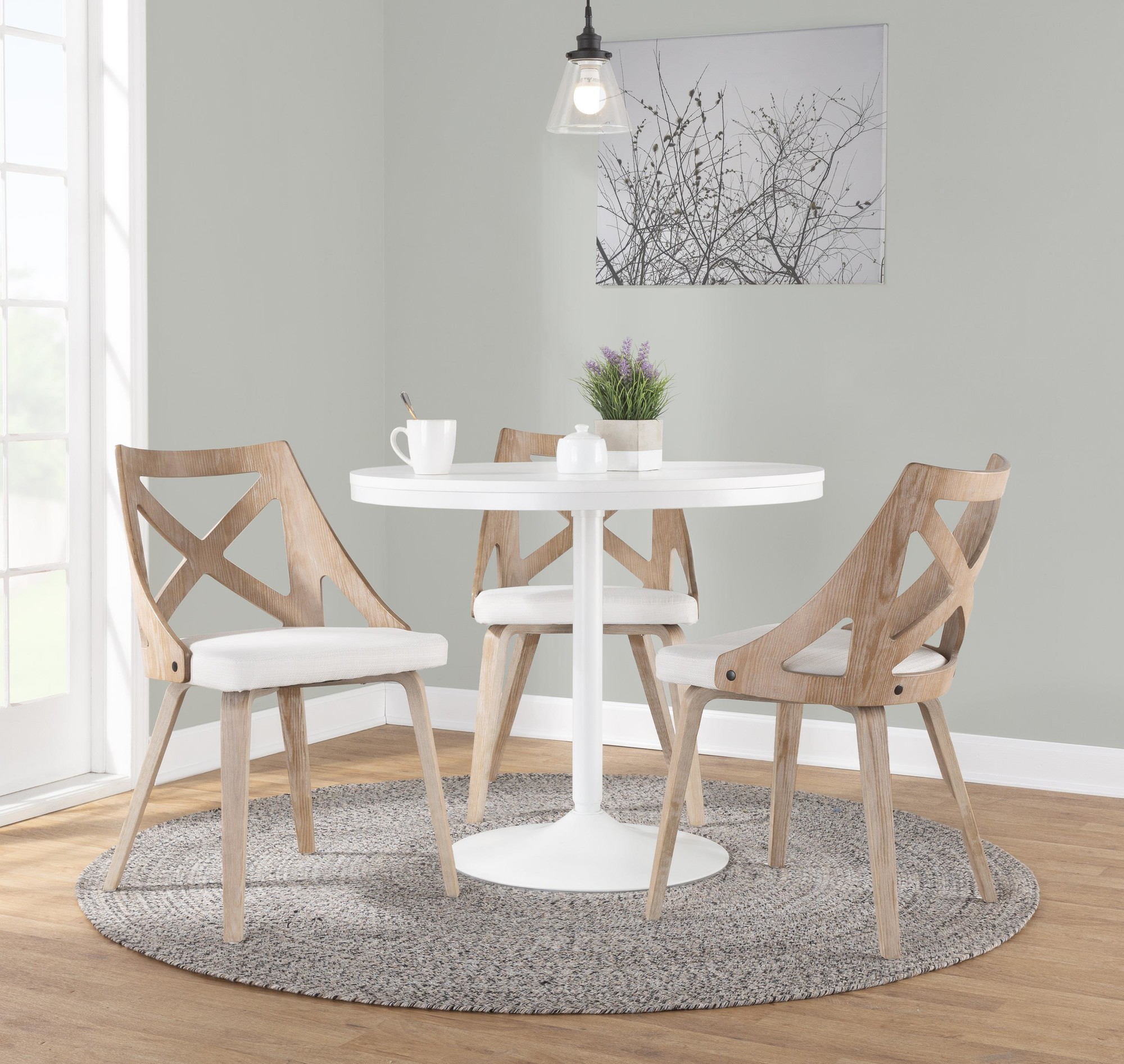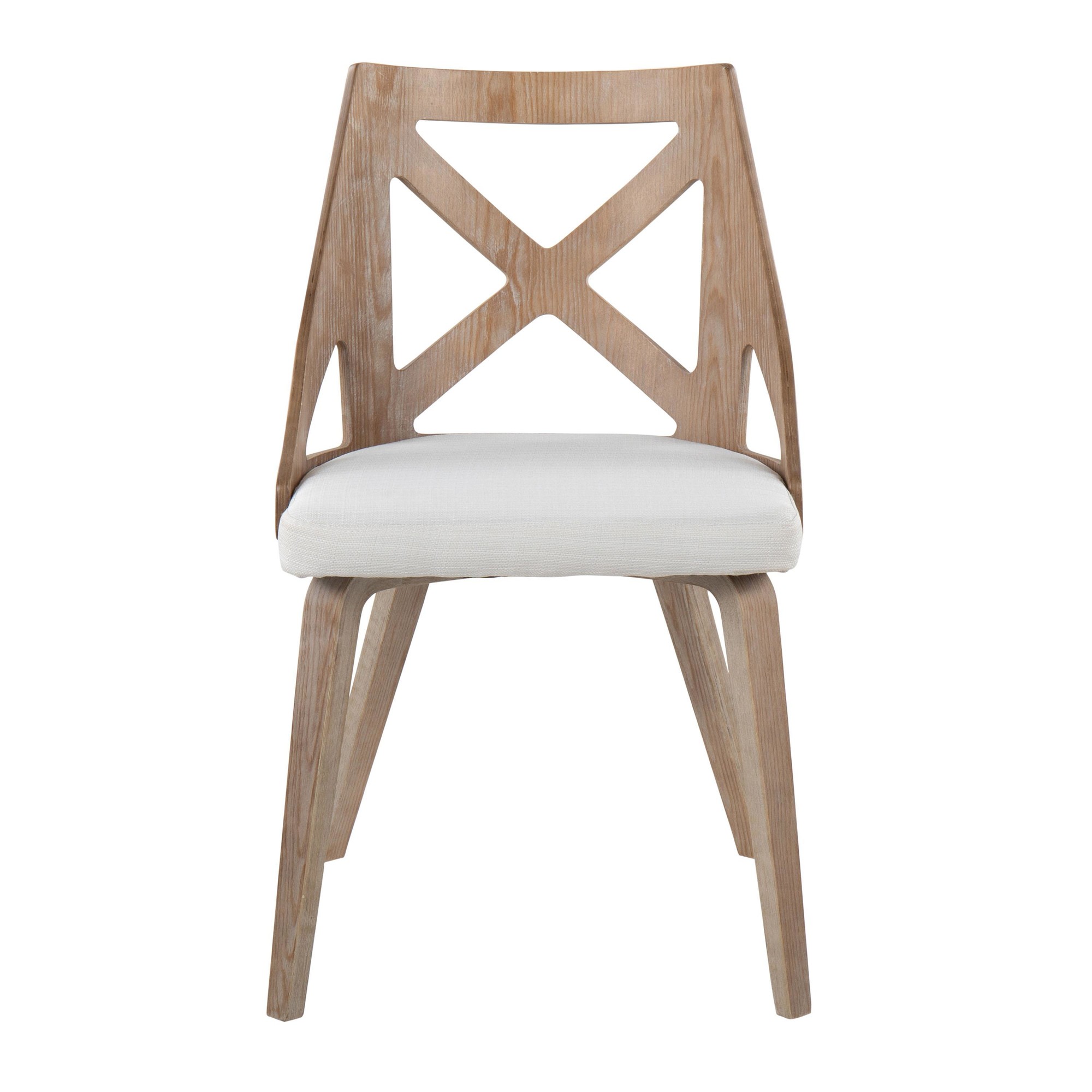 The Charlotte Dining Chairs spruce up any dining area with their elegant styling. The backrest features a unique X-shaped accent, adding a touch of farmhouse charm. With a combination of white washed wood and stylish fabric upholstery, these chairs beautifully straddle the line between traditional and farmhouse styles. Enjoy a comfortable and stylish dining experience with these charming chairs!