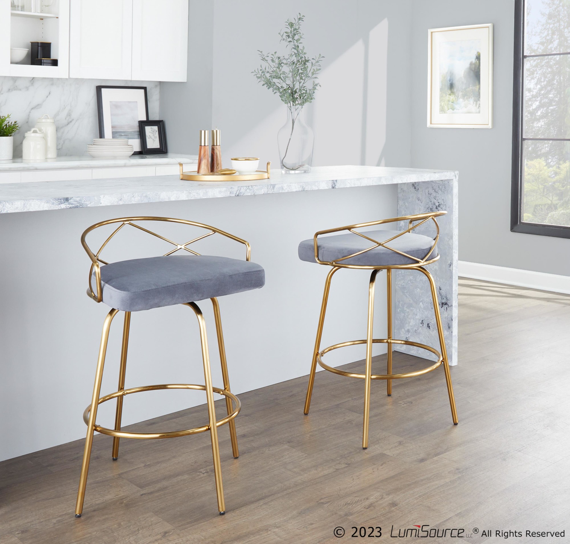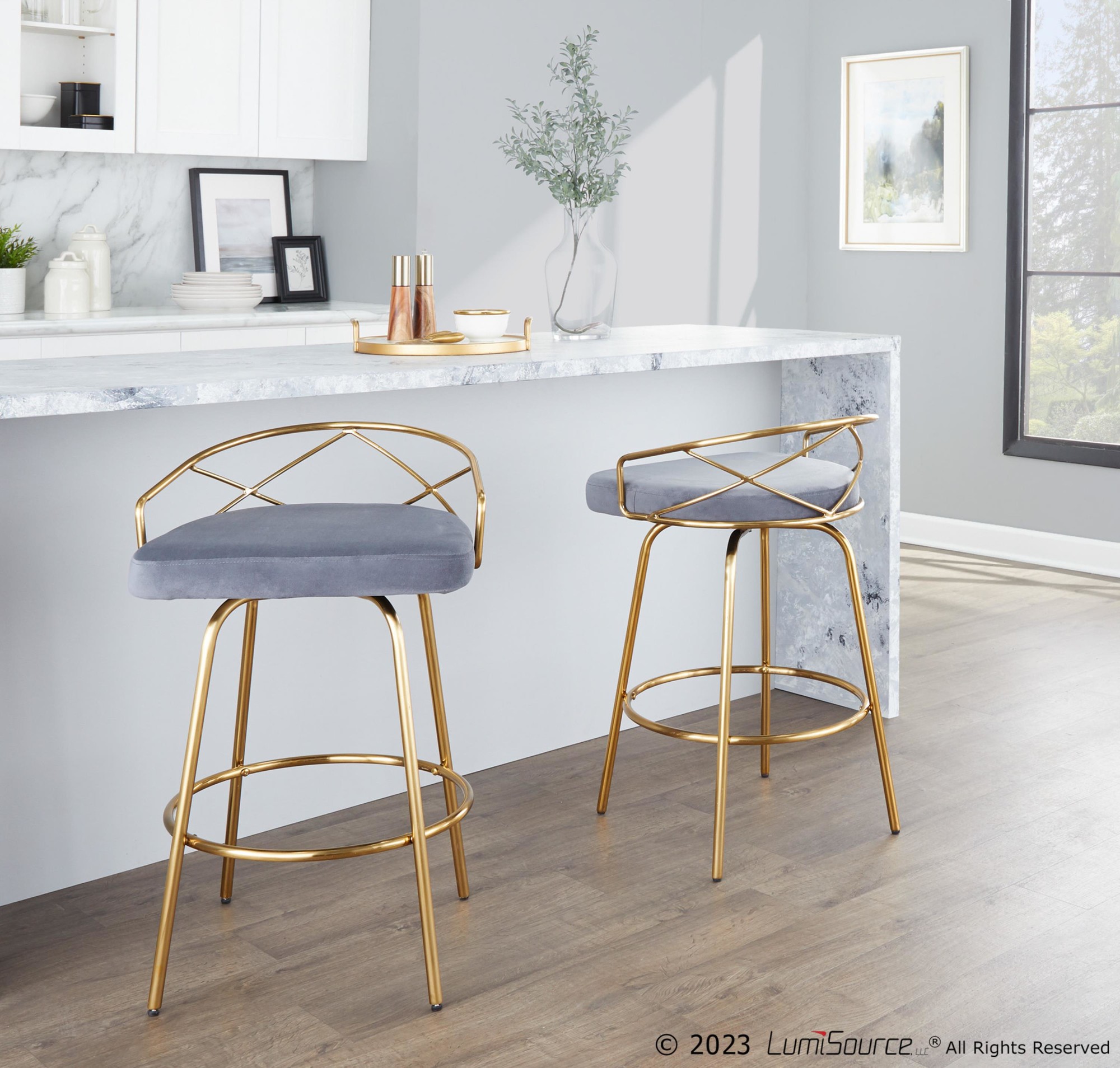 Charlotte Glam 26 Grey Velvet Swivel Counter Stools (Set of 2)