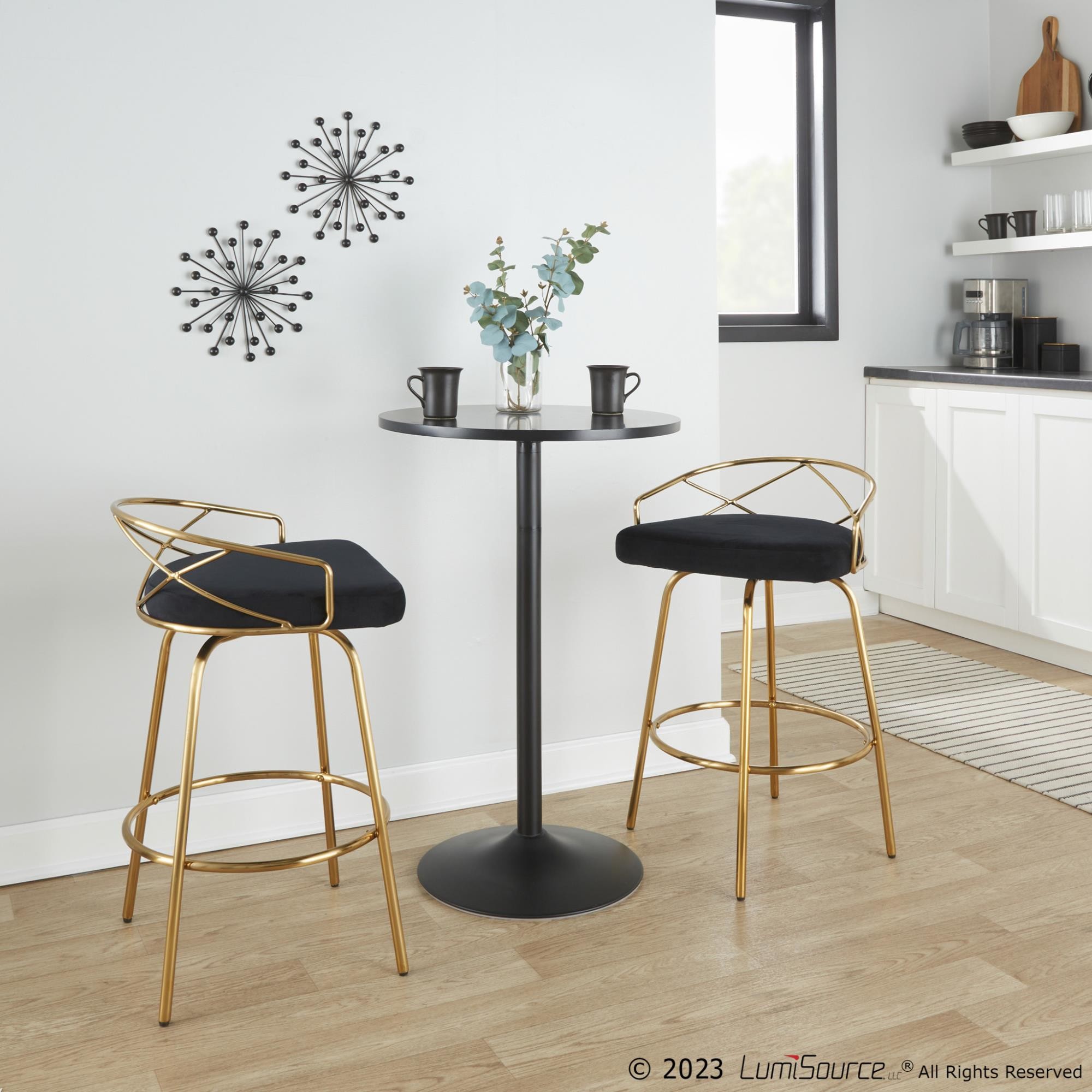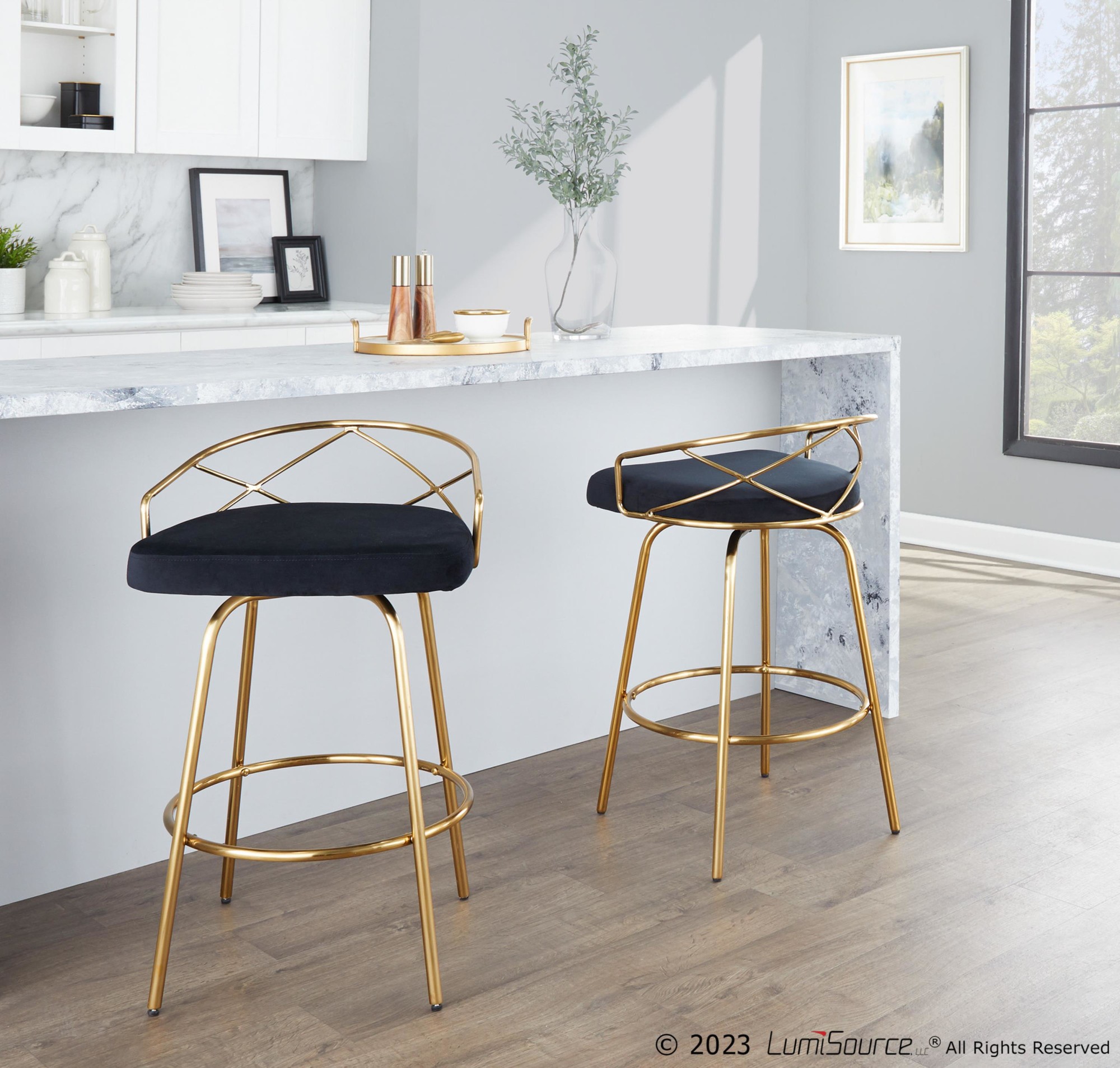 Charlotte Glam Gold and Black Velvet Counter Stools (Set of 2)