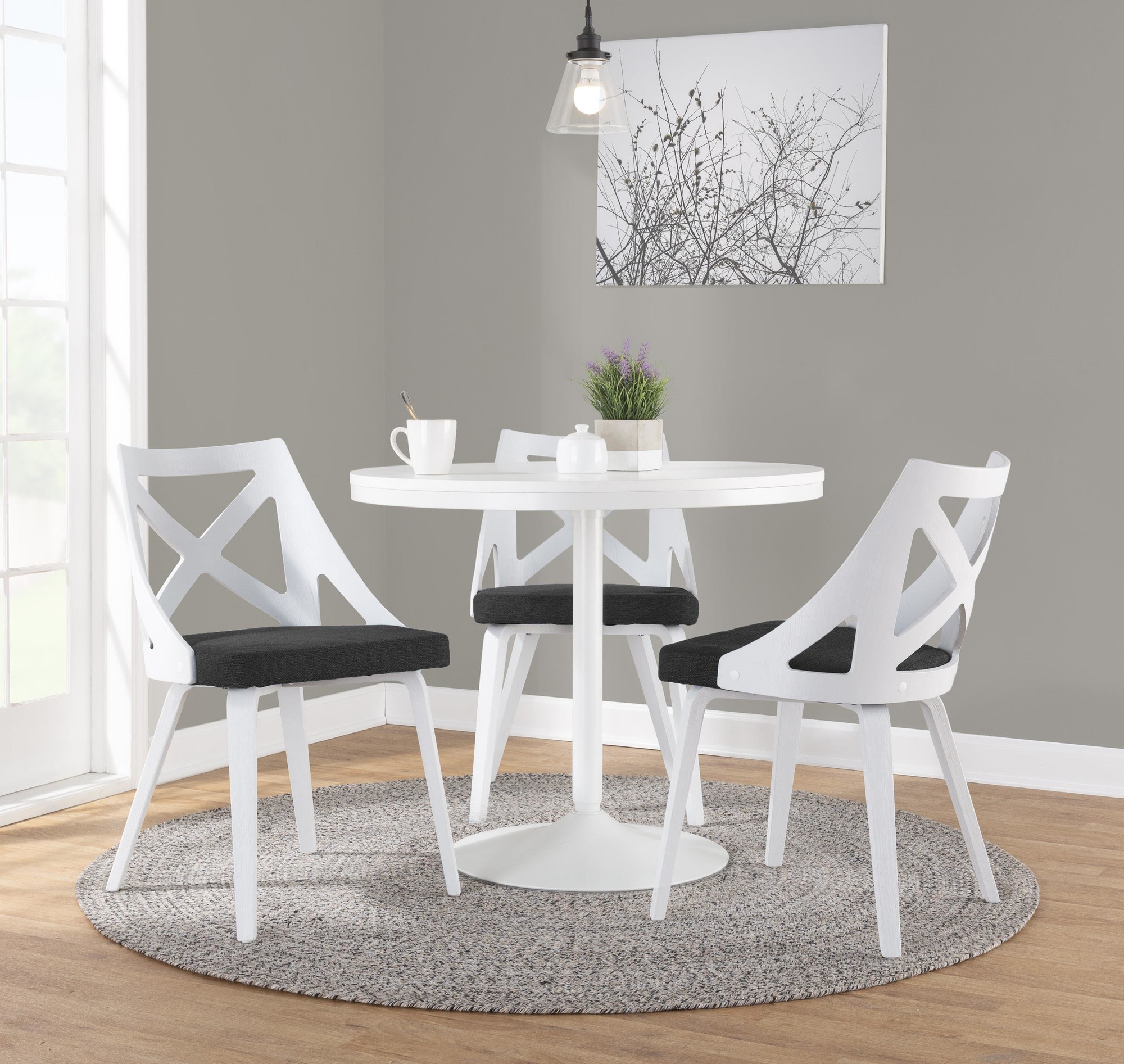 Spruce up your dining area with the Charlotte Dining Chairs. These chairs offer elegant styling, featuring an X-shaped accent on the backrest. The combination of white textured wood and stylish charcoal fabric upholstery allows these chairs to beautifully blend traditional and farmhouse design elements. Enjoy the comfort of the cushioned seat and elevate your dining experience with this charming set.