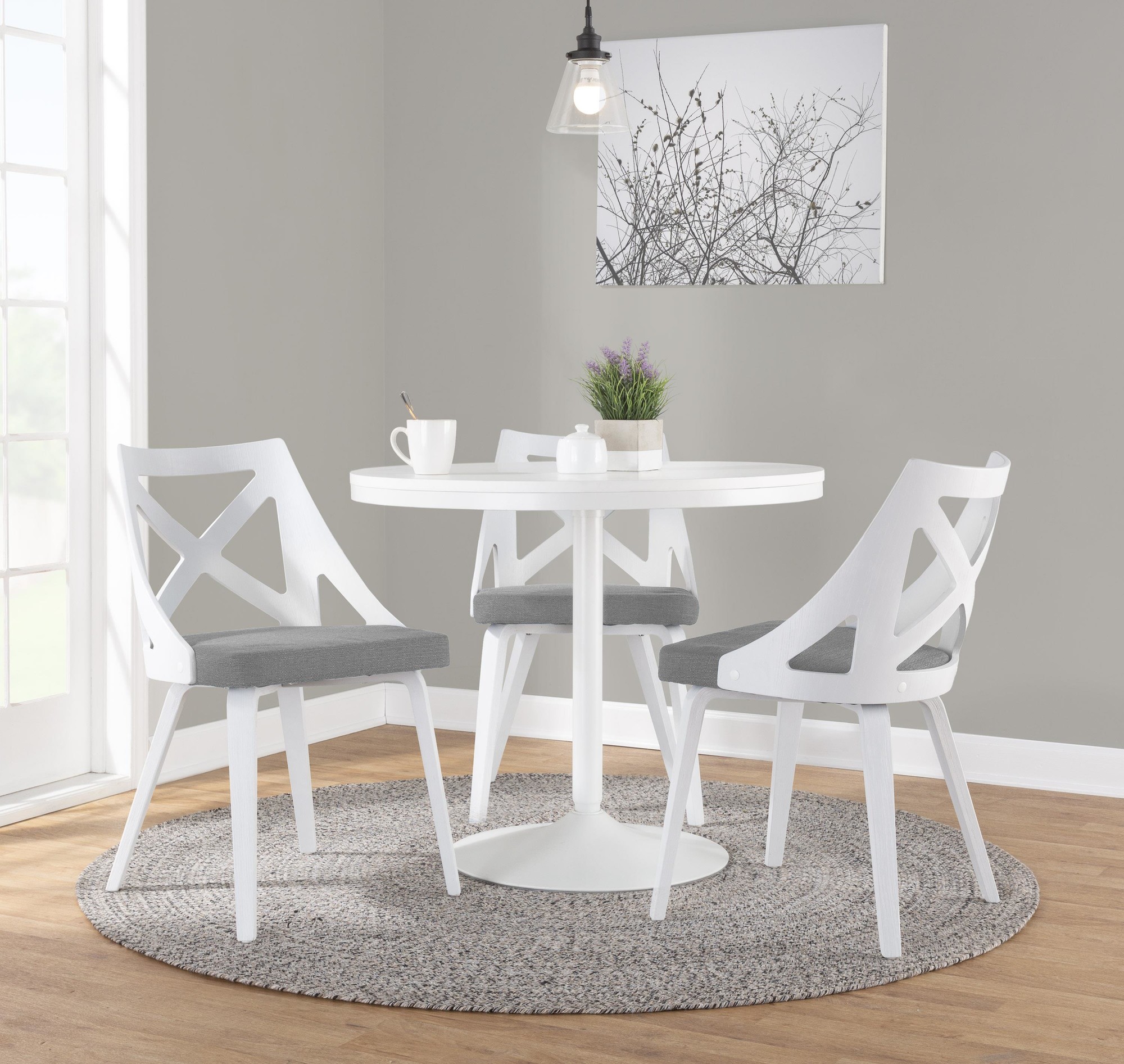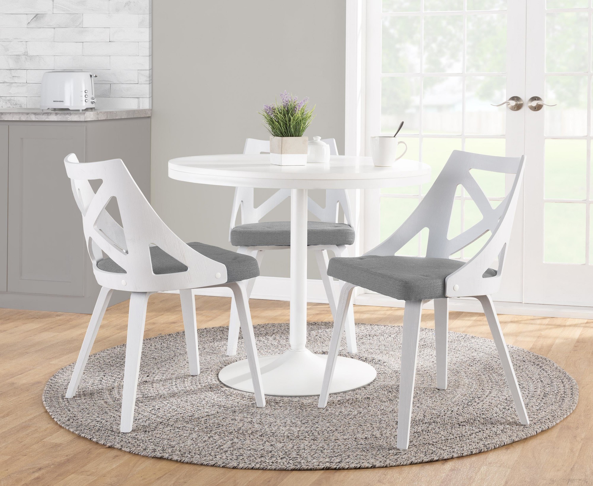 Charlotte White Wood Light Grey Farmhouse Chairs (Set of 2)
