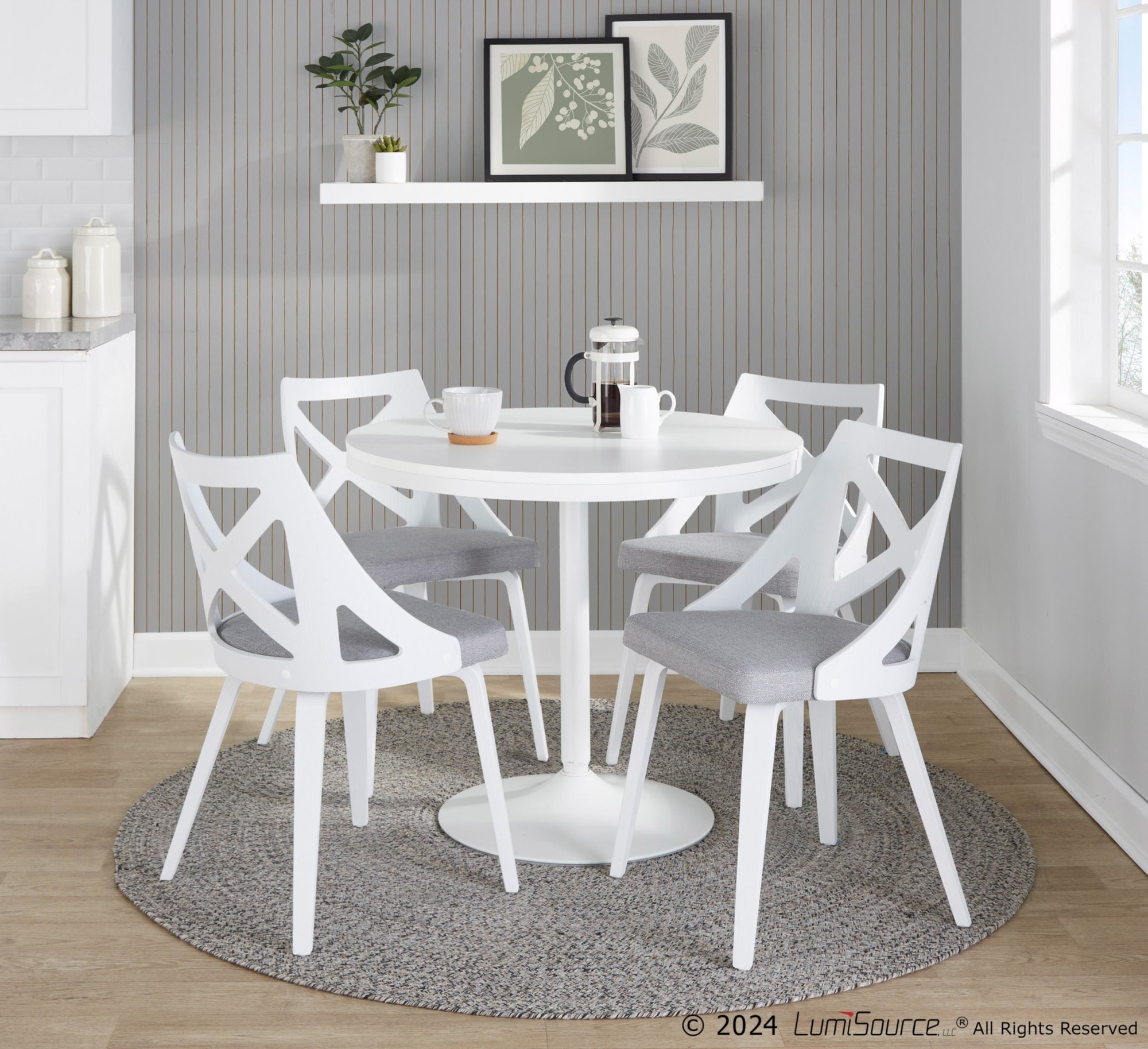 • Color: White Textured Wood, Light Grey Fabric