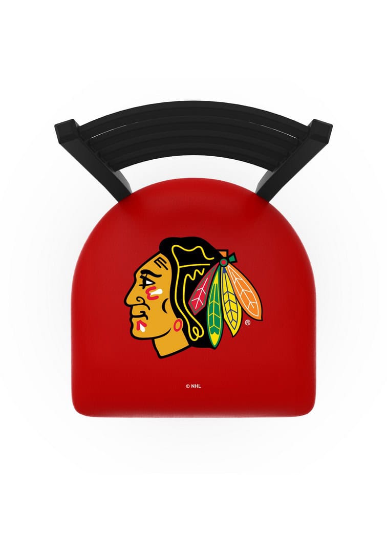 The Chicago Blackhawks 18-Inch Stationary Bar Chair is a must-have for any sports enthusiast looking to showcase their team spirit in style. Designed with a sophisticated ladder-back style, this chair combines comfort and elegance, making it a perfect addition to your bar, game room, or man cave. Featuring a state-of-the-art printing process, the chair’s logo is sharp, crisp, and clear, ensuring a high-quality reproduction that stands out. Built to last, the chair boasts a durable steel frame with a chip-resistant powder-coated finish and a plush, dense foam cushion for maximum support and comfort.