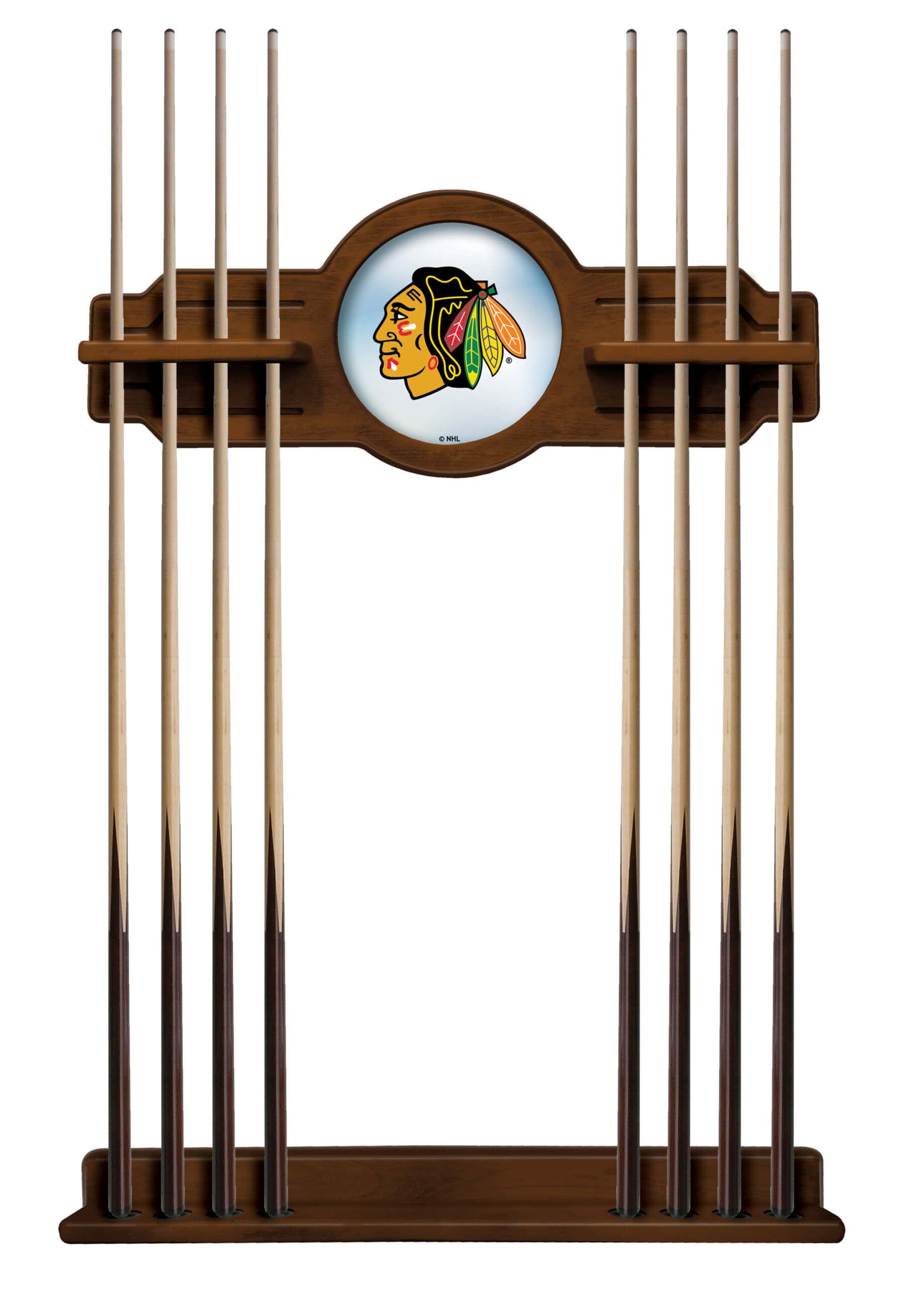 Elevate your game room with this premium cue rack featuring an authentic Chicago Blackhawks logo. Crafted with exceptional attention to detail, this high-quality wood rack provides a stylish and functional solution for storing and displaying your pool cues. Designed to securely hold up to 8 cue sticks, this rack combines elegant design with practical storage features.