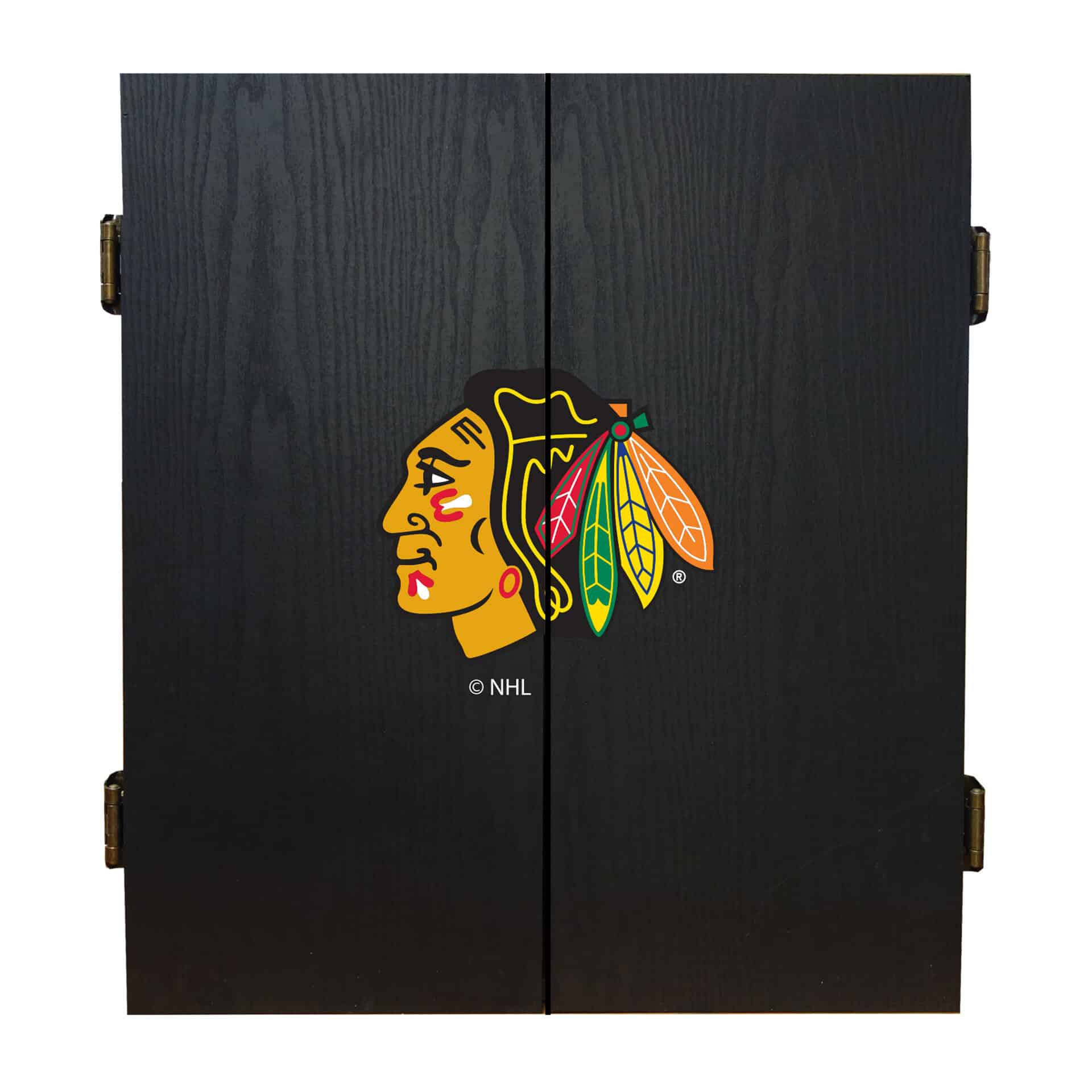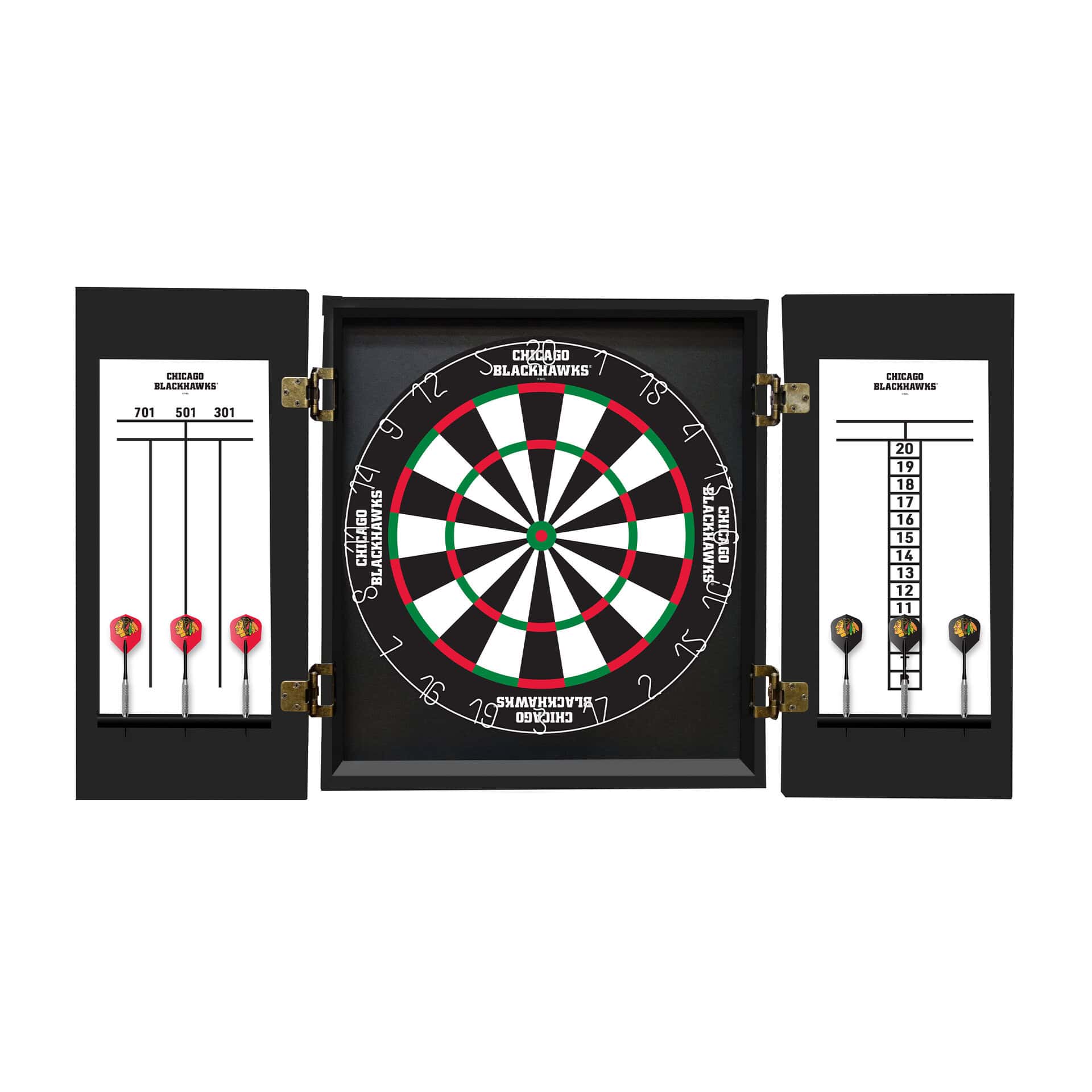 The Fan’s Choice Chicago Blackhawks Dartboard Set is the perfect addition to any fan’s collection. Featuring your favorite team’s logo, this set includes a premium 18-inch tournament-sized self-healing bristle dartboard. Self-healing bristle dartboards offer exceptional durability, as the holes close up after each dart is removed. This hanging dartboard cabinet adds a touch of team spirit to your fan cave or any gathering space. It’s easy to assemble; the cabinet comes preassembled and ready to hang. Simply secure the dartboard, and you’re ready for hours of entertainment!