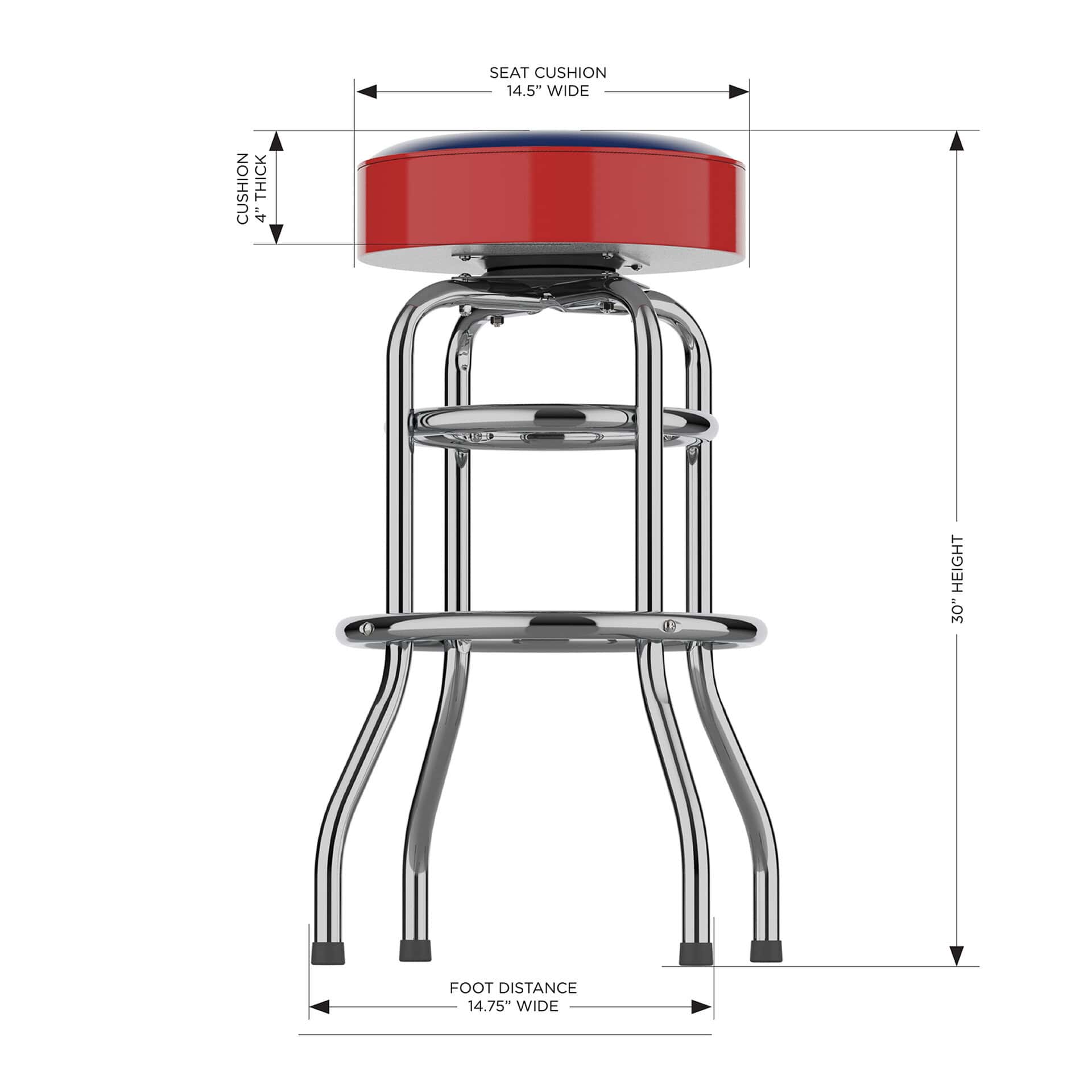 Get ready to show off your team pride with this American-made bar stool! Built for both comfort and durability, this stool is perfect for your fan cave, bar area, or game room. Featuring vibrant team colors and a scratch-resistant design, it’s sure to be a conversation starter for years to come. Enjoy superior quality and showcase your team loyalty with this sturdy and stylish bar stool.