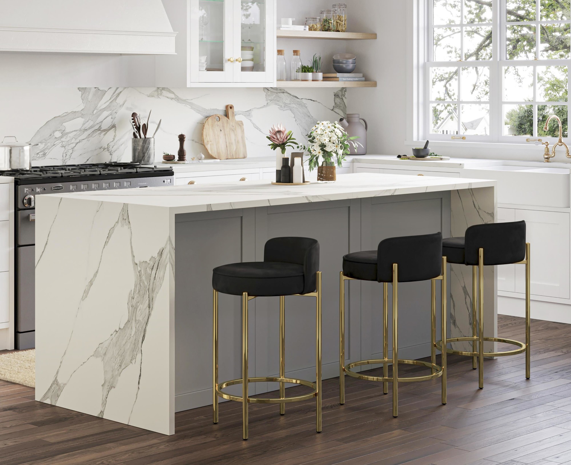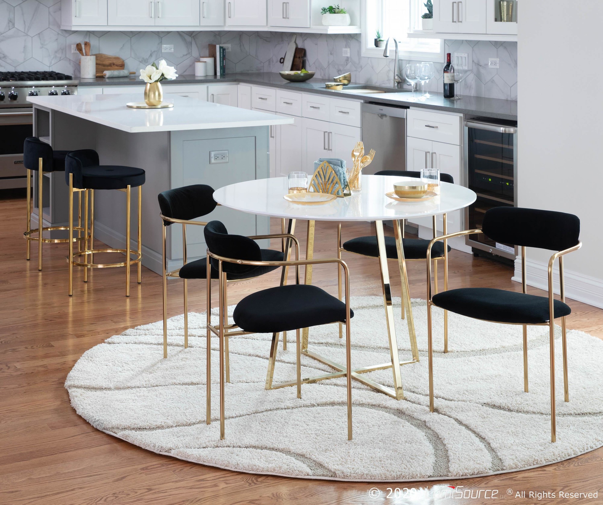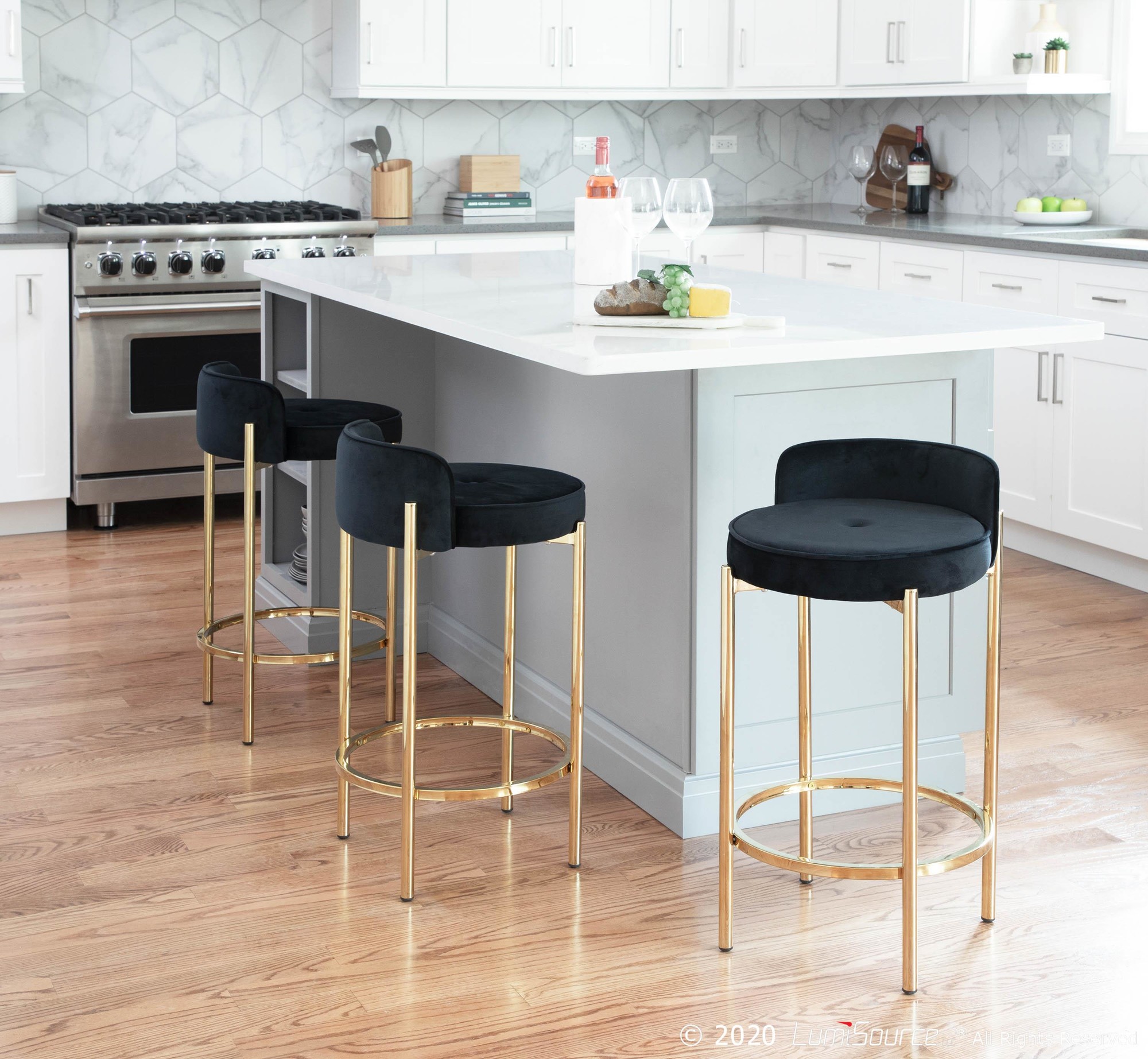 The Chloe Gold and Black Velvet Contemporary Counter Stool will add a dash of glam to your dining space! This stool isn’t just seating; it’s a statement piece that combines comfort and high style.