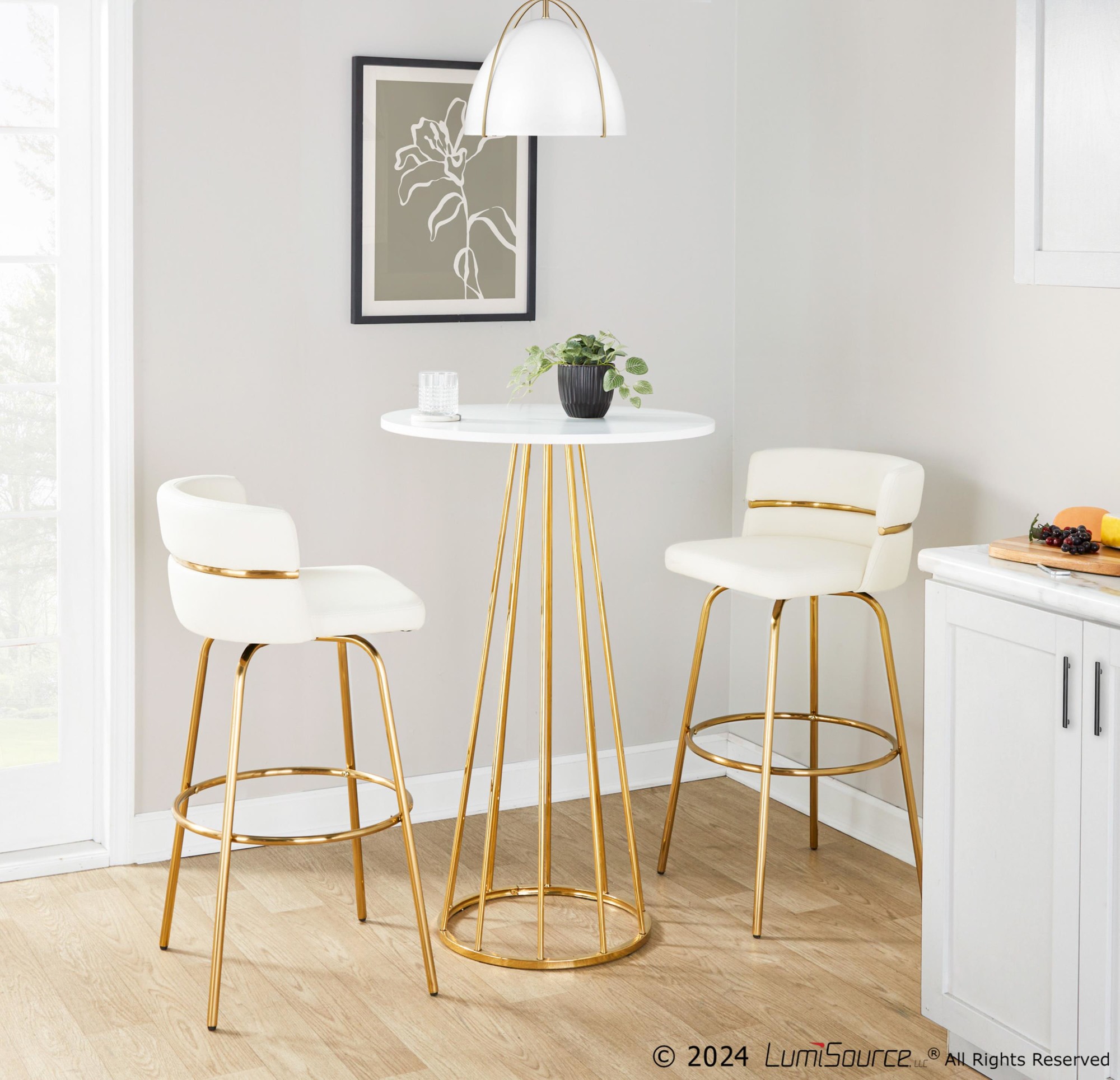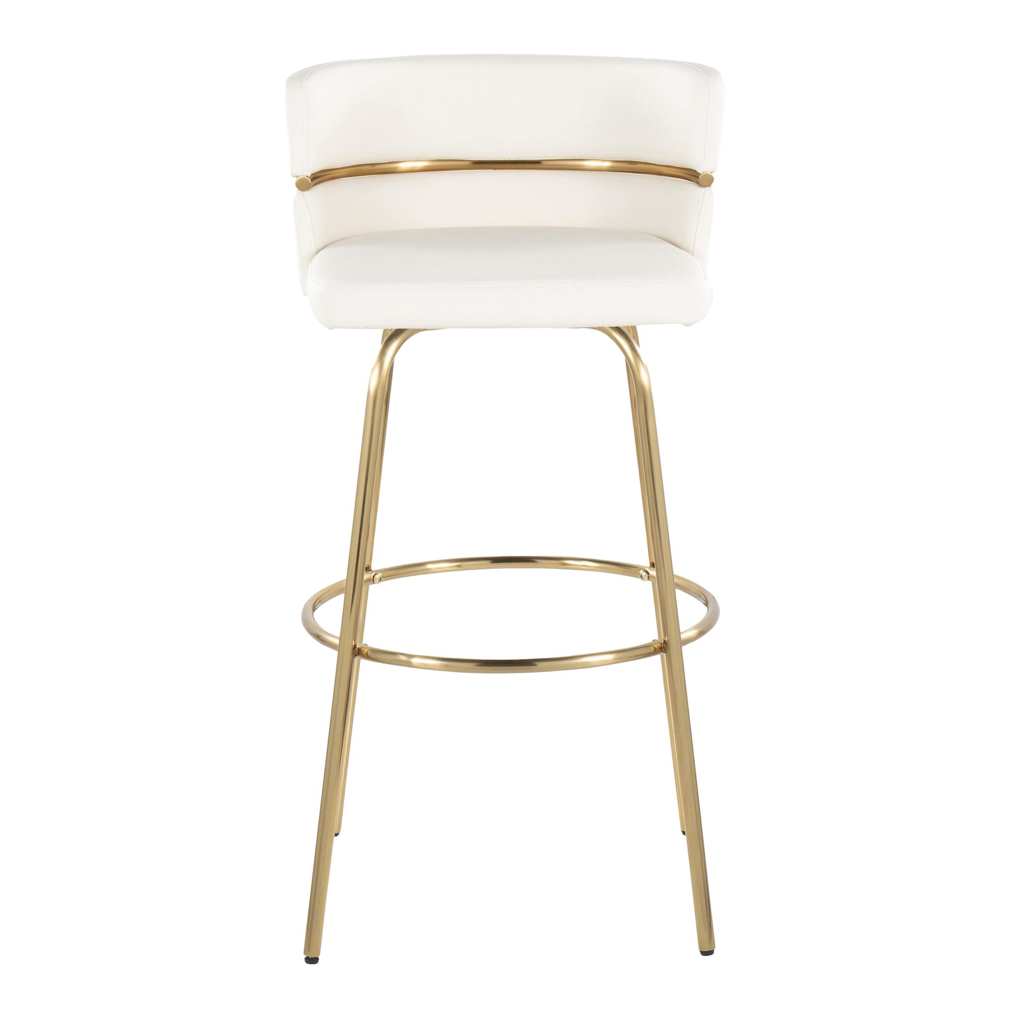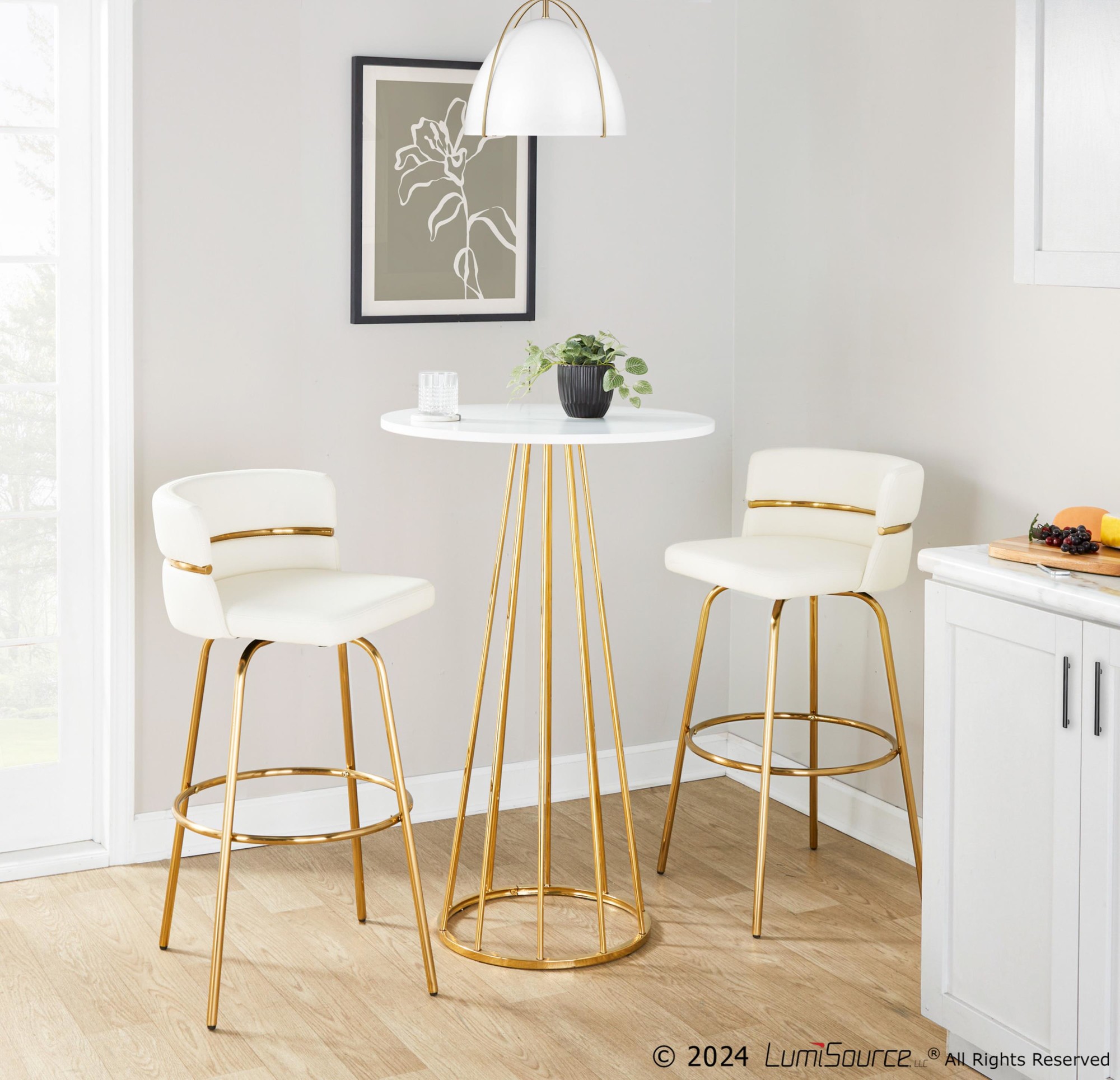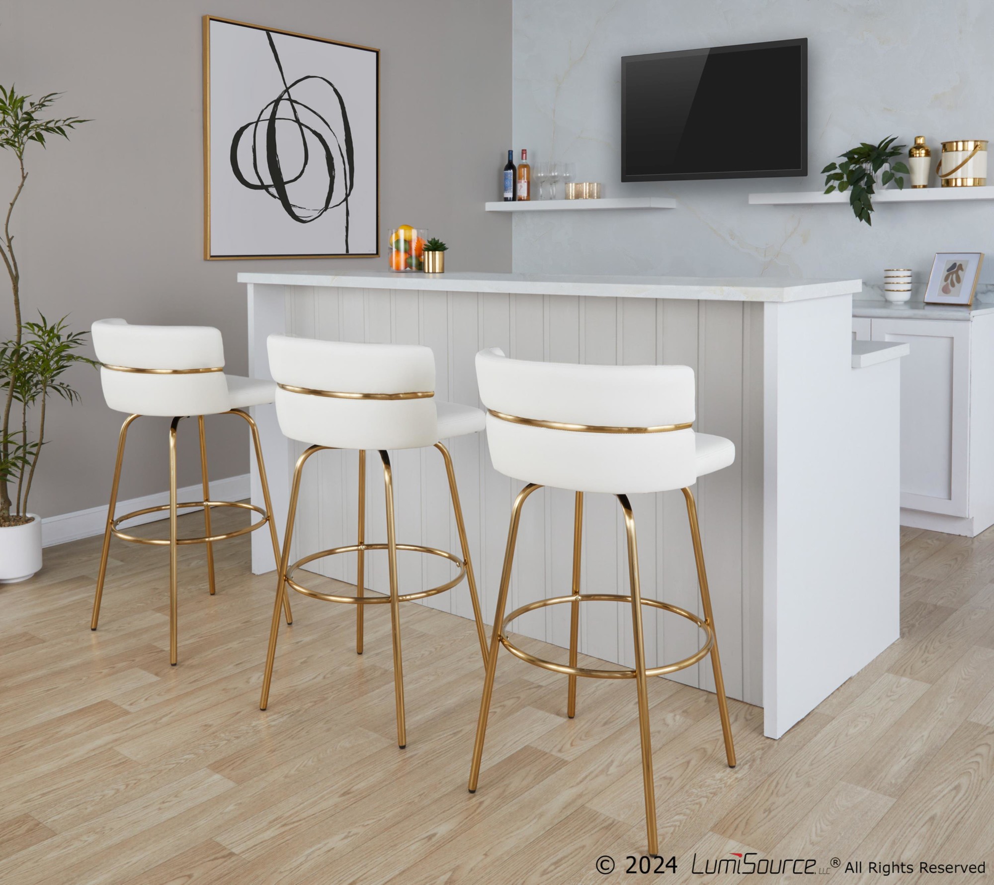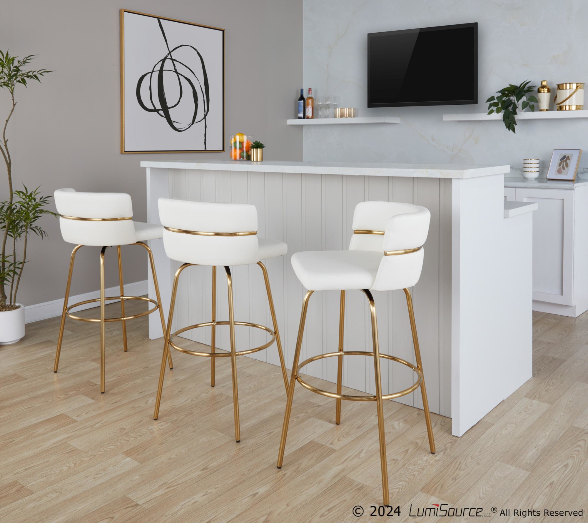 The Cinch Barstools offer a chic, modern design that will enhance any space. These barstools feature a unique metal accent bar design, a comfortably padded, upholstered seat, and a convenient 360-degree swivel function. Their stylish and practical design makes them a perfect addition to your home.