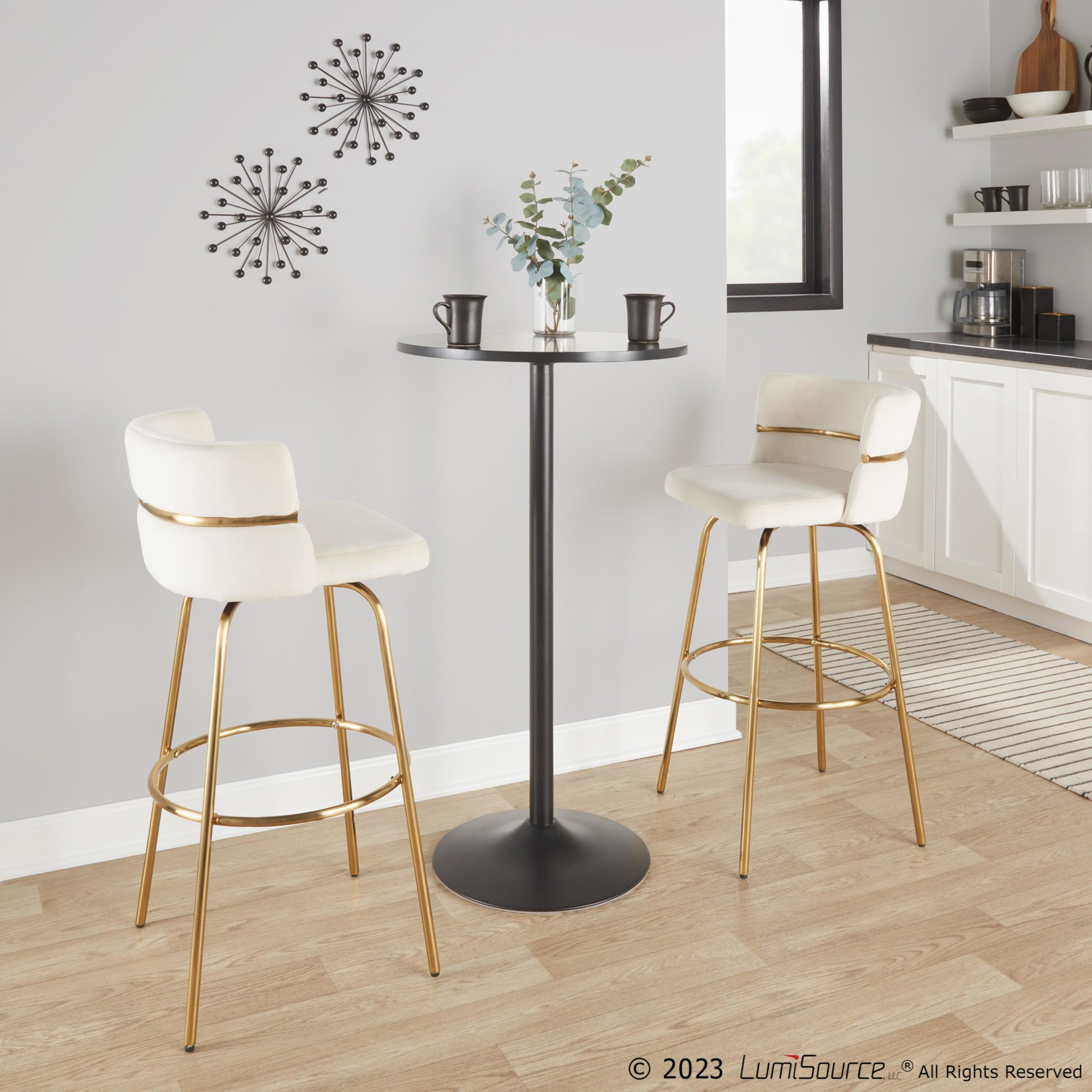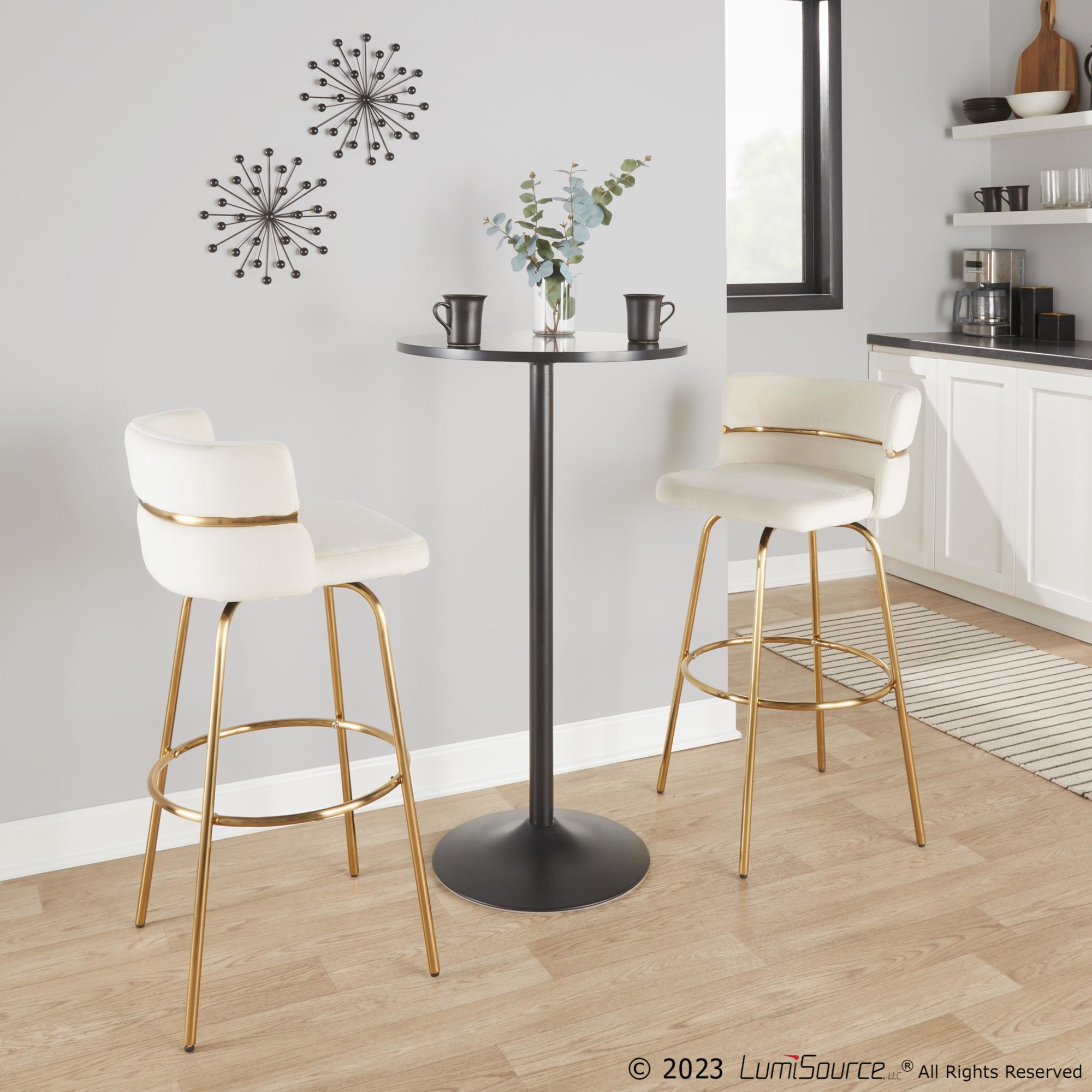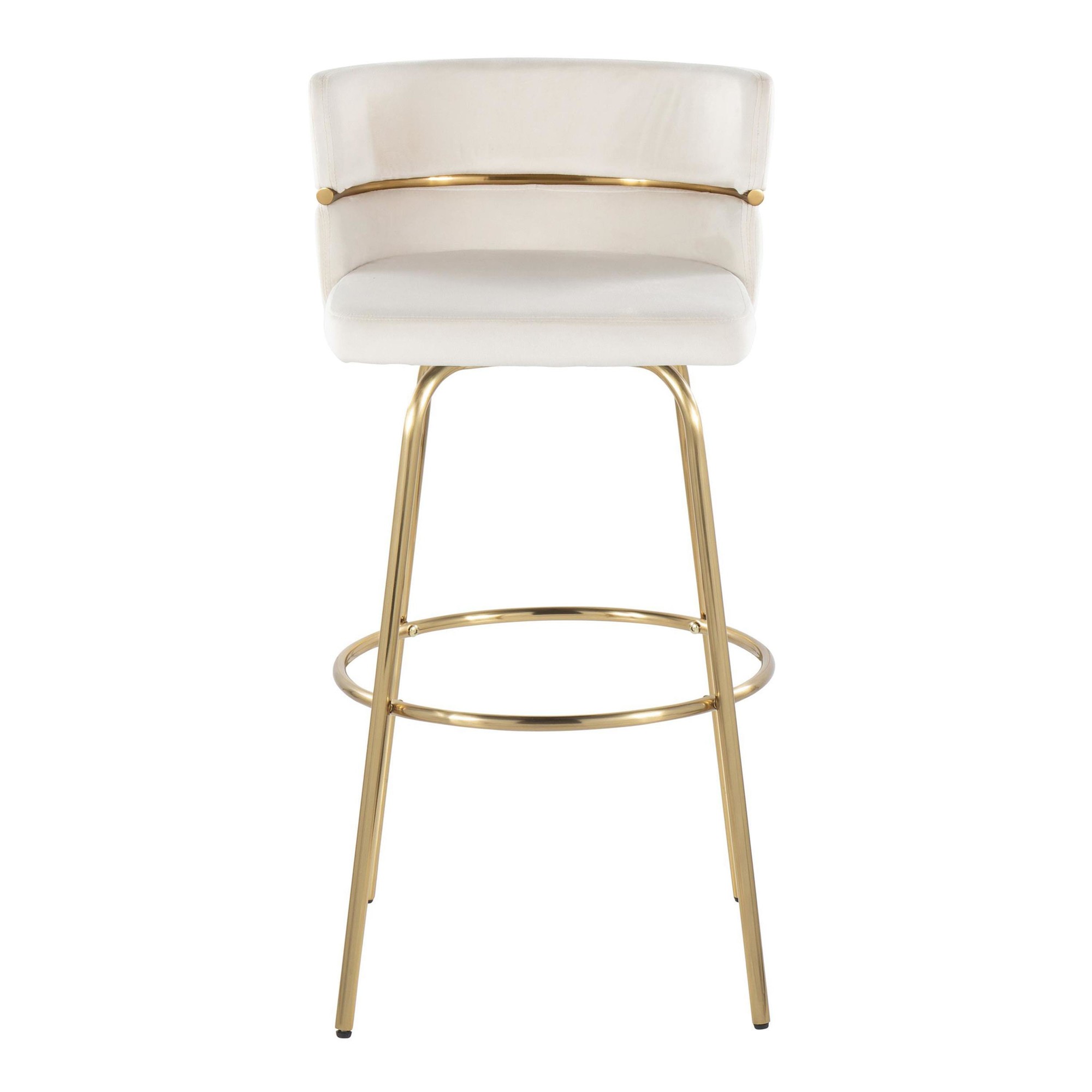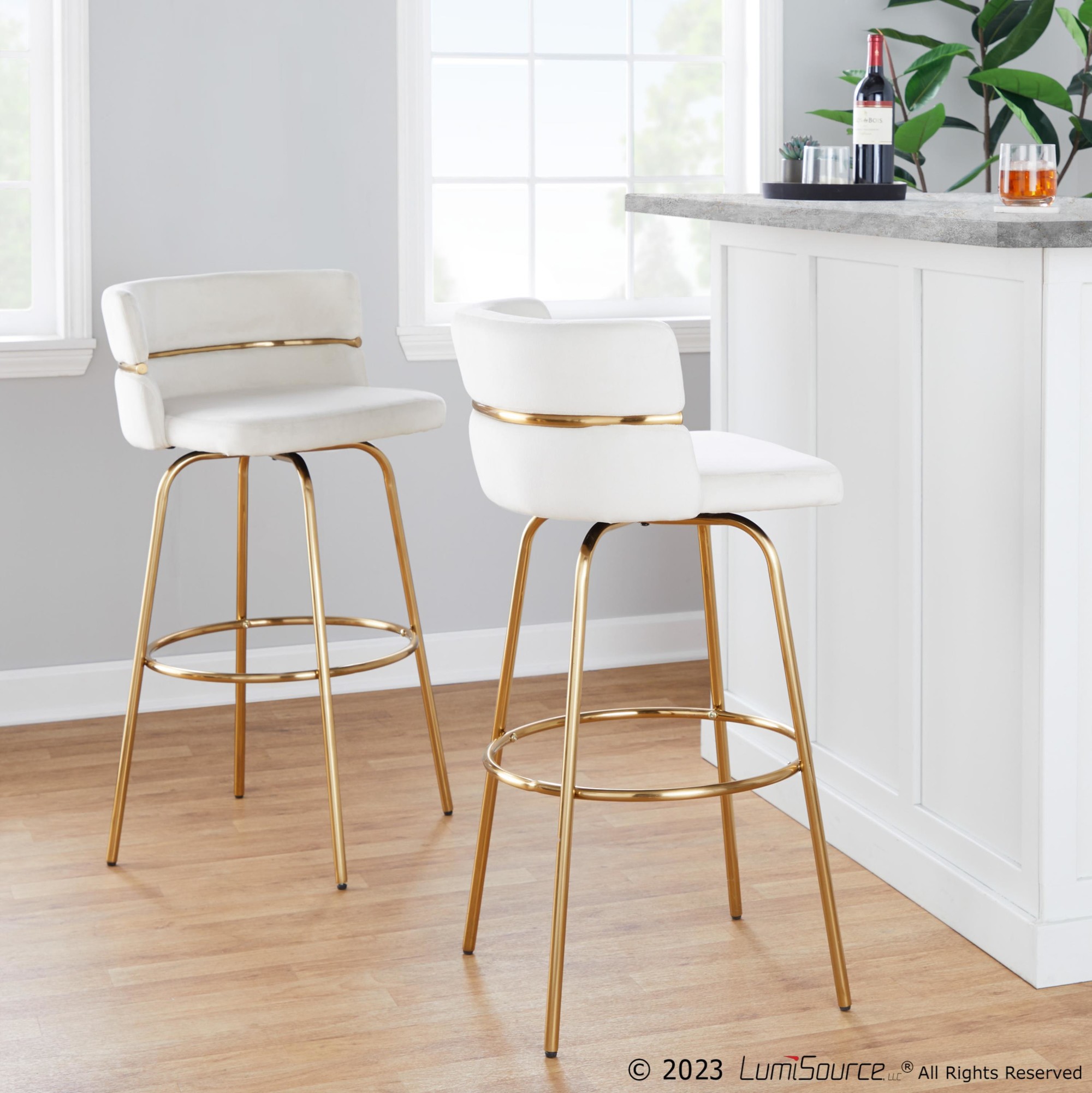 The Cinch Barstool brings chic, modern style to any space. Featuring a unique metal accent bar design and a padded, upholstered swivel seat, this barstool is both stylish and practical. Choose the color option that best complements your decor. Sold in pairs.