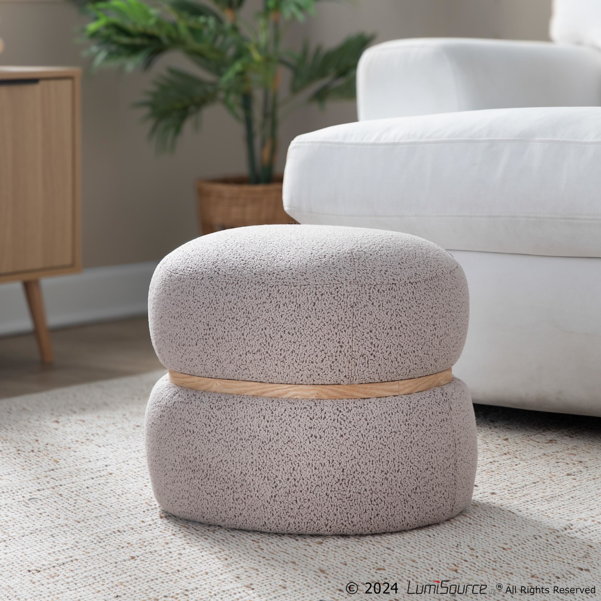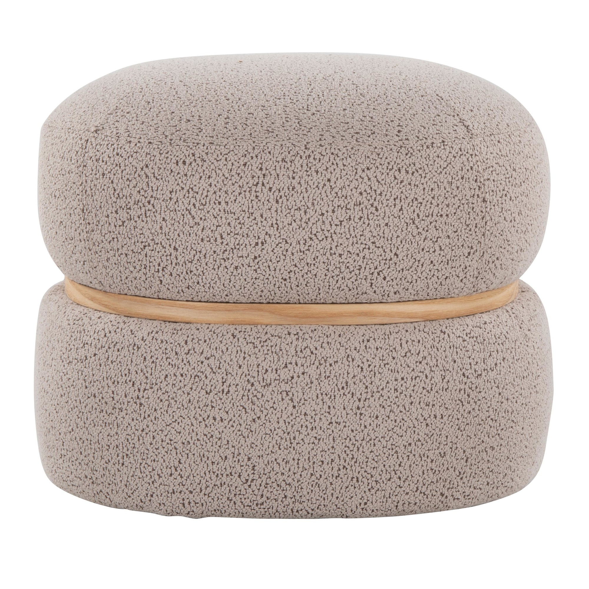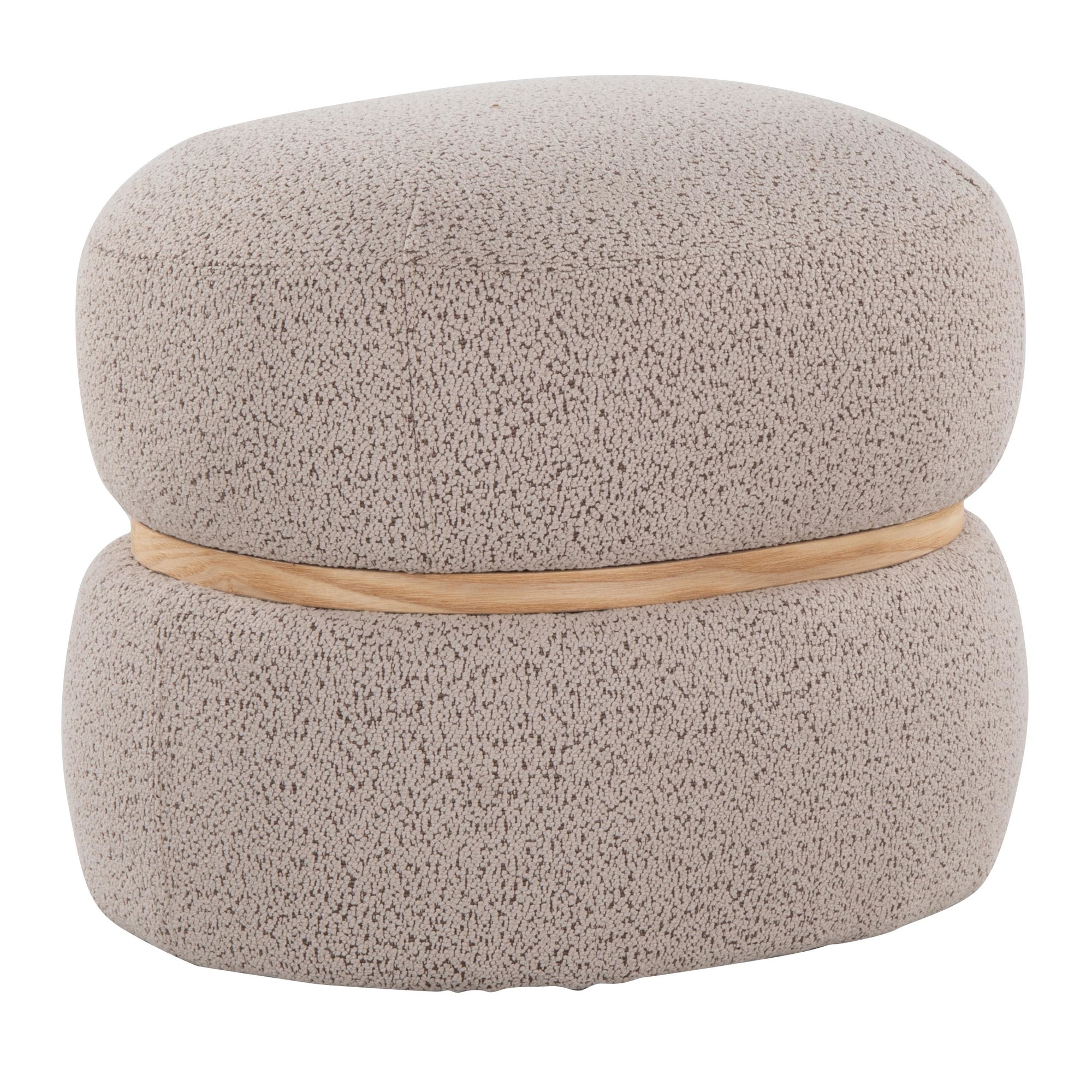 Get cozy with the Cinch Pouf Ottoman. Its stylish bouclé fabric and natural wood accent create a warm and inviting atmosphere in any room. Perfect for living rooms, bedrooms, or offices, this multi-purpose ottoman provides both comfort and contemporary style.