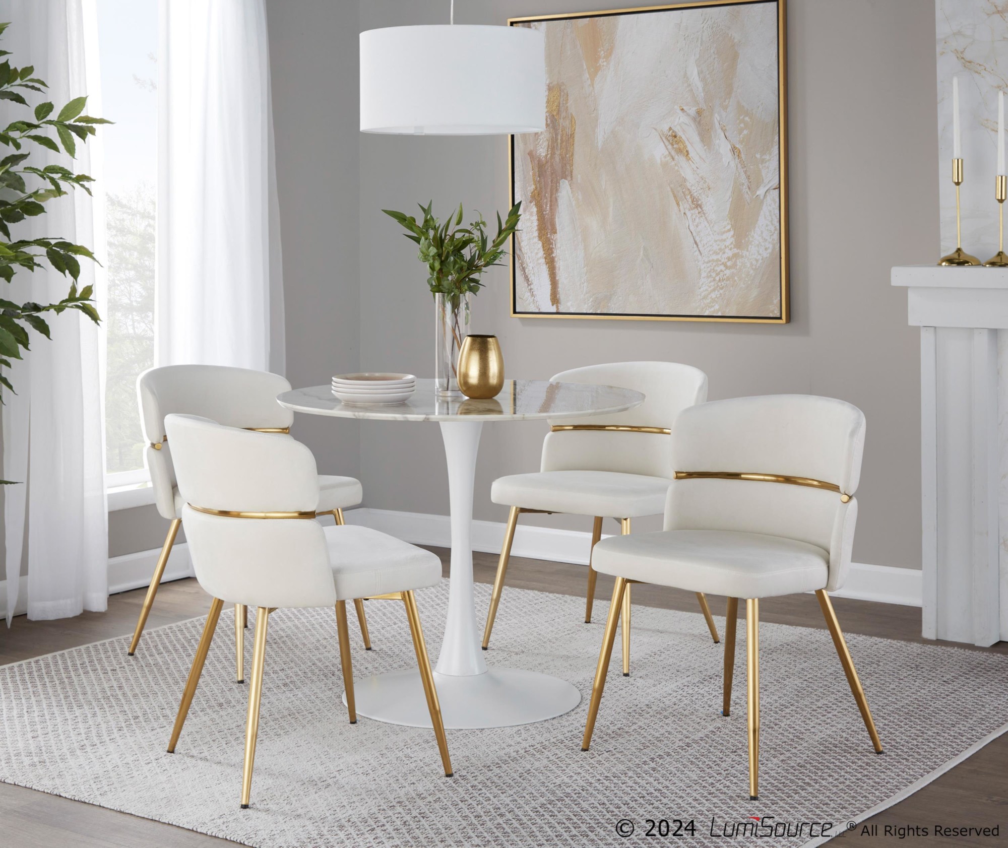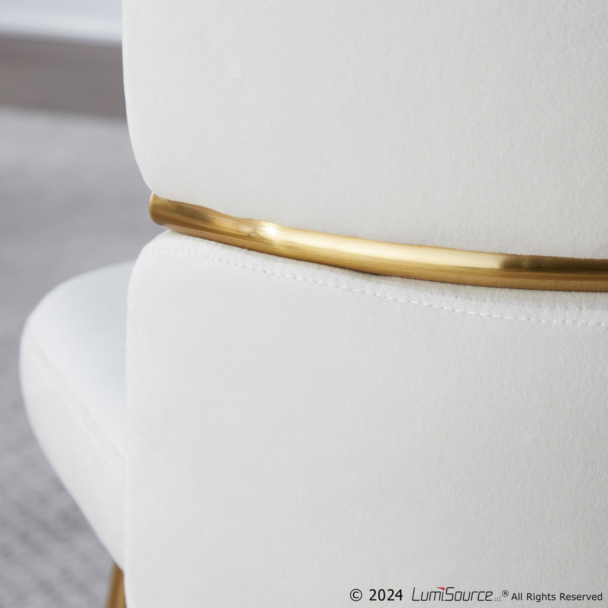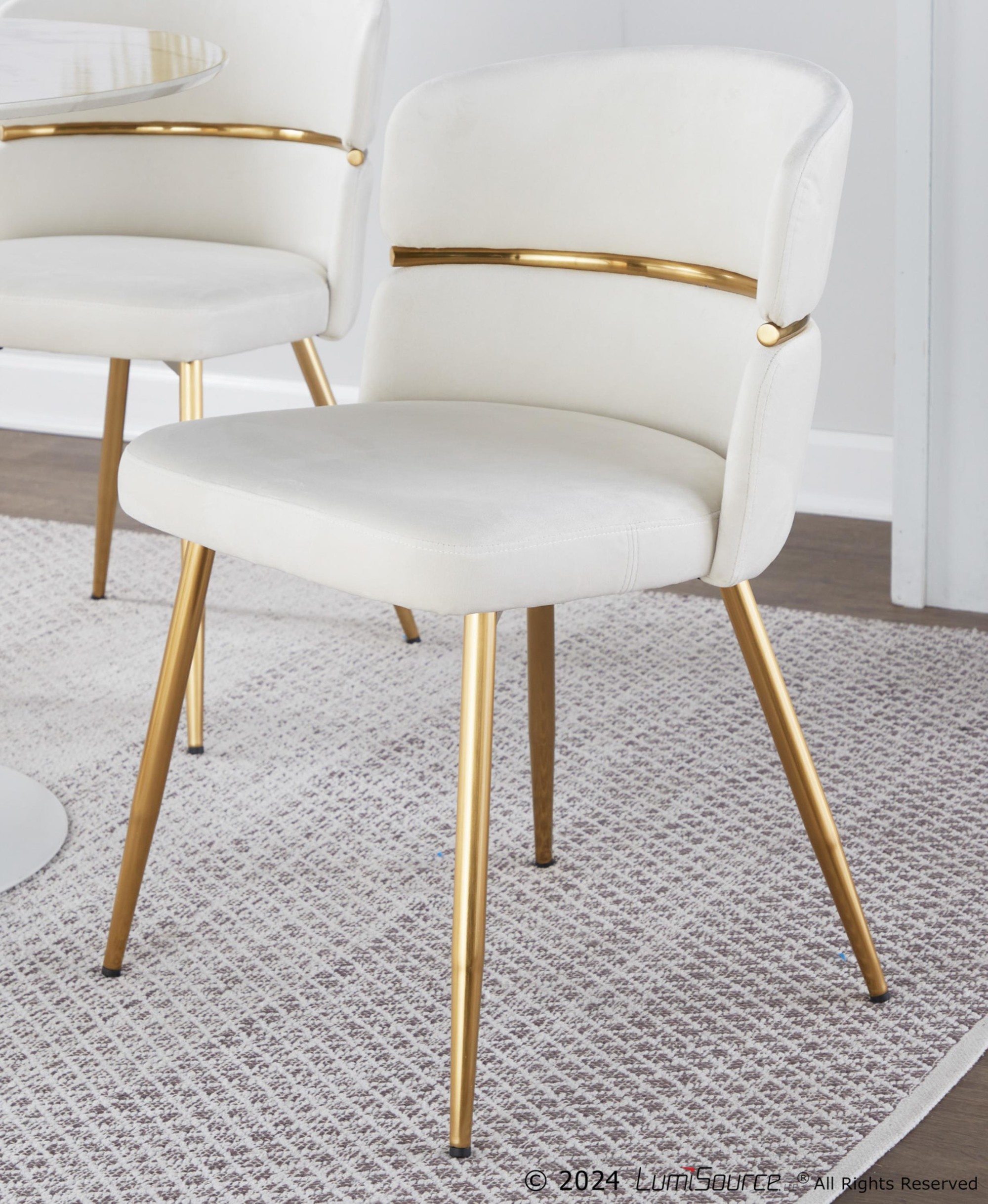 Elevate your dining experience with the Cinch Dining Chairs! These chairs seamlessly blend chic modern design with luxurious comfort, making them a standout addition to any dining space. With their stylish velvet upholstery, elegant gold metal accents, and sleek metal legs, these chairs exude glamor and sophistication.