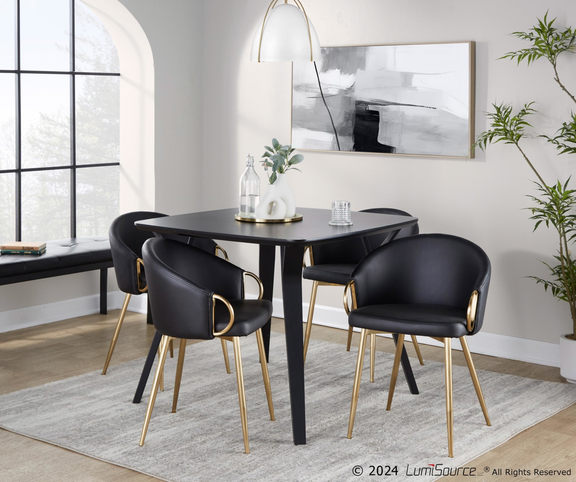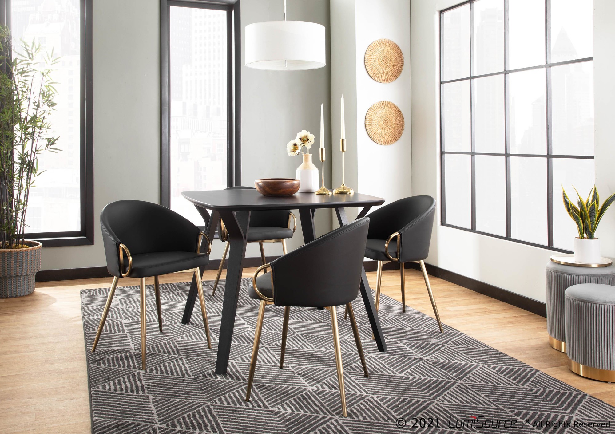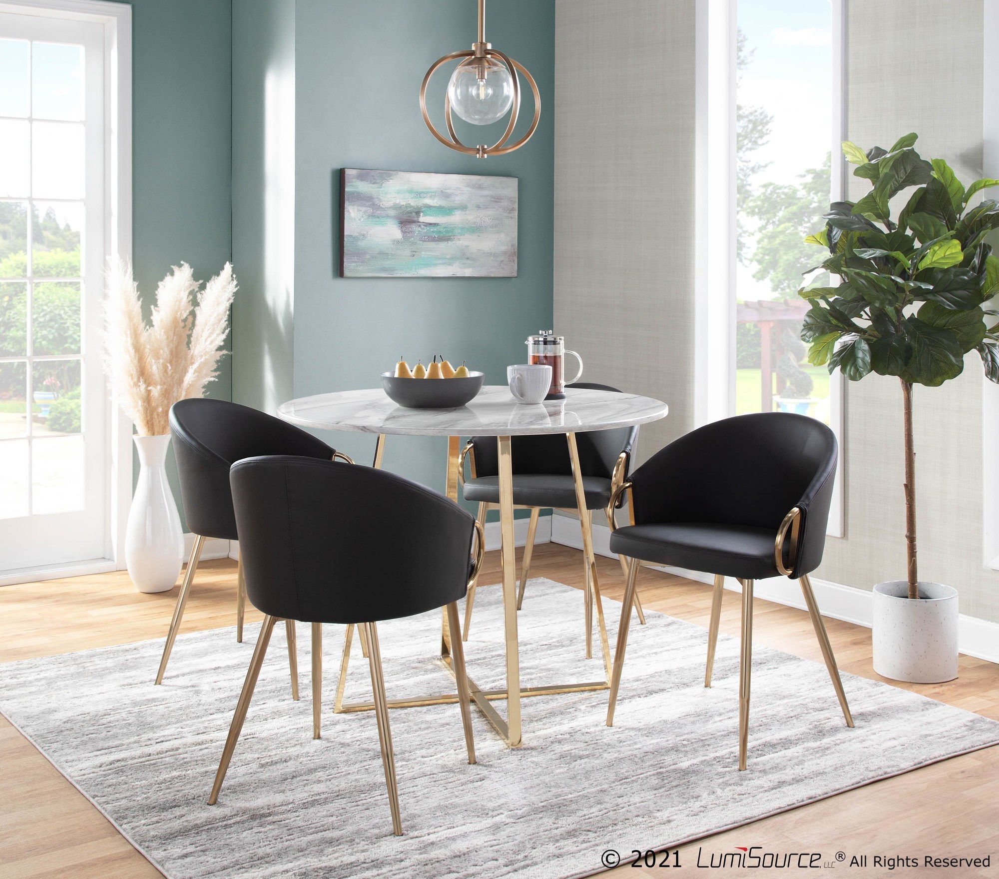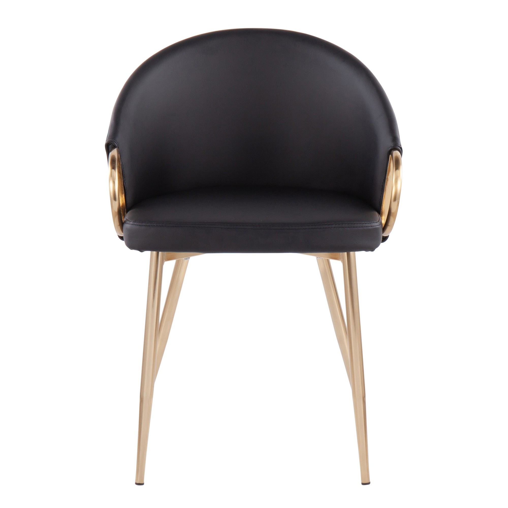 The Claire Accent Chair brings chic, modern style to any space. Its unique design features a rounded, low backrest and a sleek gold frame, making it a standout piece for your contemporary dining area or any room needing a touch of glam.