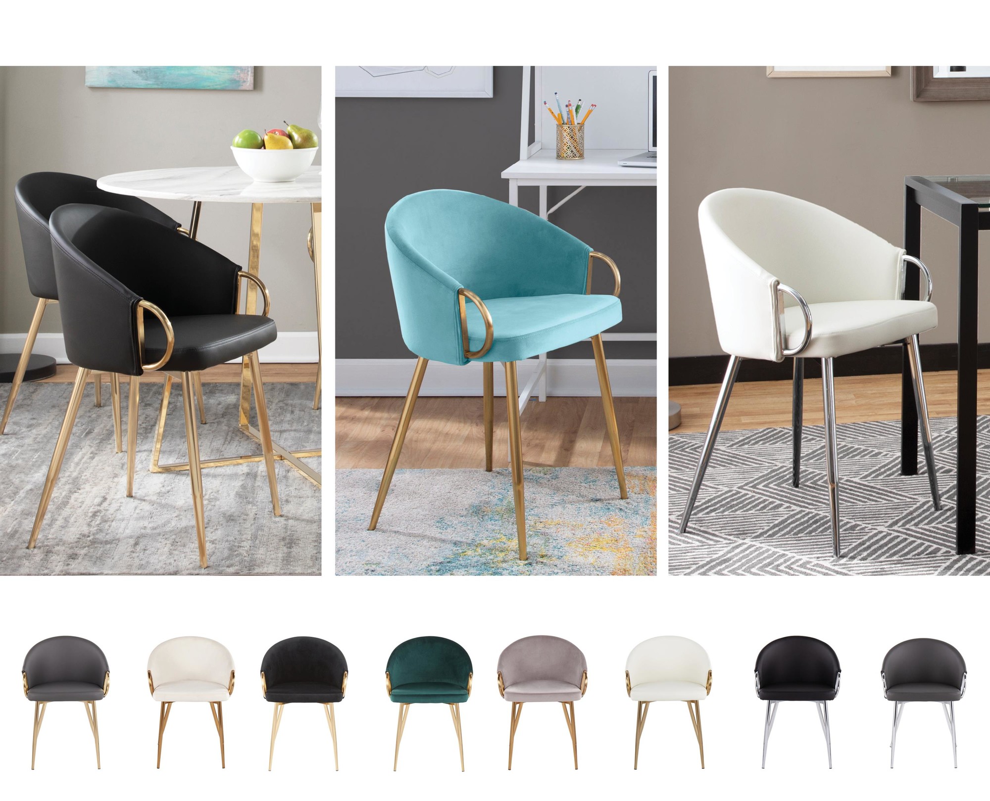 The Claire Dining Chairs offer a chic and modern aesthetic, perfect for elevating your dining space. With a rounded, low backrest and a sleek frame, these chairs provide both style and comfort. The faux leather upholstery adds a touch of luxury, making these chairs a sophisticated addition to any contemporary dining area. Sold in a set of two.