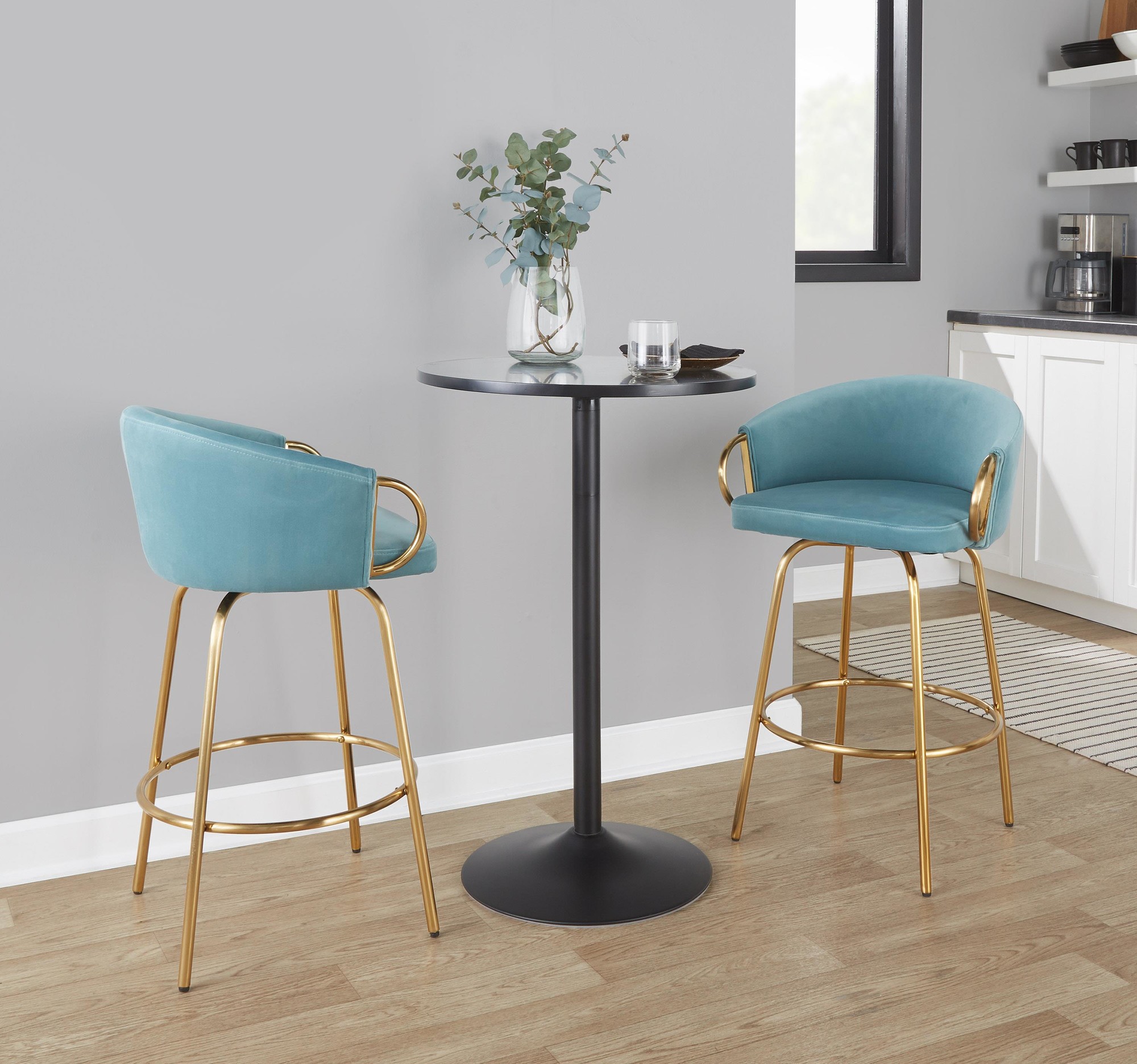 Claire Gold Steel Light Blue Velvet Counter Stool 26 (Set of 2)