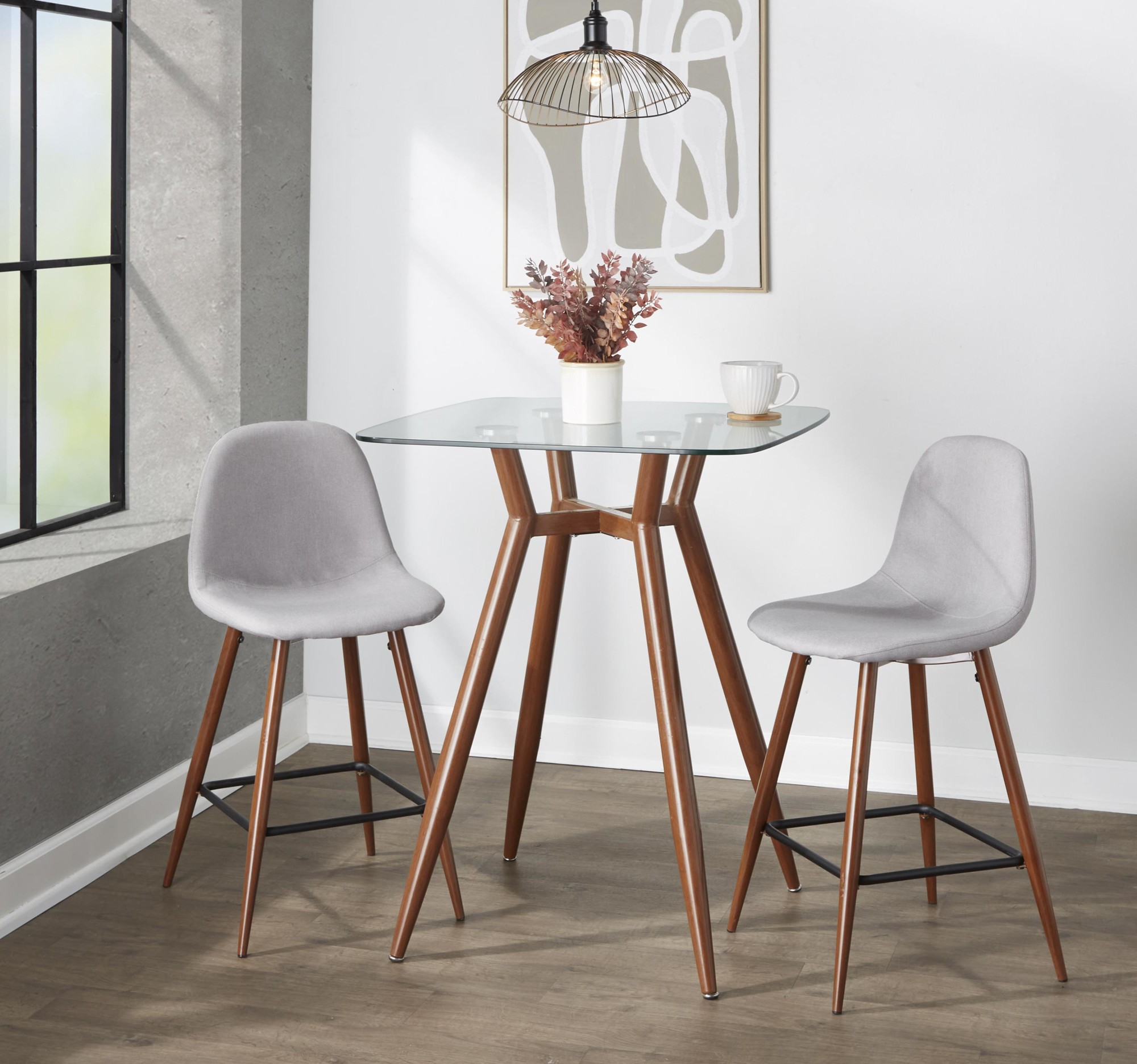 The Clara Counter Table is a sleek and simple addition to your space. Its geometric metal base provides sturdy support, while the clear tempered glass top or walnut wood top offers a stylish surface for dining or drinks. Available with different leg finishes, you can easily find the perfect match for your decor.