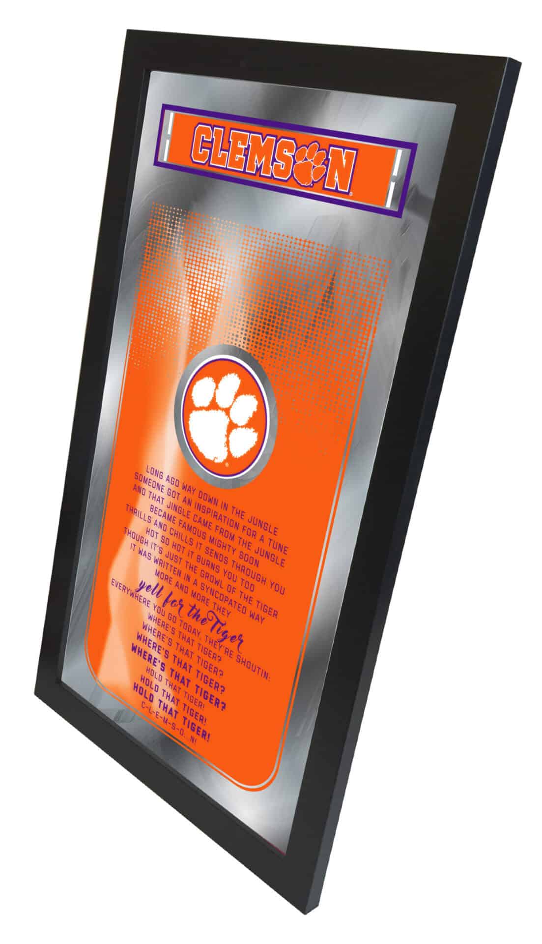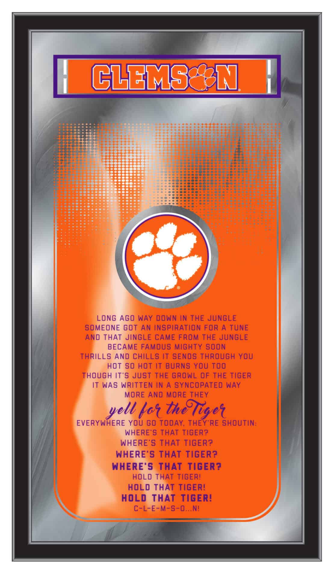 The perfect way to show your school pride, our Fight Song Mirror displays your school’s logo and the verses that get them fired up on game day, with a style that fits any setting. With its simple but elegant design, the colors burst through the 1/8″ thick glass and are highlighted by the mirrored accents. Framed with a black, 1 1/4″ wrapped wood frame with saw tooth hangers, this 26″(H) x 15″(W) mirror is ideal for your office, garage, or any room of the house. Whether purchasing as a gift for a recent grad, sports super fan, or for yourself, you can take satisfaction knowing you’re buying a mirror that is proudly made in the USA.