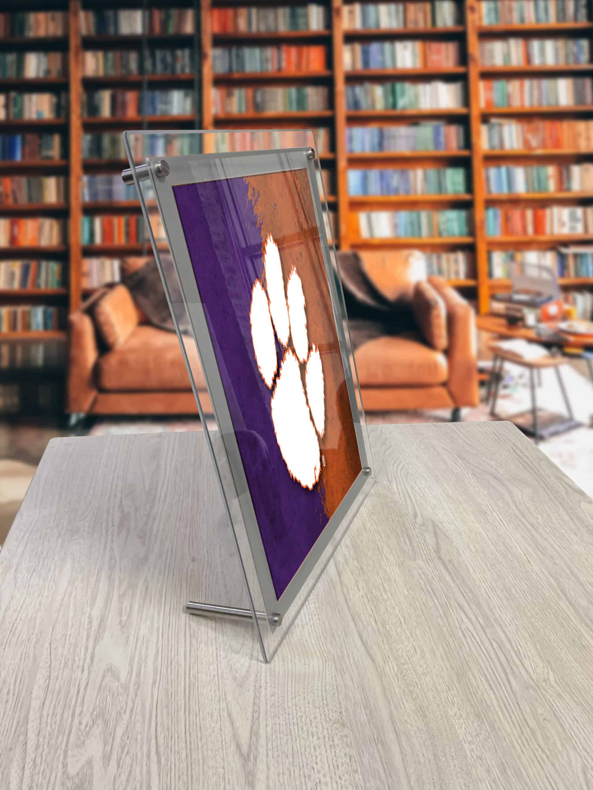 - Mounting Options: Includes hardware for wall mounting (1″ stand-offs) or desktop display (3 3/4″ foot).