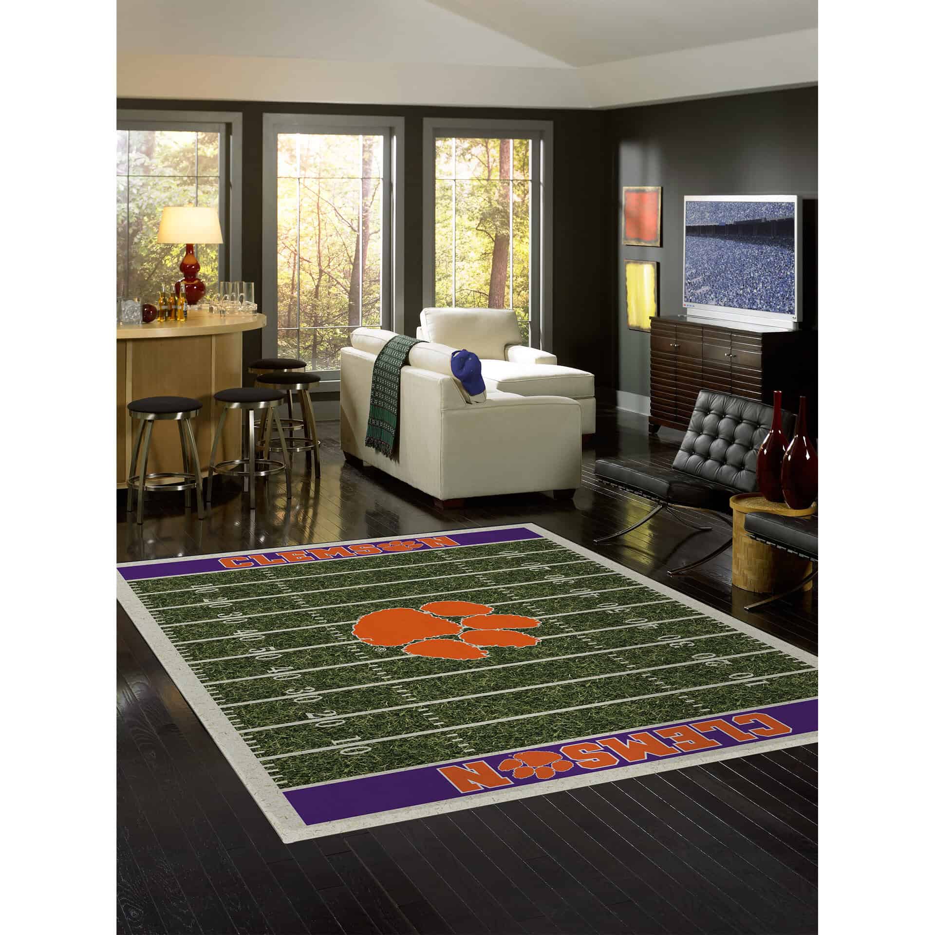 Show your team spirit with this officially licensed Clemson University area rug! Styled to resemble a football field, this rug is the perfect addition to your fan cave or game room. Made with high-quality materials, it offers durability, fade resistance, and easy care. Enjoy a rug that showcases your team pride while providing comfort and long-lasting performance.