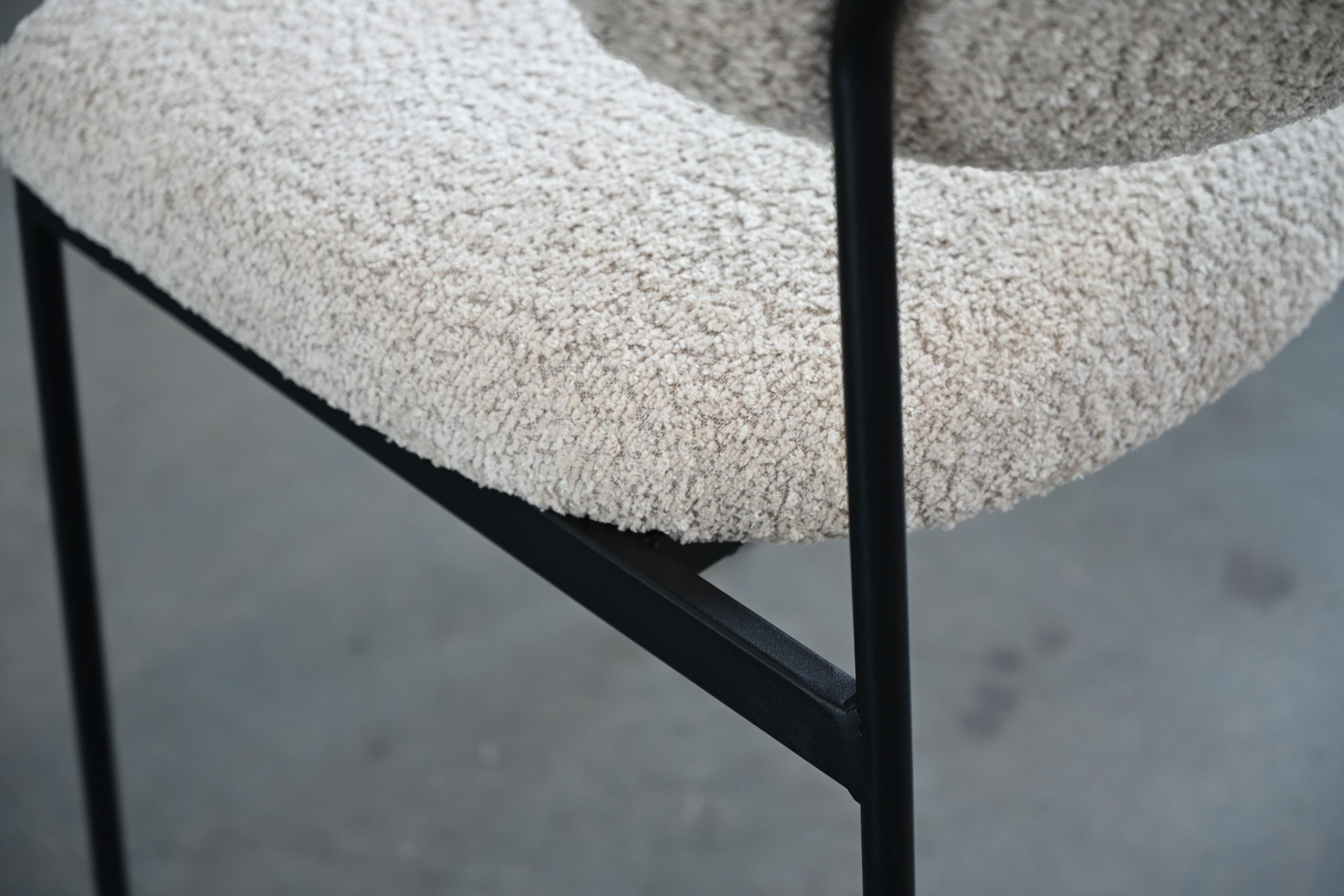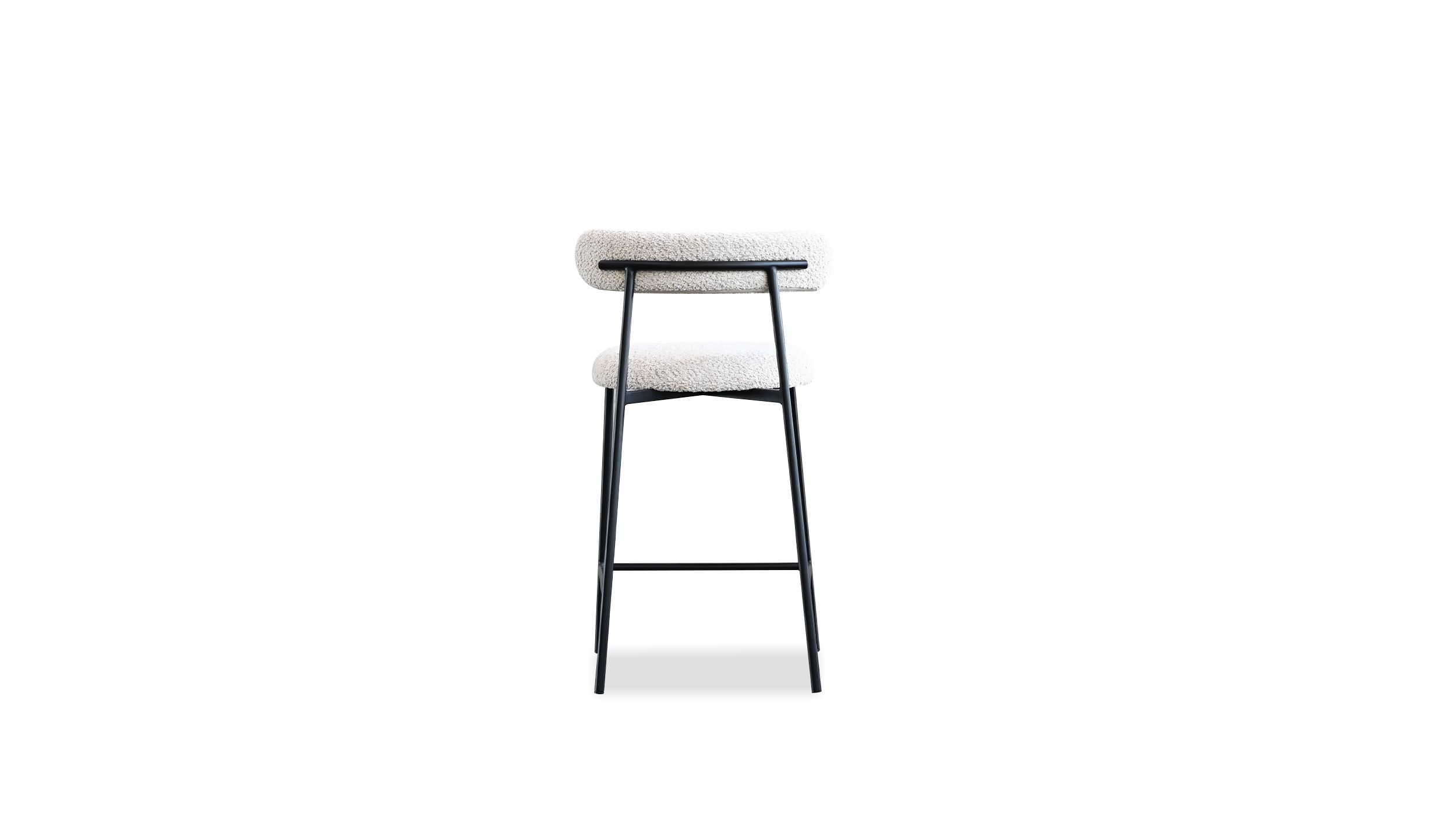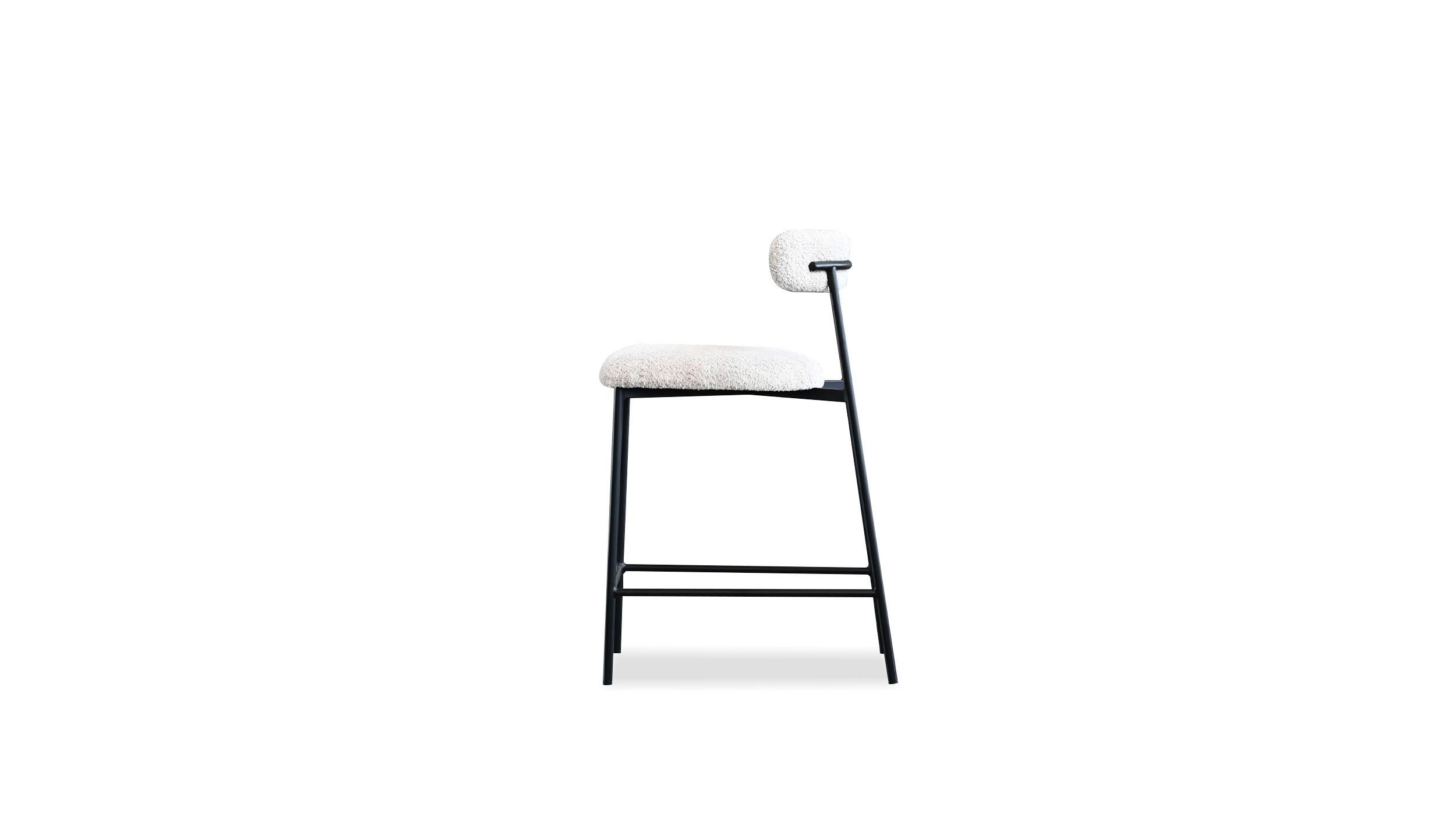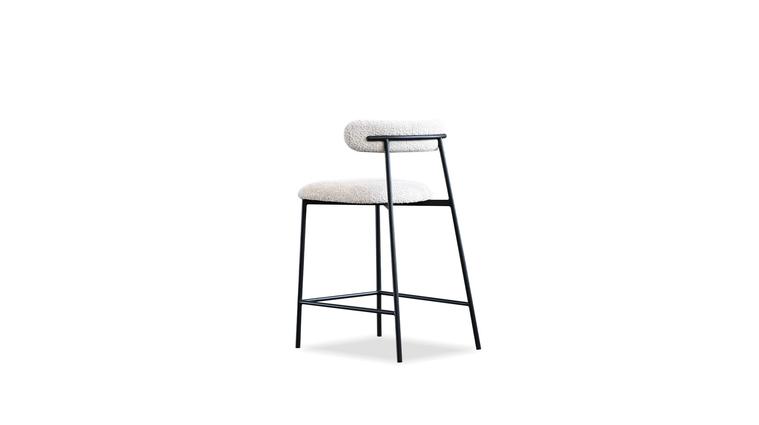 The CLEO Counter Stool provides stylish and comfortable seating. Its sleek black metal frame and beige fabric upholstery make it a versatile addition to any space.