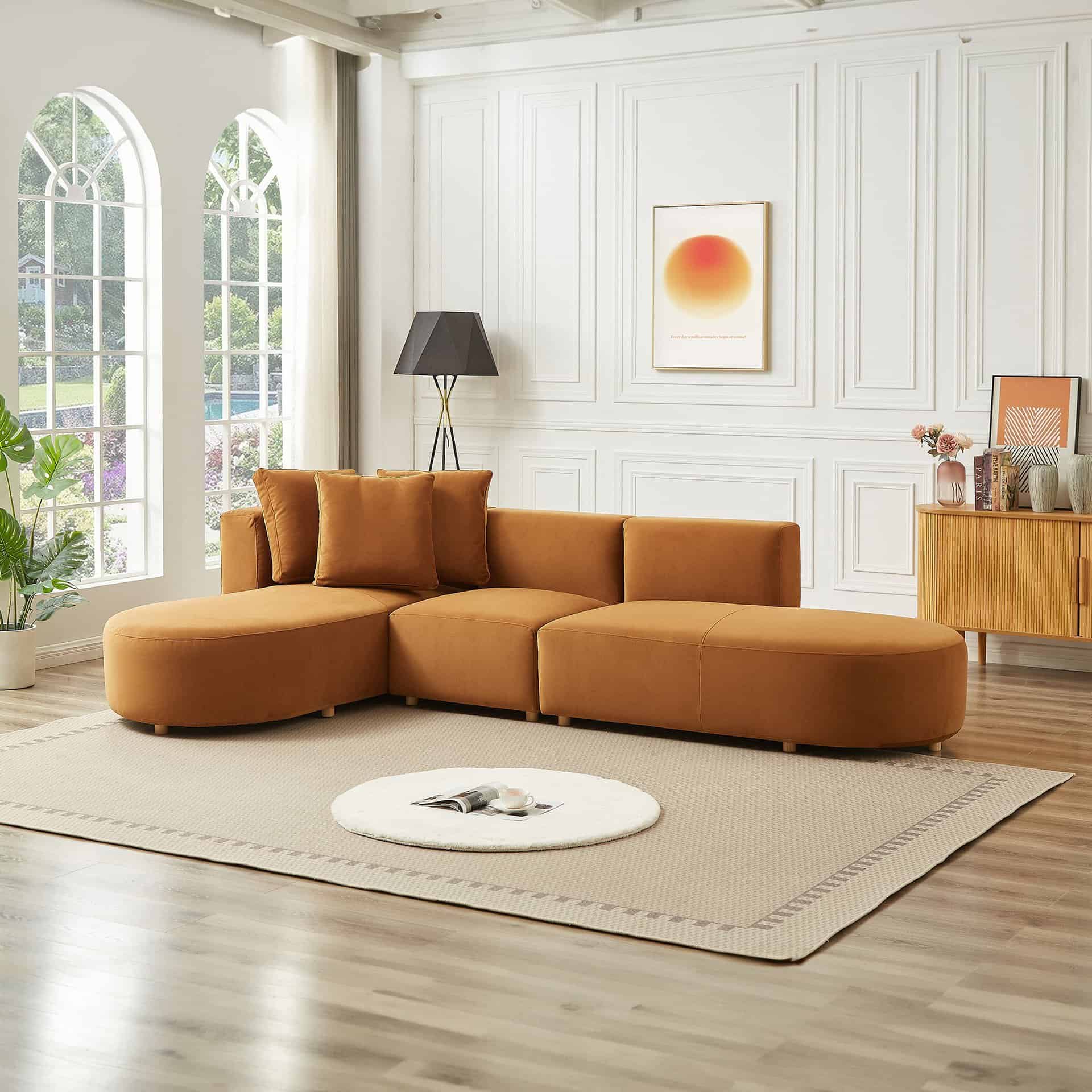 Introduce mid-century style to your living space with the Cognac Velvet Left-Facing Mid-Century Sectional Sofa with Tapered Legs. Enjoy supreme comfort with high-density foam padding on the seat, armrests, and back. This sectional is perfect for relaxation and optimizing smaller spaces while adding an impeccable touch of chic design. The sleek craftsmanship anchors any aesthetic, from traditional to mid-century modern. Embrace vintage flair combined with modern living through its light, fresh design, tapered legs, and luxurious velvet upholstery. Complete your living room decor with this stylish and functional seating option, crafted with a solid wood base for durability.