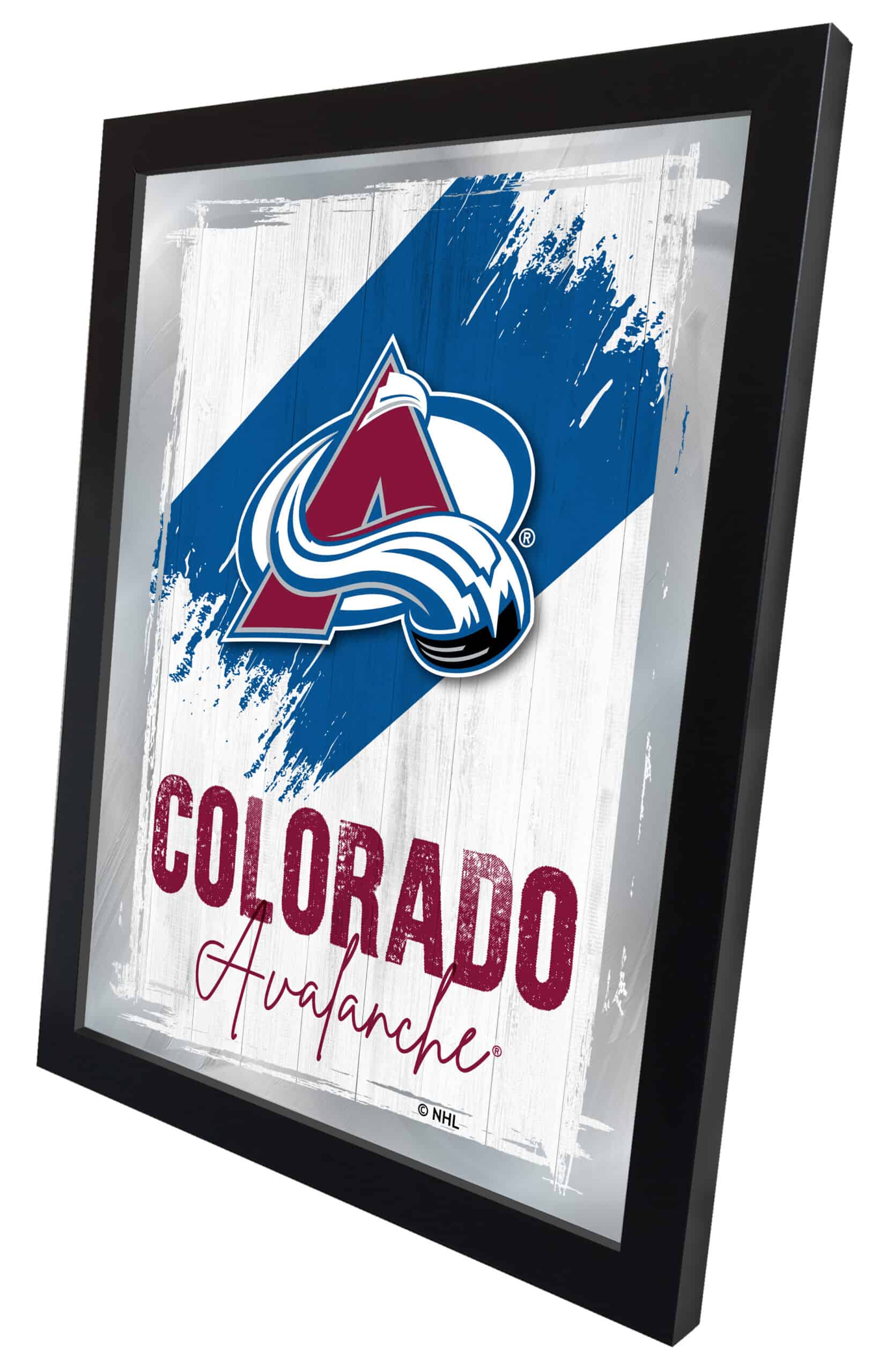 Show your team pride with this Official Licensed NHL Logo Mirror. With its simple yet elegant design, vibrant colors burst through the 1/8″ thick glass, beautifully highlighted by mirrored accents. Framed in a sleek black, 1 1/4″ wrapped wood frame and featuring saw tooth hangers, this 17″(W) x 22″(H) mirror is perfect for your office, garage, or any room in your home. Whether as a gift for a superfan or for your own enjoyment, you can take satisfaction in owning a mirror that represents your loyalty.