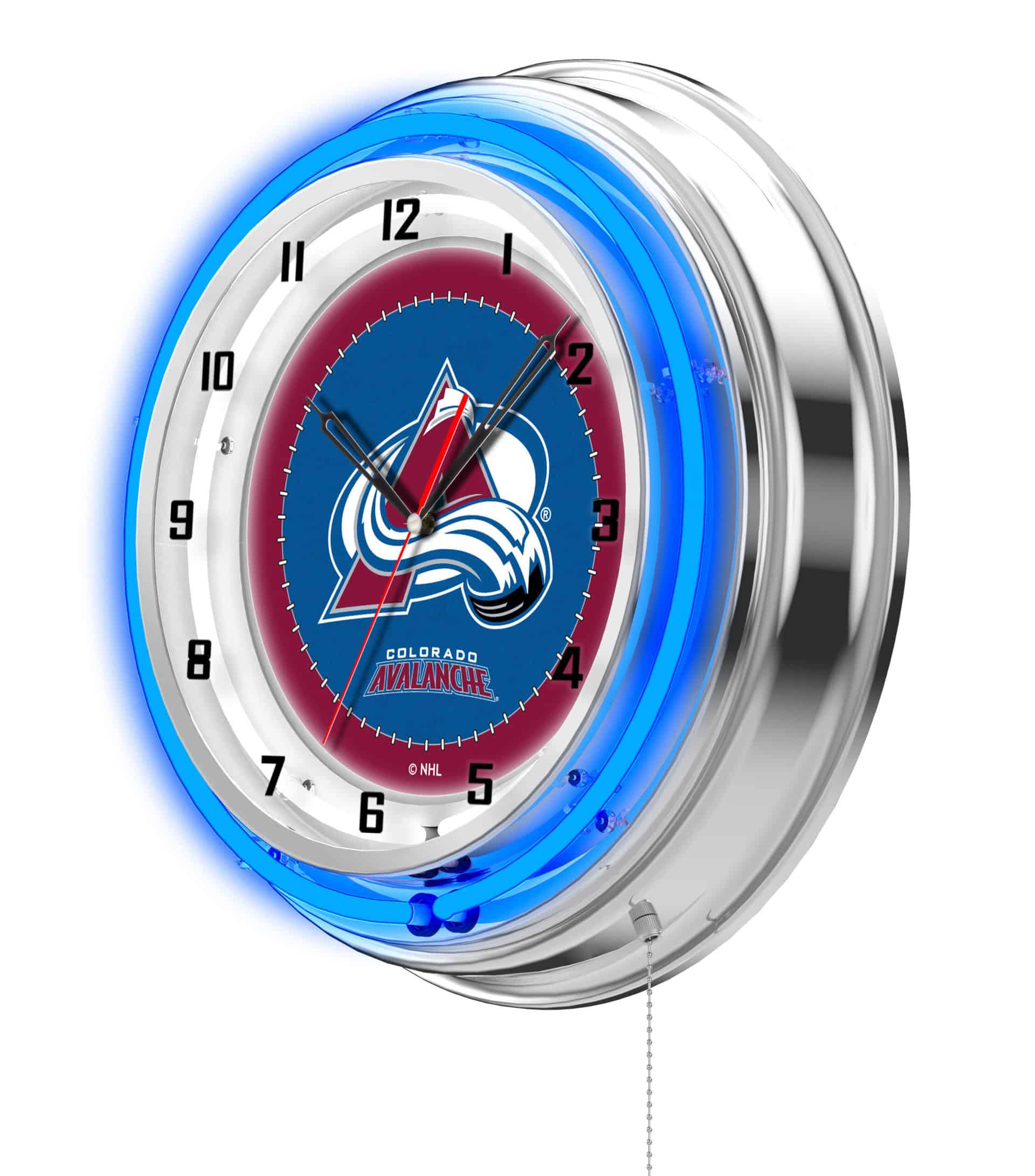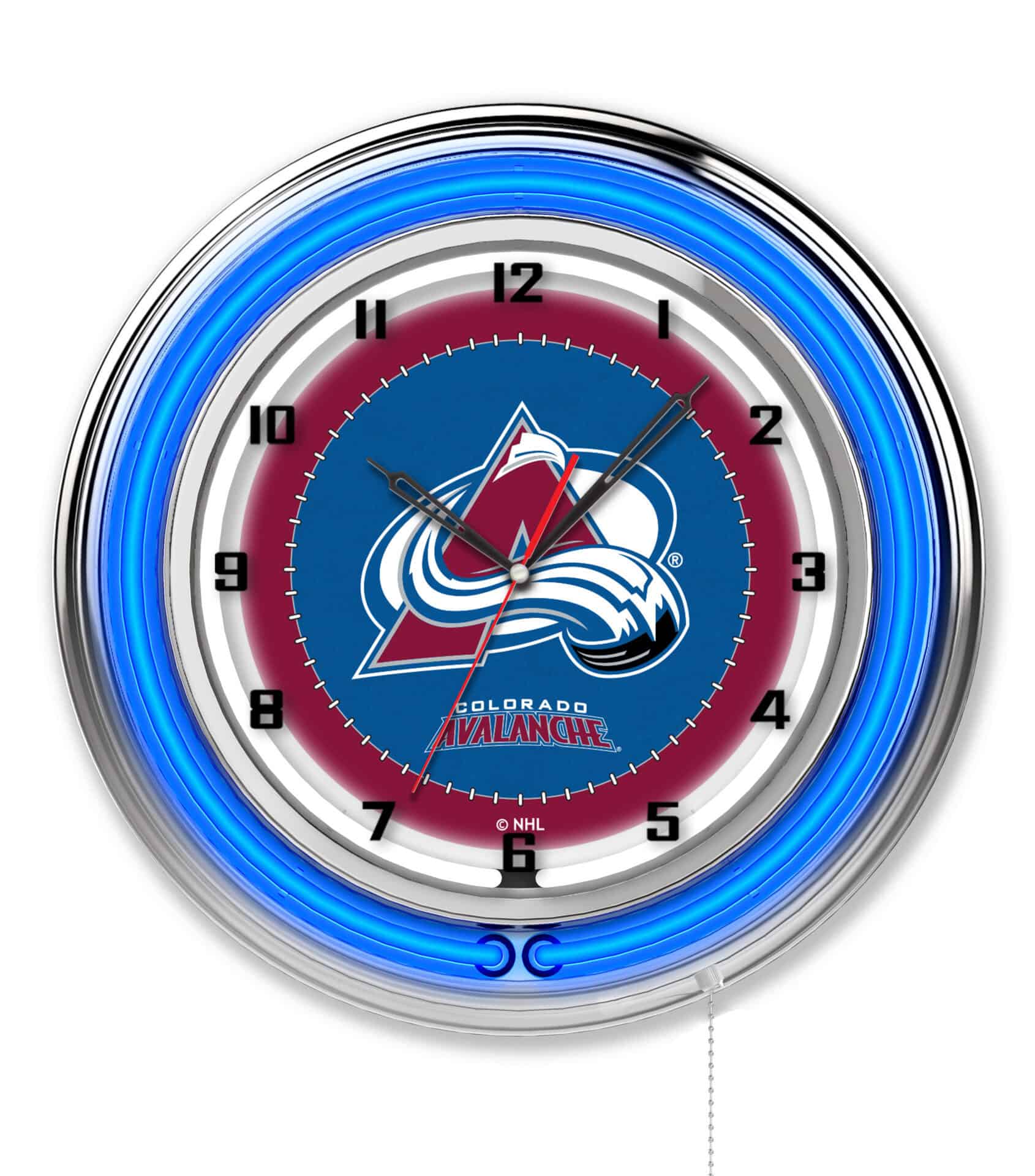The Colorado Avalanche 19-Inch Neon Logo Clock in Chrome is the ultimate addition to any sports fan’s collection. Showcasing your team pride, this clock features a sleek chrome casing and vibrant neon accents that illuminate the custom printed clock face. The brilliant white inner neon ring provides perfect visibility, making it both a functional timepiece and a striking piece of decor. With easy pull chain operation and accurate quartz movement, this clock is designed for convenience and style.