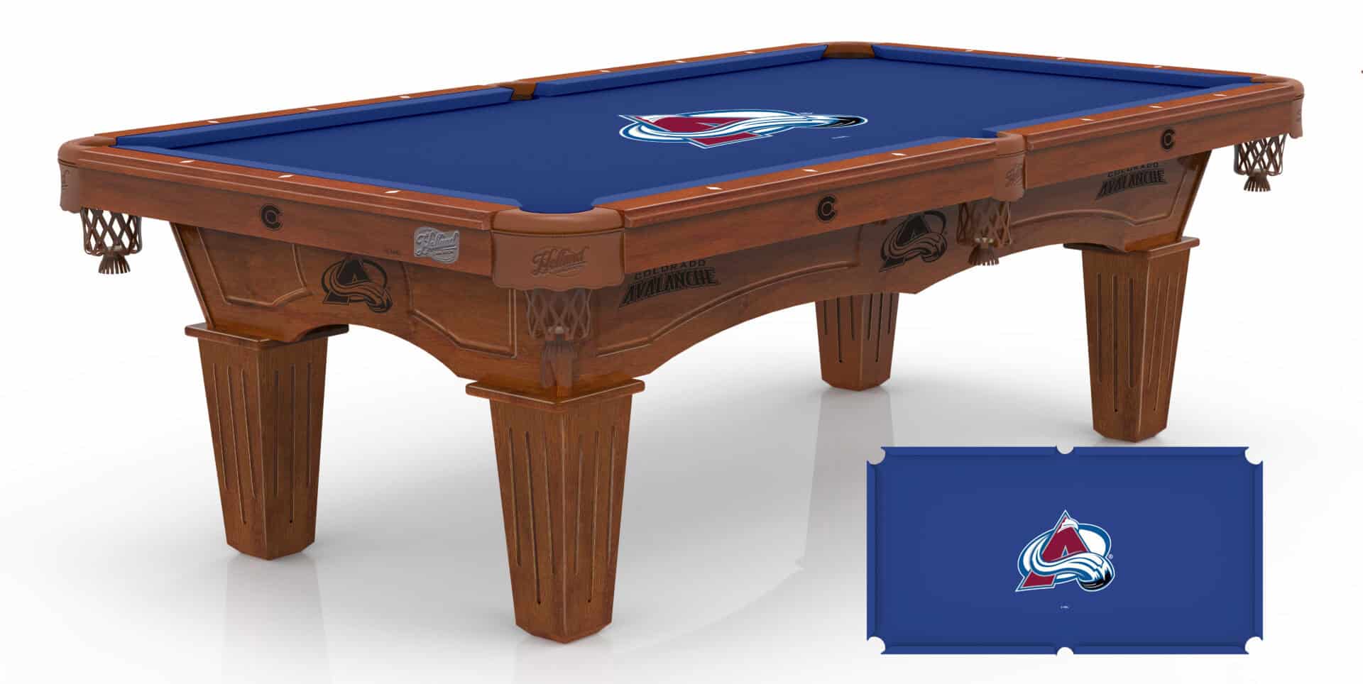 The Colorado Avalanche Pool Table with Chardonnay Finish and Tapered Leg combines stunning craftsmanship with professional-grade features, making it the perfect centerpiece for any game room. This table boasts a solid double-arched cabinet with CNC routing that highlights laser-engraved logo art elements, ensuring a striking and durable design. The furniture-quality finish is achieved through a meticulous 14-step staining and lacquering process, resulting in a beautiful Chardonnay tone that complements most room settings.