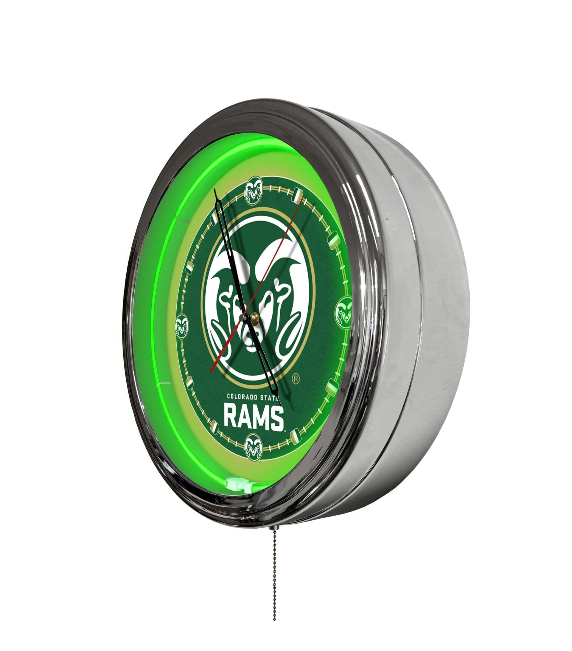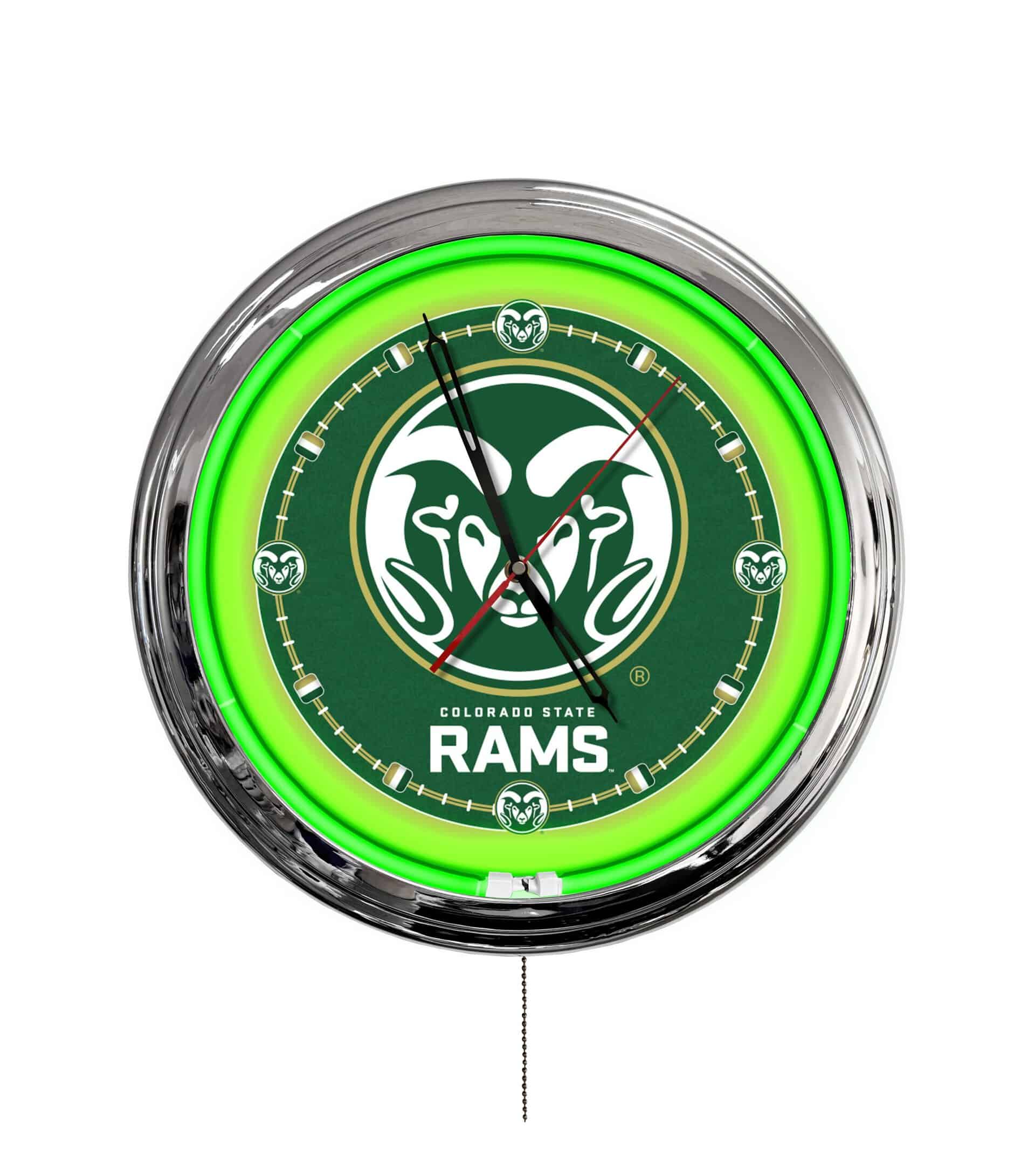 The Colorado State University 16-Inch LED Wall Clock in Chrome is a stylish and modern timepiece that adds a vibrant touch to any space. Featuring a high-quality chrome case and a glass lens, this clock is designed to illuminate your favorite logo with 20 static colors and 19 dynamic modes. It not only keeps accurate time with its quartz movement but also creates an engaging atmosphere with adjustable speed and brightness settings. The included wireless remote makes it easy to customize your display, making it perfect for any event or mood.