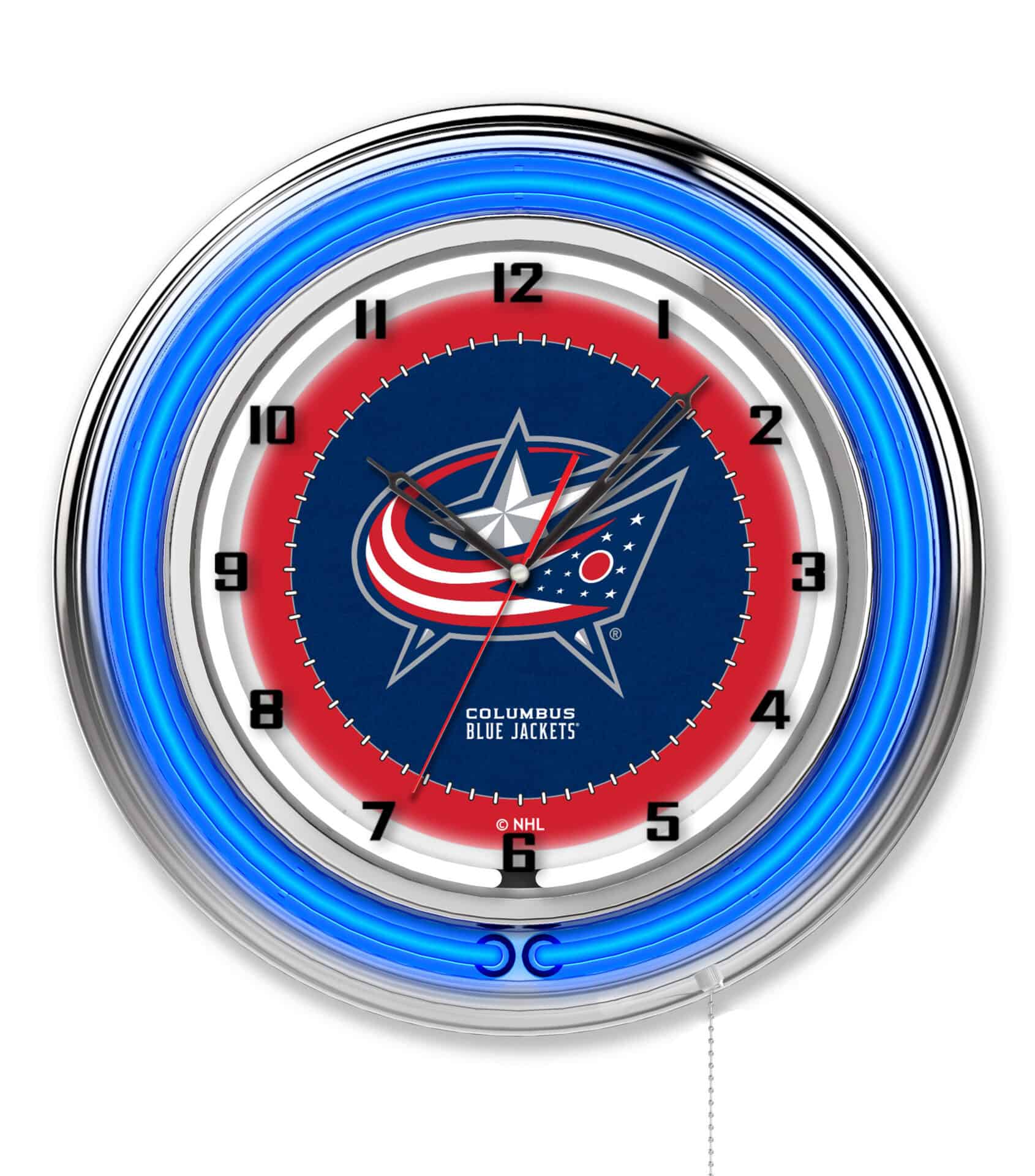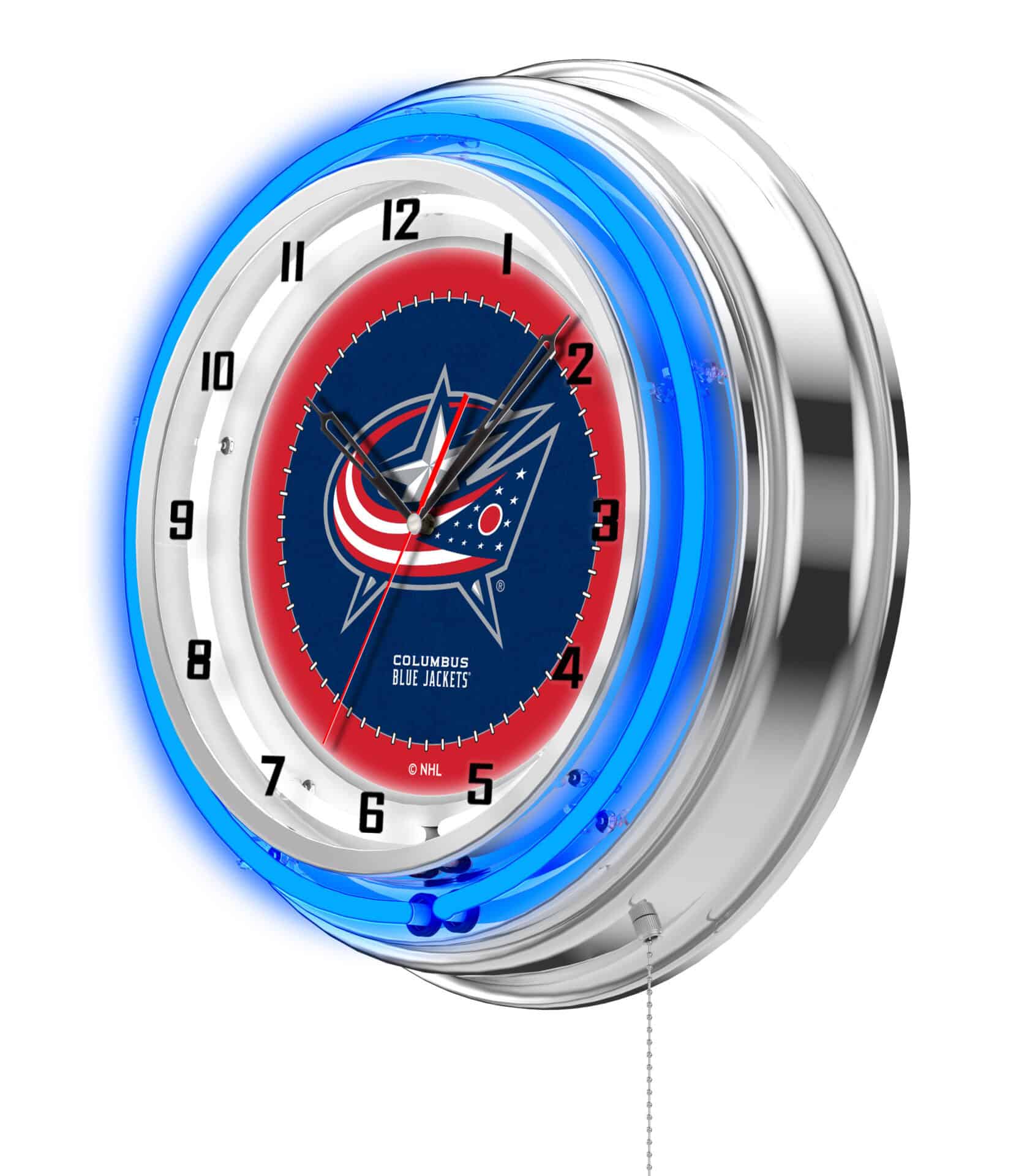The Columbus Blue Jackets 19-Inch Neon Logo Clock in Chrome is the ultimate piece of decor for any sports fan’s man cave. This stunning clock features a chrome casing with vibrant, full-color artwork that showcases your team pride. The double neon tubes create a captivating display, with one accent color and a brilliant white inner ring illuminating the custom printed clock face. Designed for convenience, it includes a pull chain for easy on/off operation and is powered by a standard 120V outlet, ensuring you can enjoy its glow without hassle. Accurate quartz movement keeps perfect time, powered by a single AA battery (not included), making it both functional and stylish.