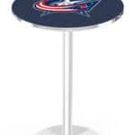 Add a touch of class and show off your team pride with this 42-inch pub table featuring a sleek, durable design. Perfect for enhancing your bar, game room, or man cave, this table combines functionality with style. Its scratch-resistant, sublimated laminate top ensures vibrant, long-lasting color, while the sturdy chrome-plated base offers superior stability. The table is equipped with adjustable feet to accommodate any floor surface, making it a versatile centerpiece for any space.