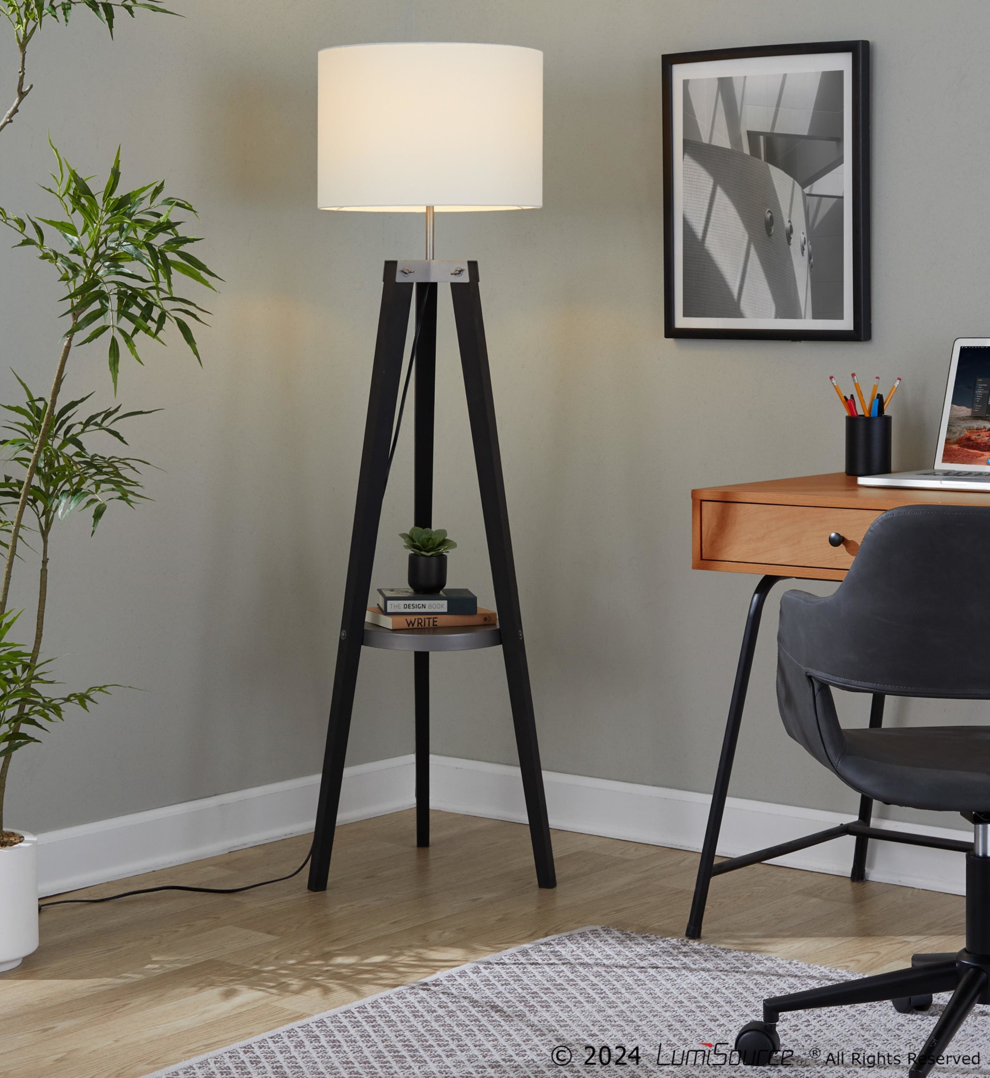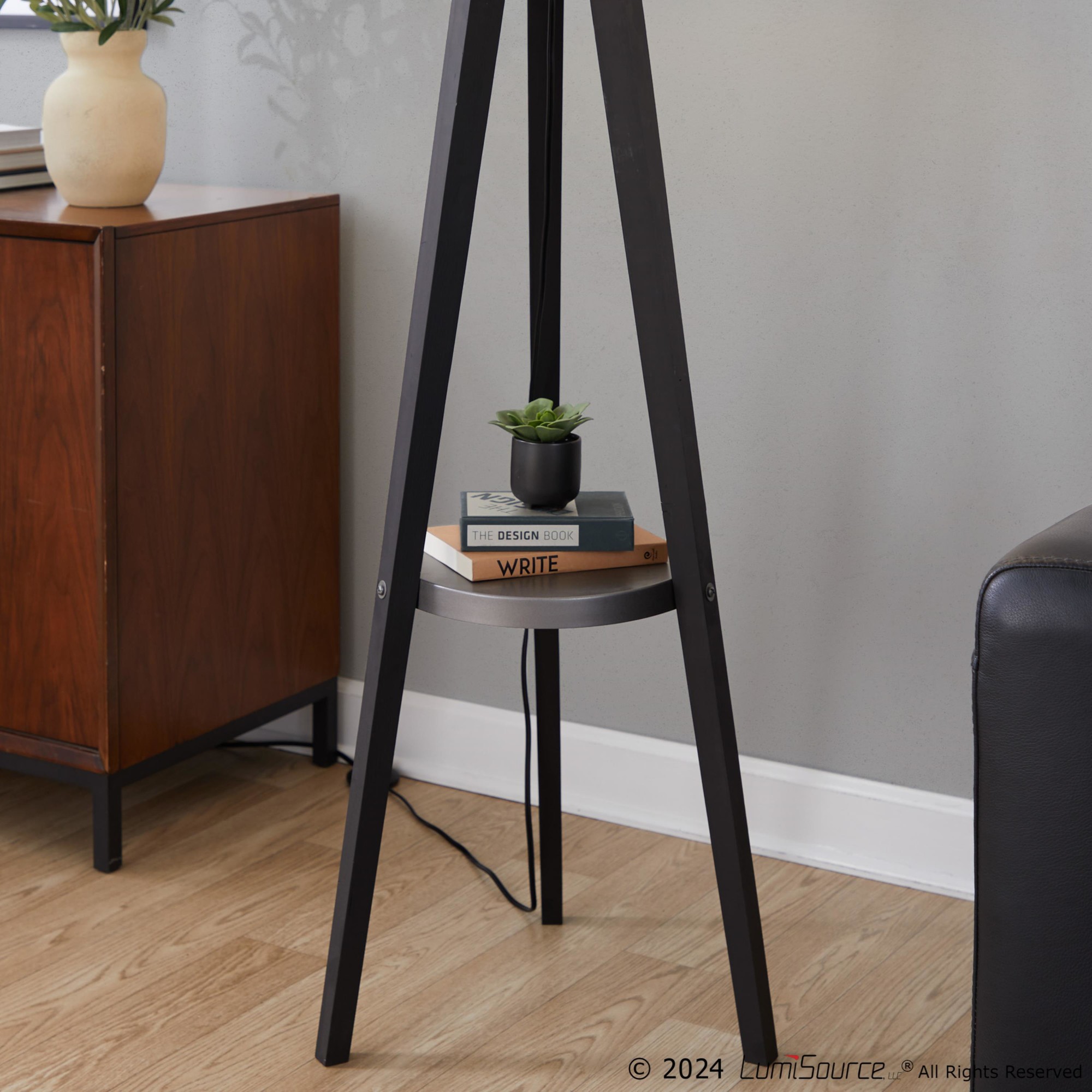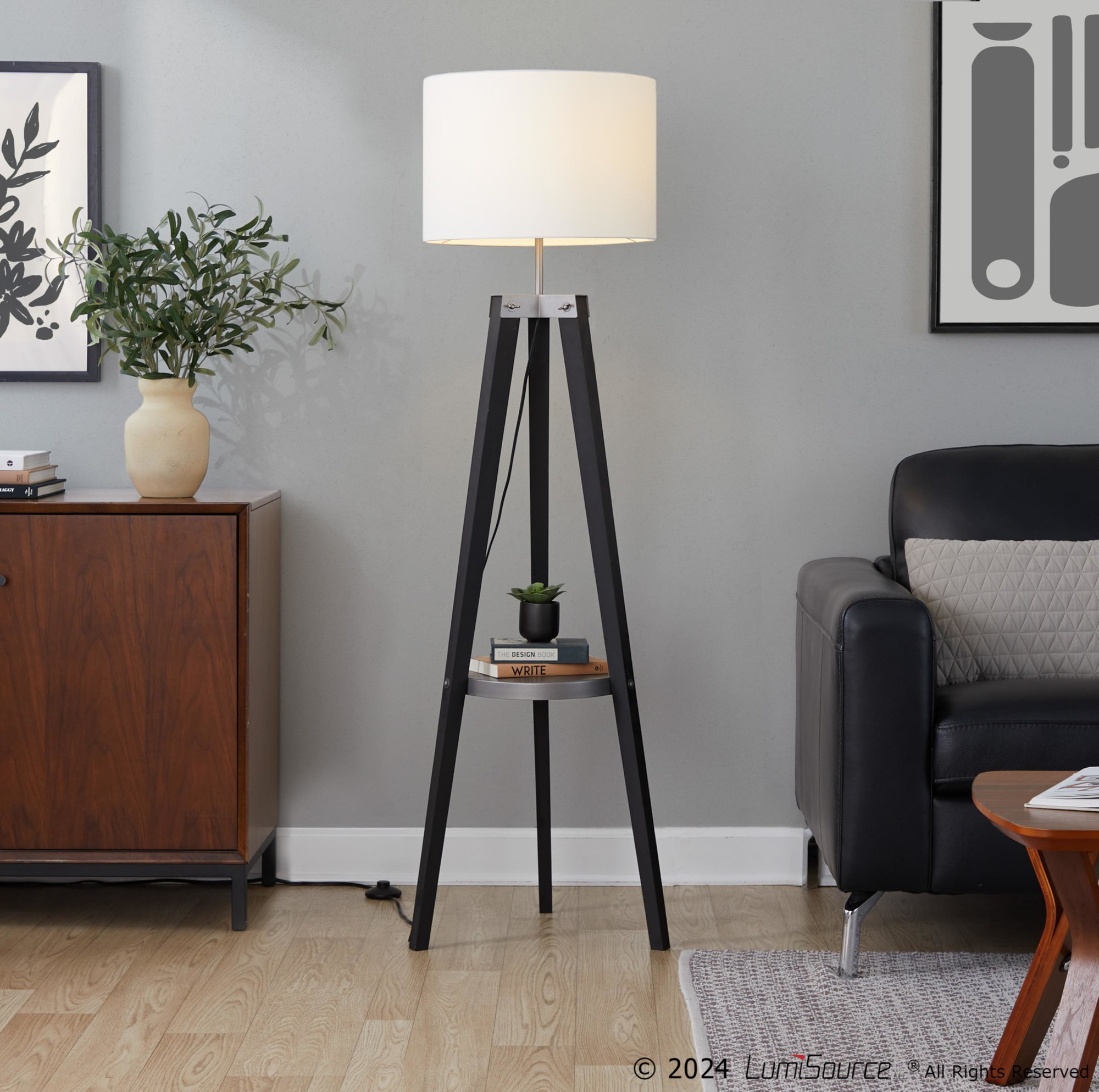 This lamp is more than just illumination; it’s a fusion of style and practicality. The angled wood legs and metal accents create a mid-century modern vibe, while the shelf provides convenient storage for books, gadgets, or decor. It’s the perfect way to brighten up your space and keep it organized!