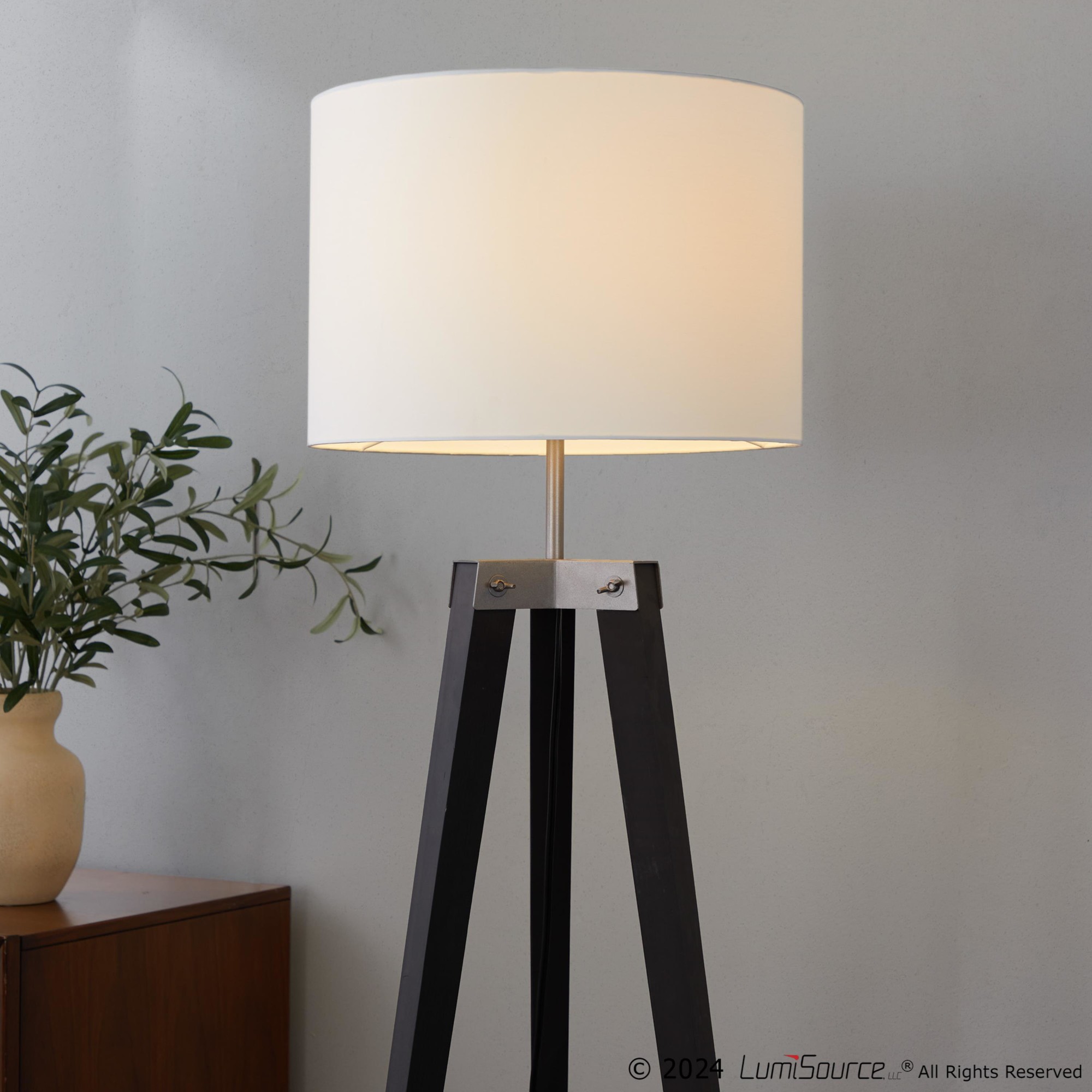 - Shade: Linen drum shade for ample light