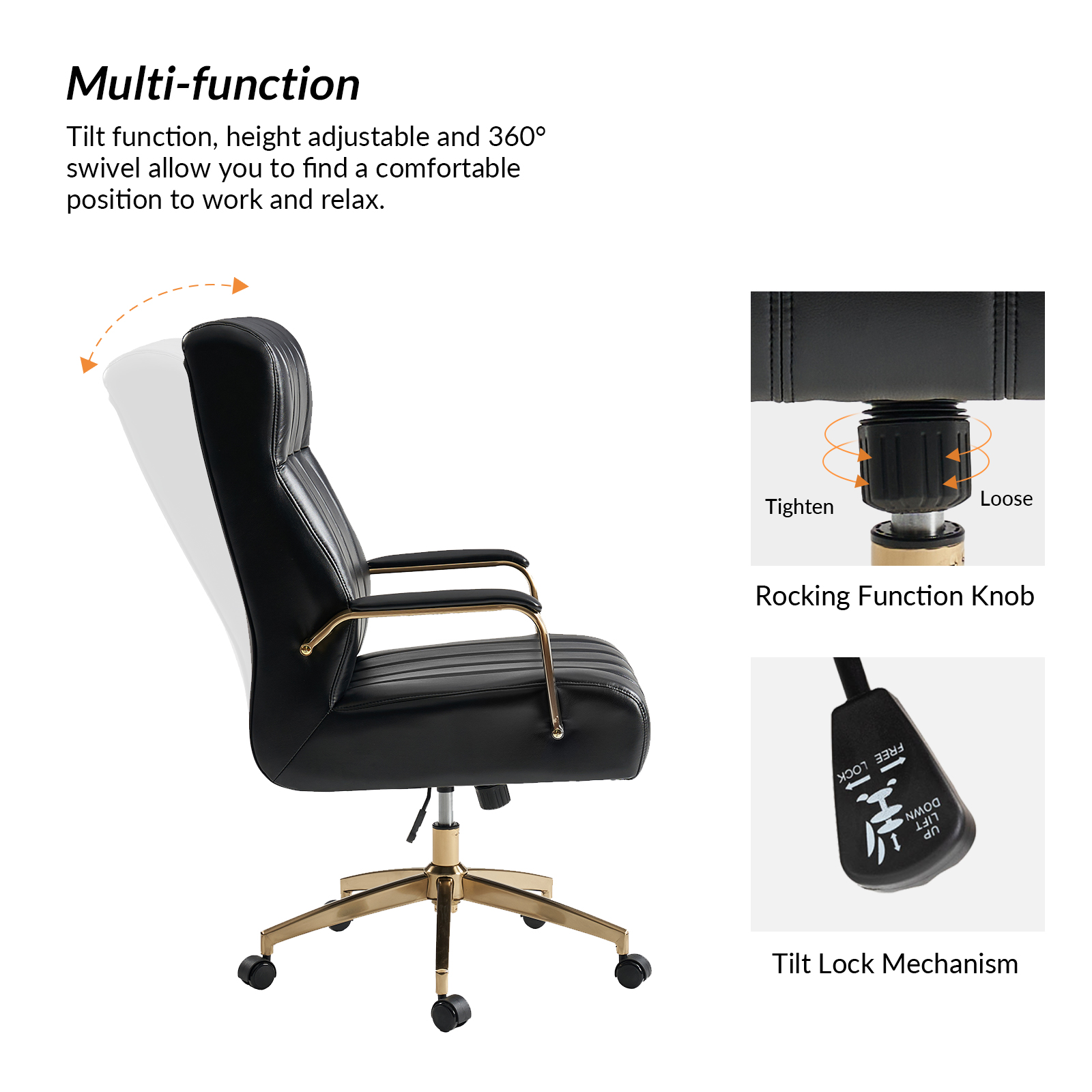 This chair is more than just stylish; it’s built for productivity and relaxation. The faux leather is waterproof and easy to clean, ensuring lasting beauty and practicality. The stainless steel gas spring provides smooth height adjustments to suit your individual needs. The channel and button tufting adds a touch of vintage charm, making it a perfect addition to your workspace.
