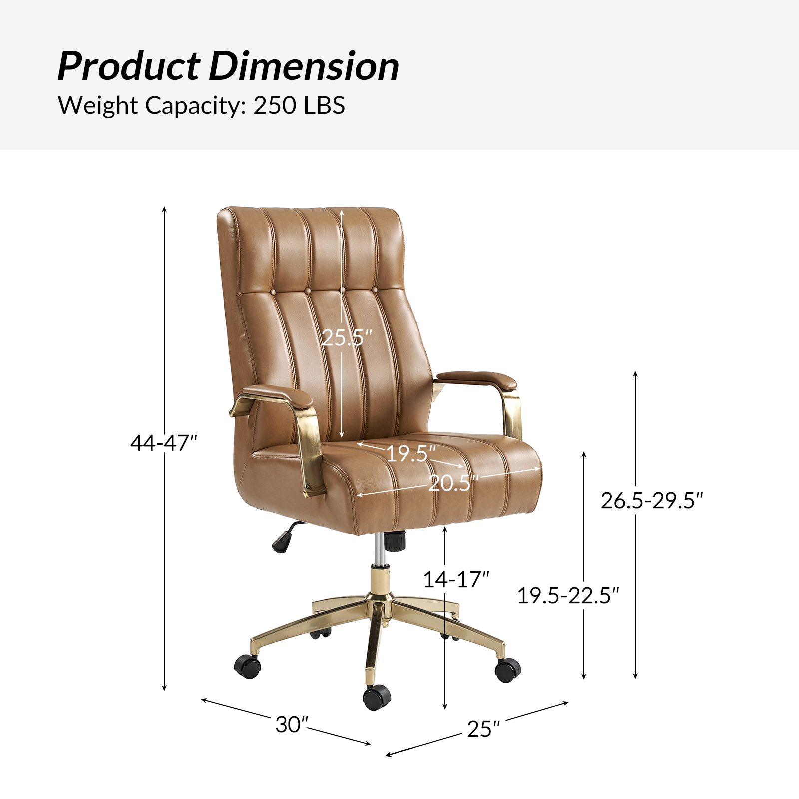 This President chair, inspired by mid-century modern design, seamlessly blends elegance and functionality. Crafted with ergonomics in mind, it provides exceptional comfort and support for long work hours. The PU leather upholstery is waterproof and easy to clean, ensuring lasting beauty and practicality. Enjoy smooth height adjustments with the SGS International Certified gas spring, effortless mobility with the sturdy metal base and casters, and enhanced accessibility with the swivel seat. The tilting function offers moments of relaxation during demanding workdays. Channel and button tufting add a touch of vintage charm, making it perfect for your home office.