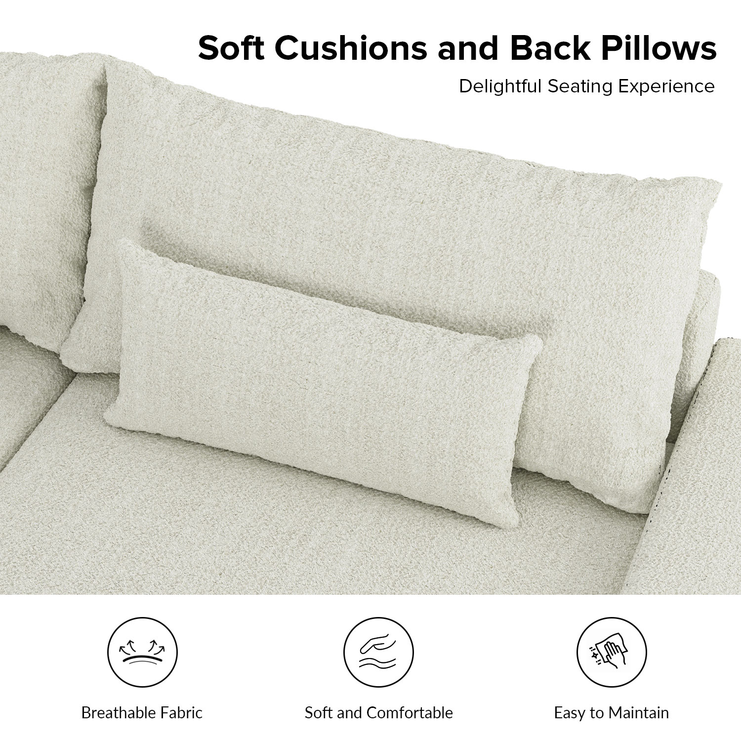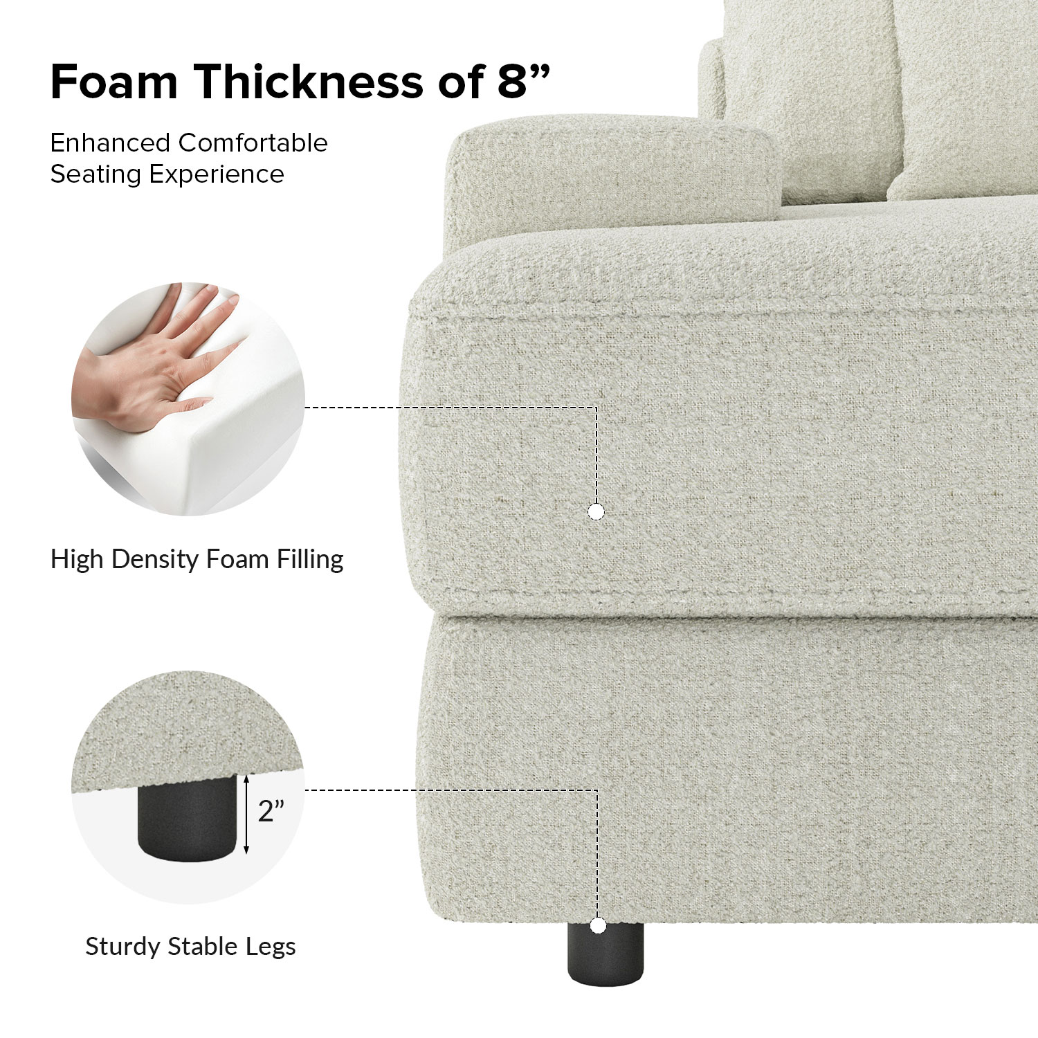 The Conradus Ivory Chenille Oversized Modern Deep Seating Sofa is designed for ultimate relaxation and social gatherings. Its wide armrests offer convenience, while the oversized design provides ample seating. Sink into the soft, deep seats and enjoy the delightful seating experience enhanced by plush cushions and pillows. Its modern silhouette seamlessly blends into any living space.